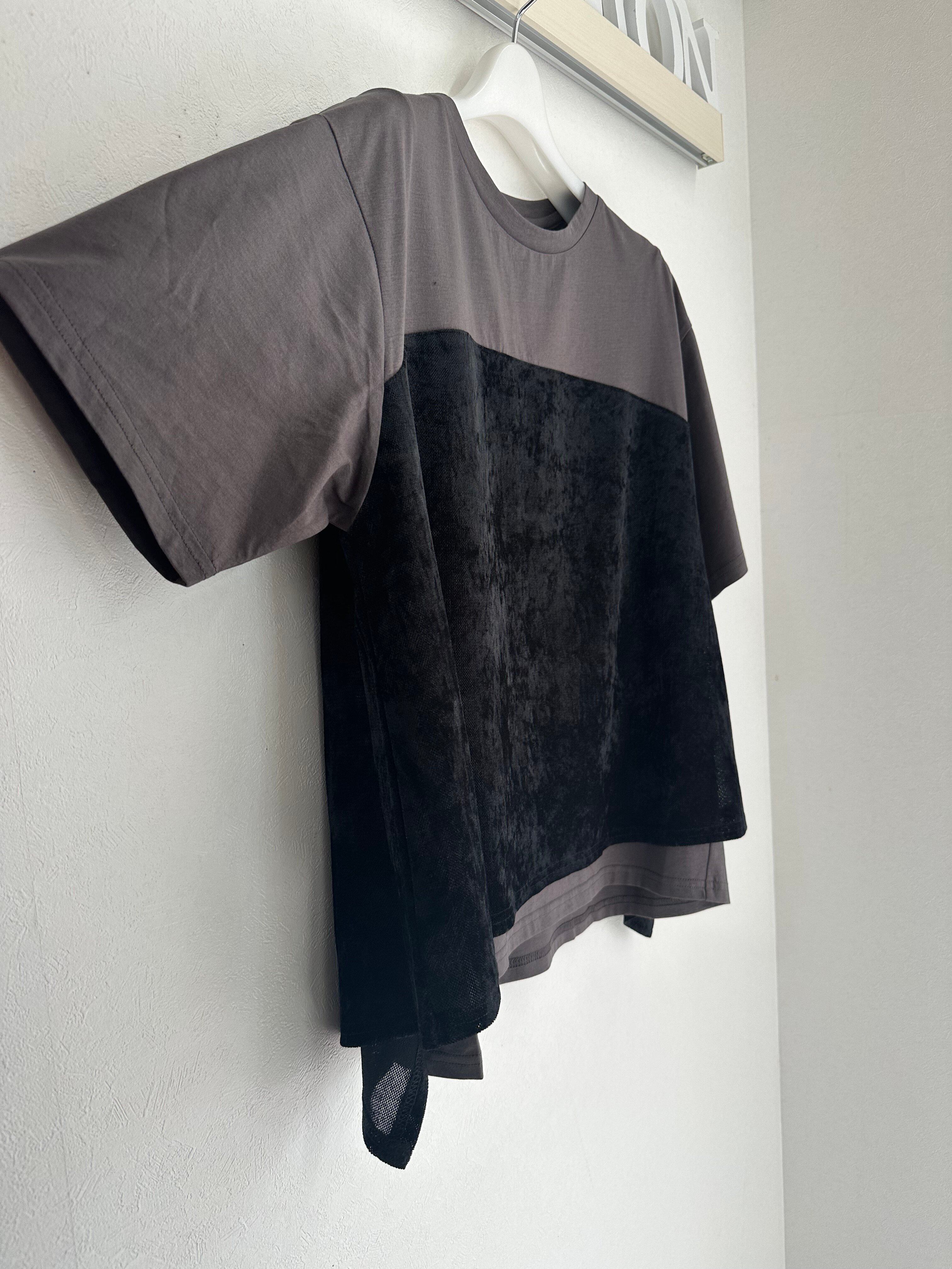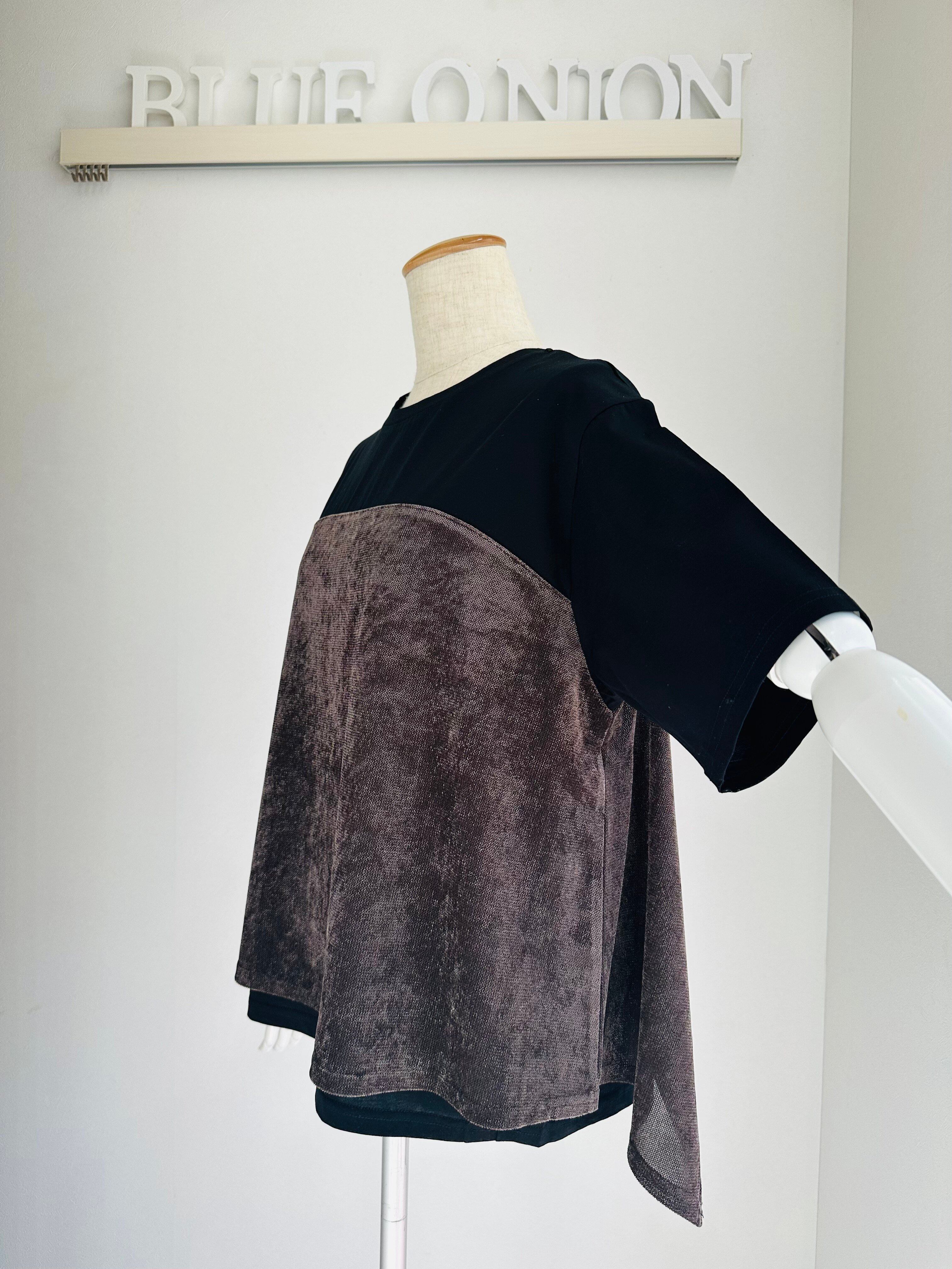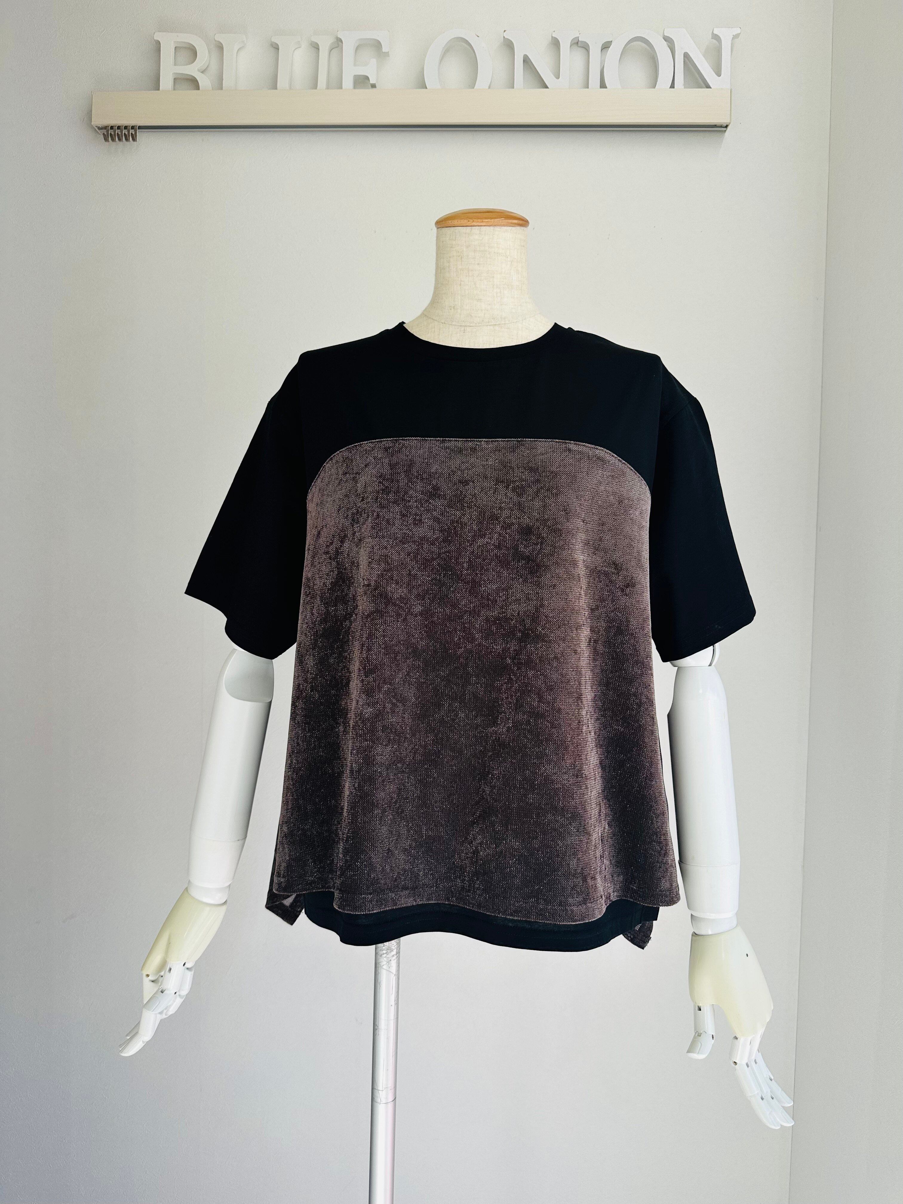 シルケット天竺にシアーなベロアのキャミソールがドッキングしたTシャツ