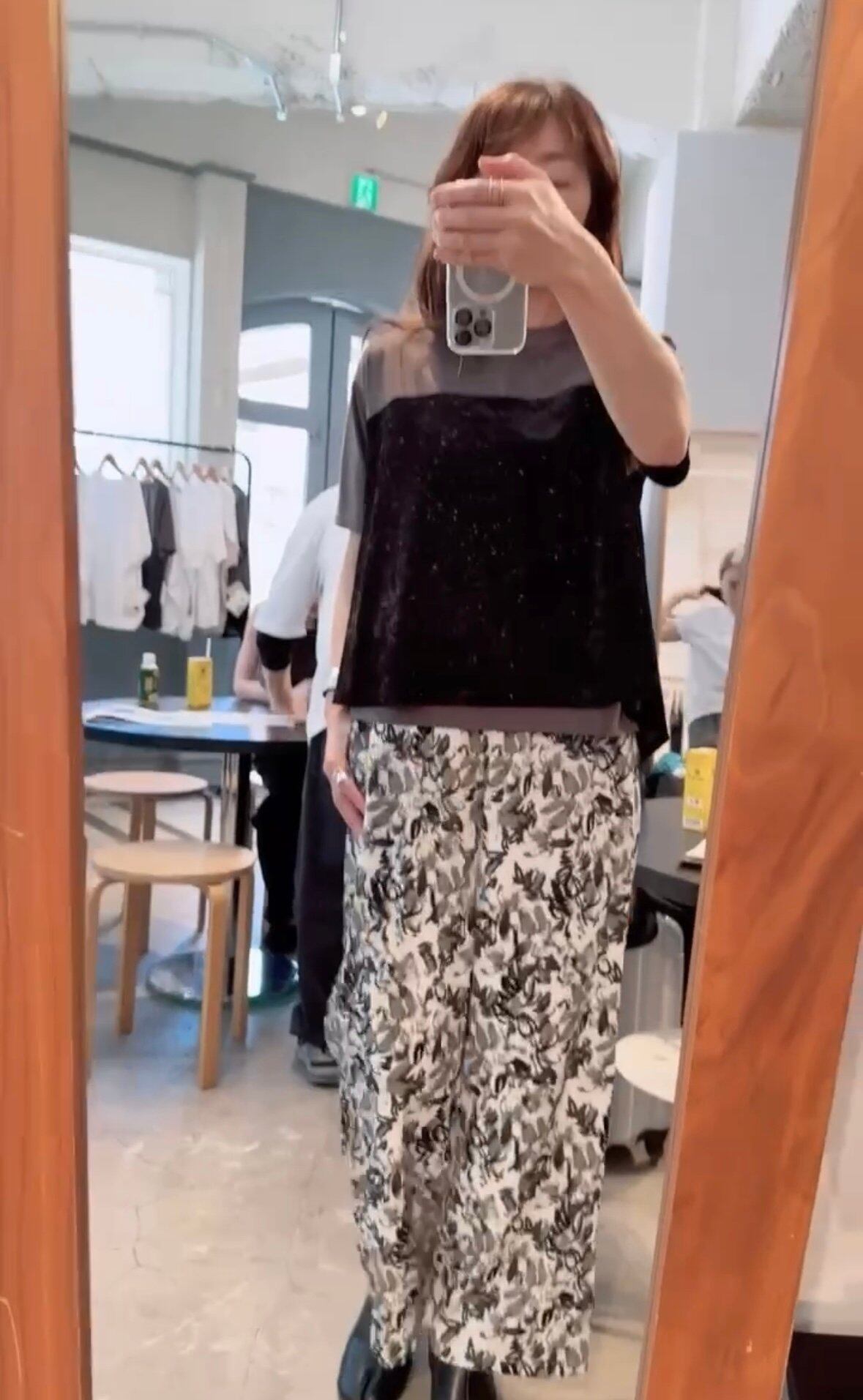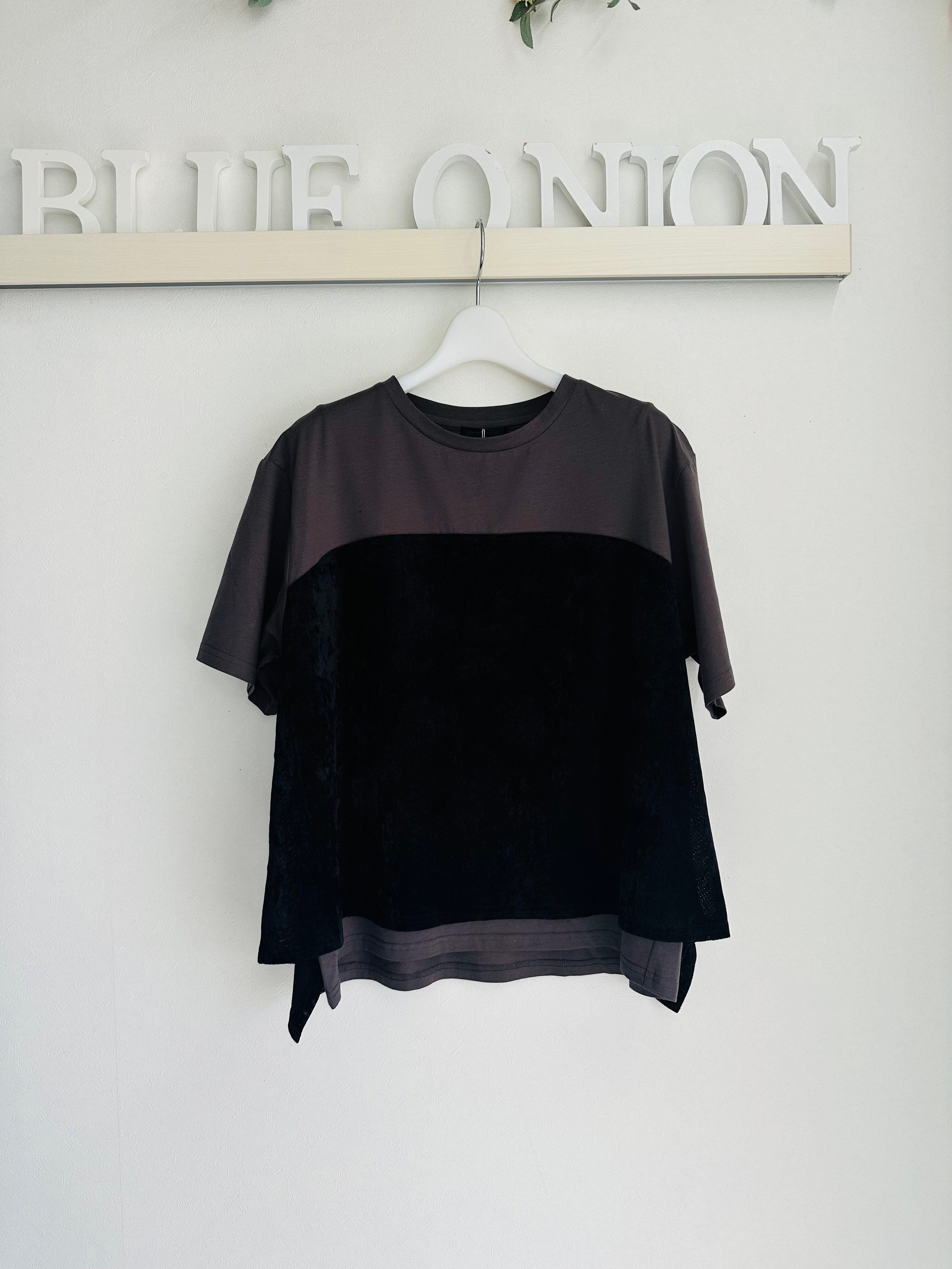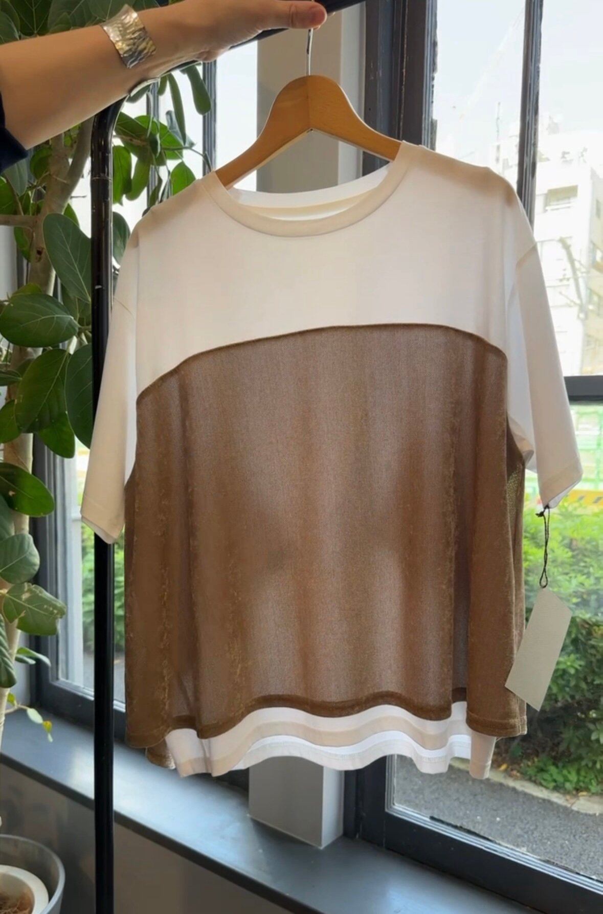 シルケット天竺にシアーなベロアのキャミソールがドッキングしたTシャツ