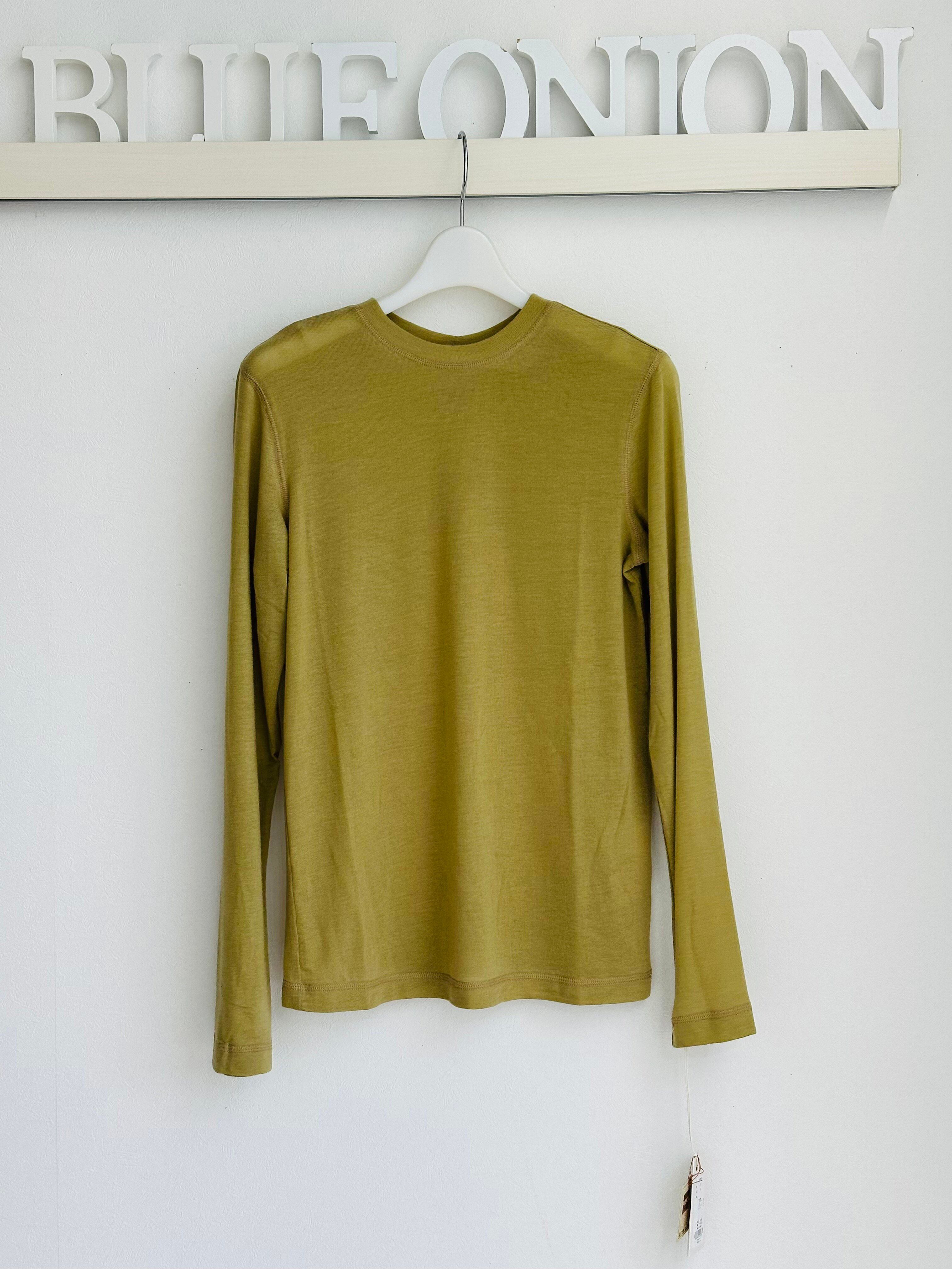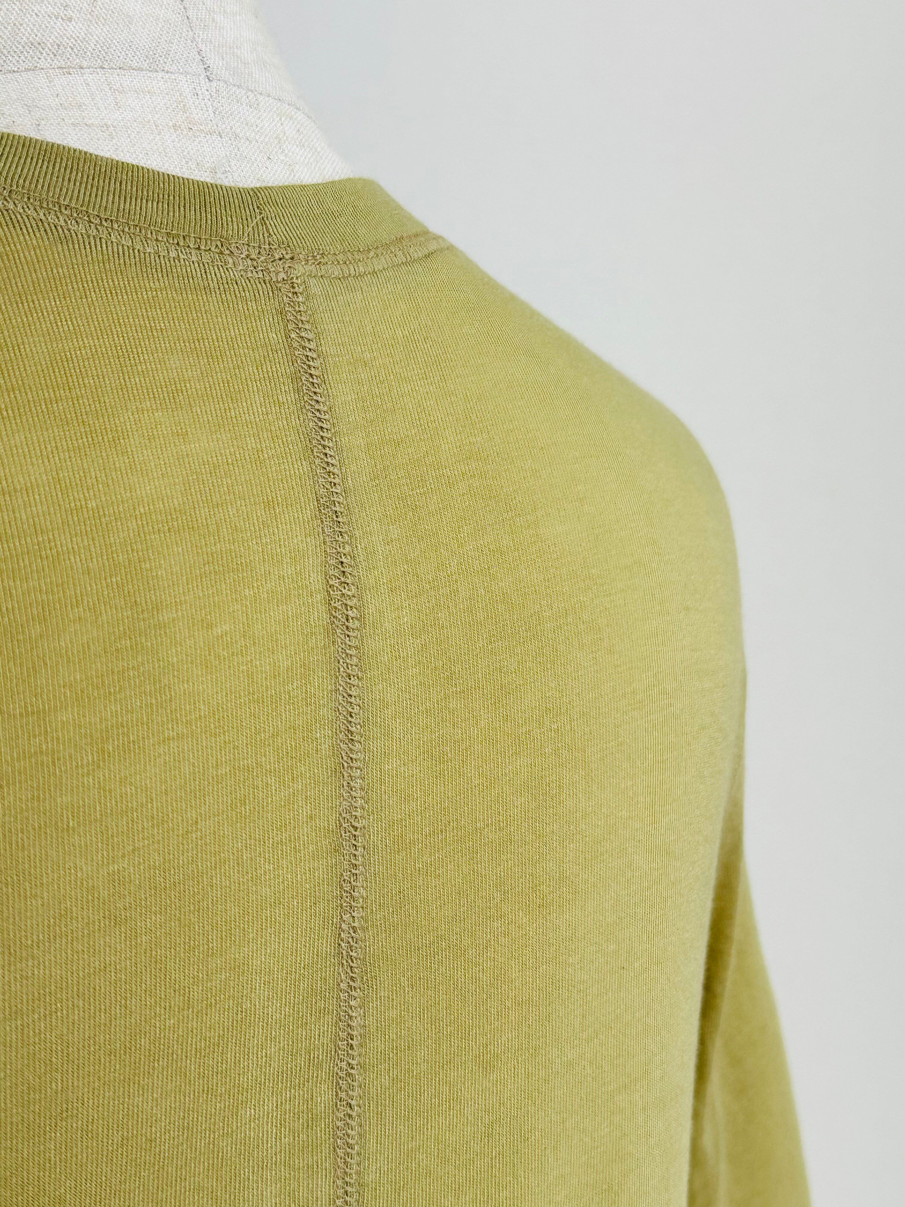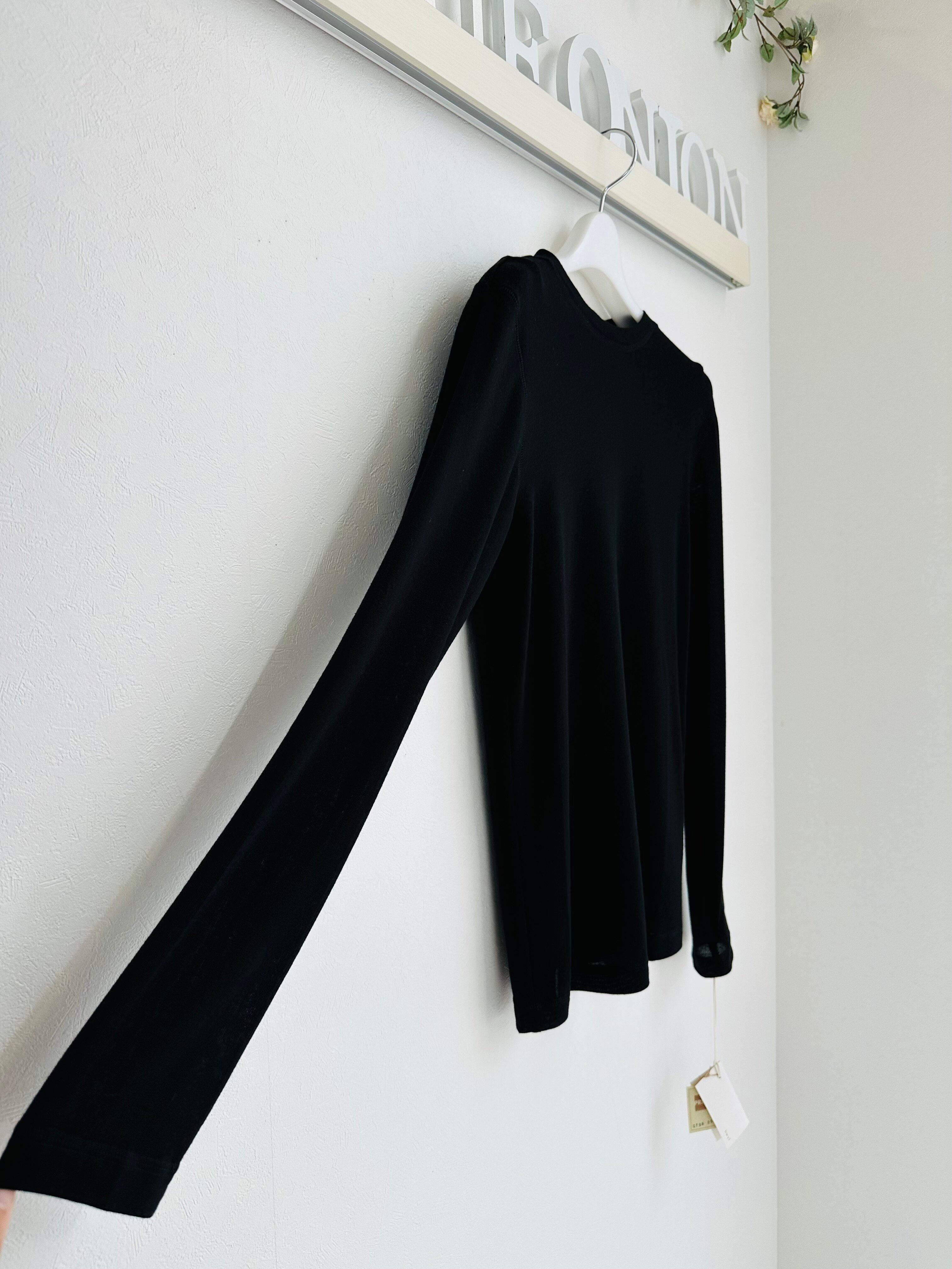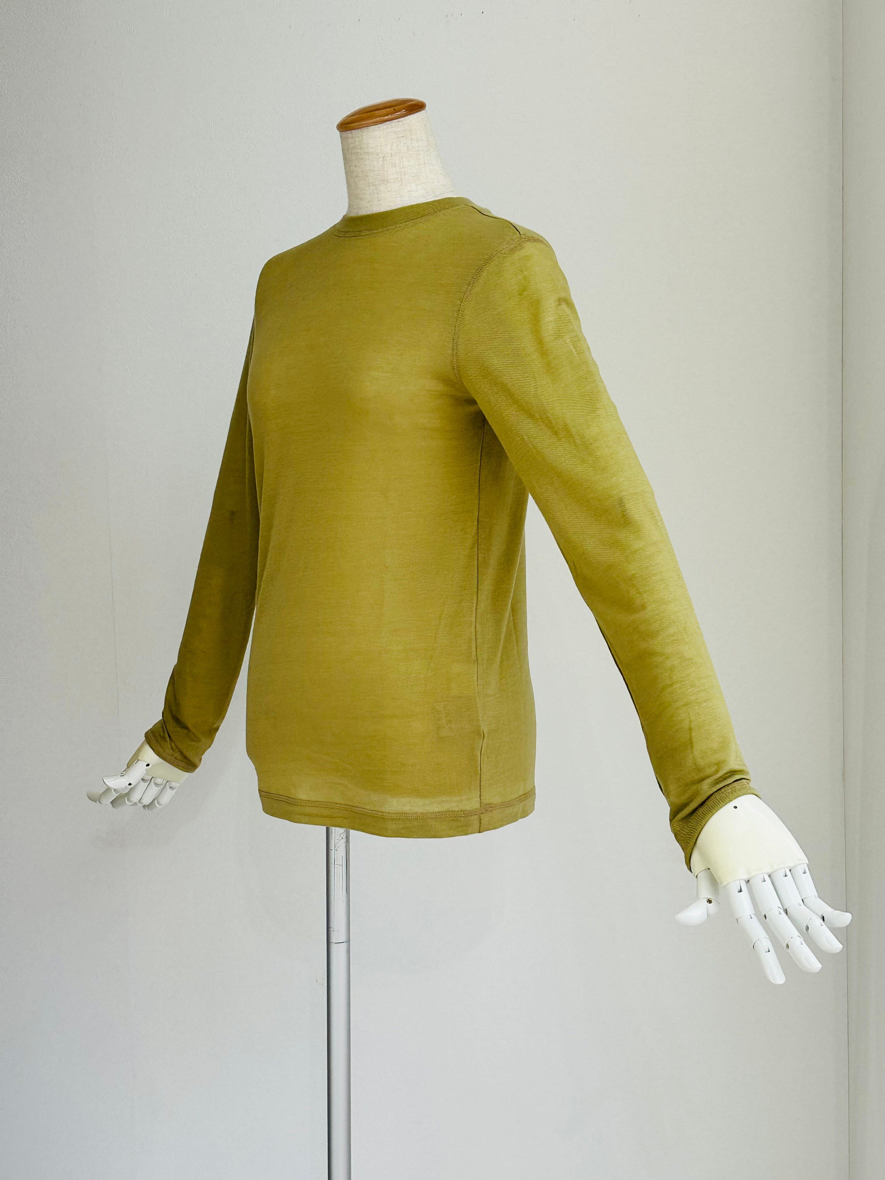 カシミヤとシルク混の肌触りの良い国産のカット生地を使用した丸首Tシャツです。