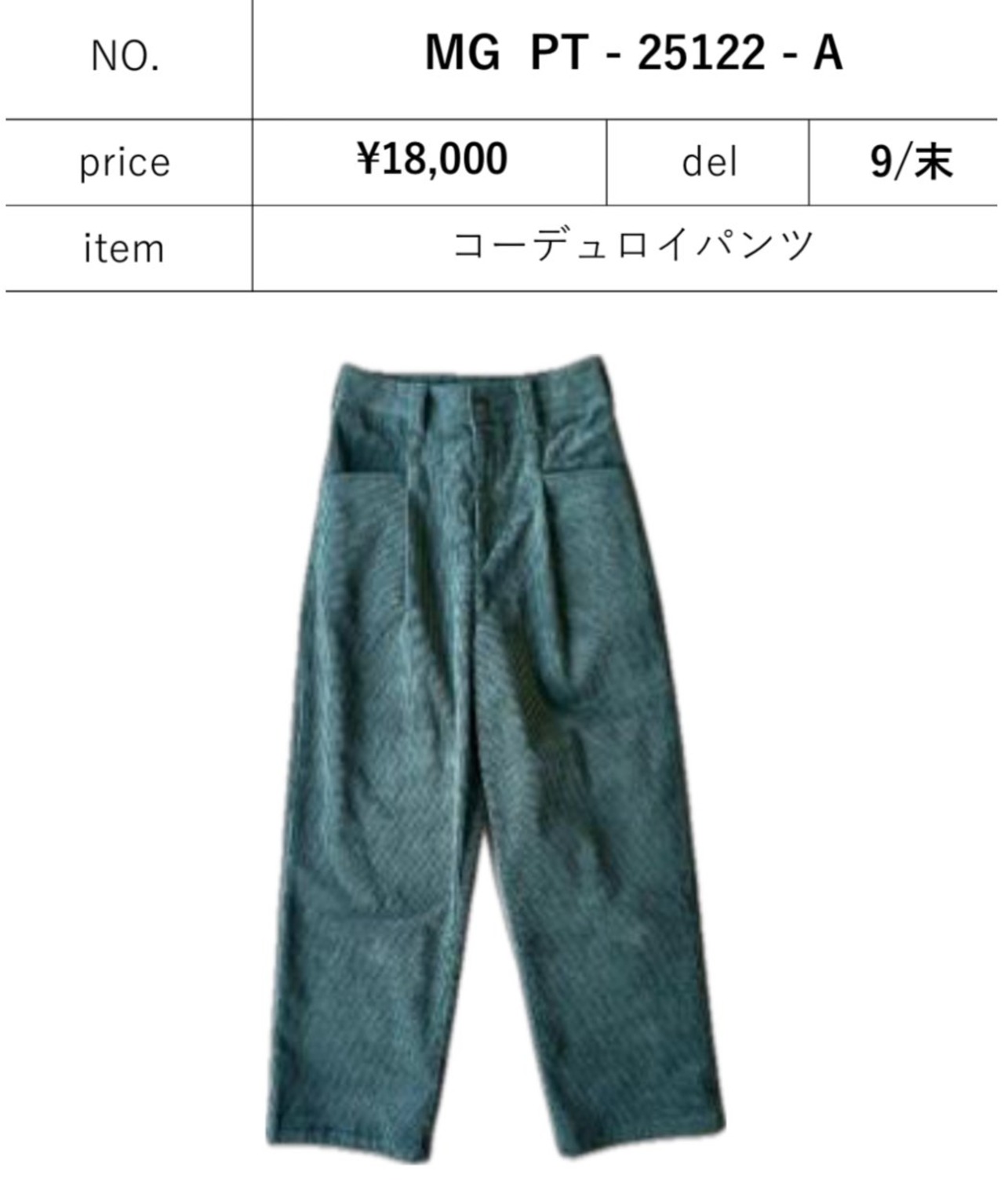 【MARGAUX 25秋冬ご予約】 コーデュロイパンツ MG PT - 25122 - A 2509c