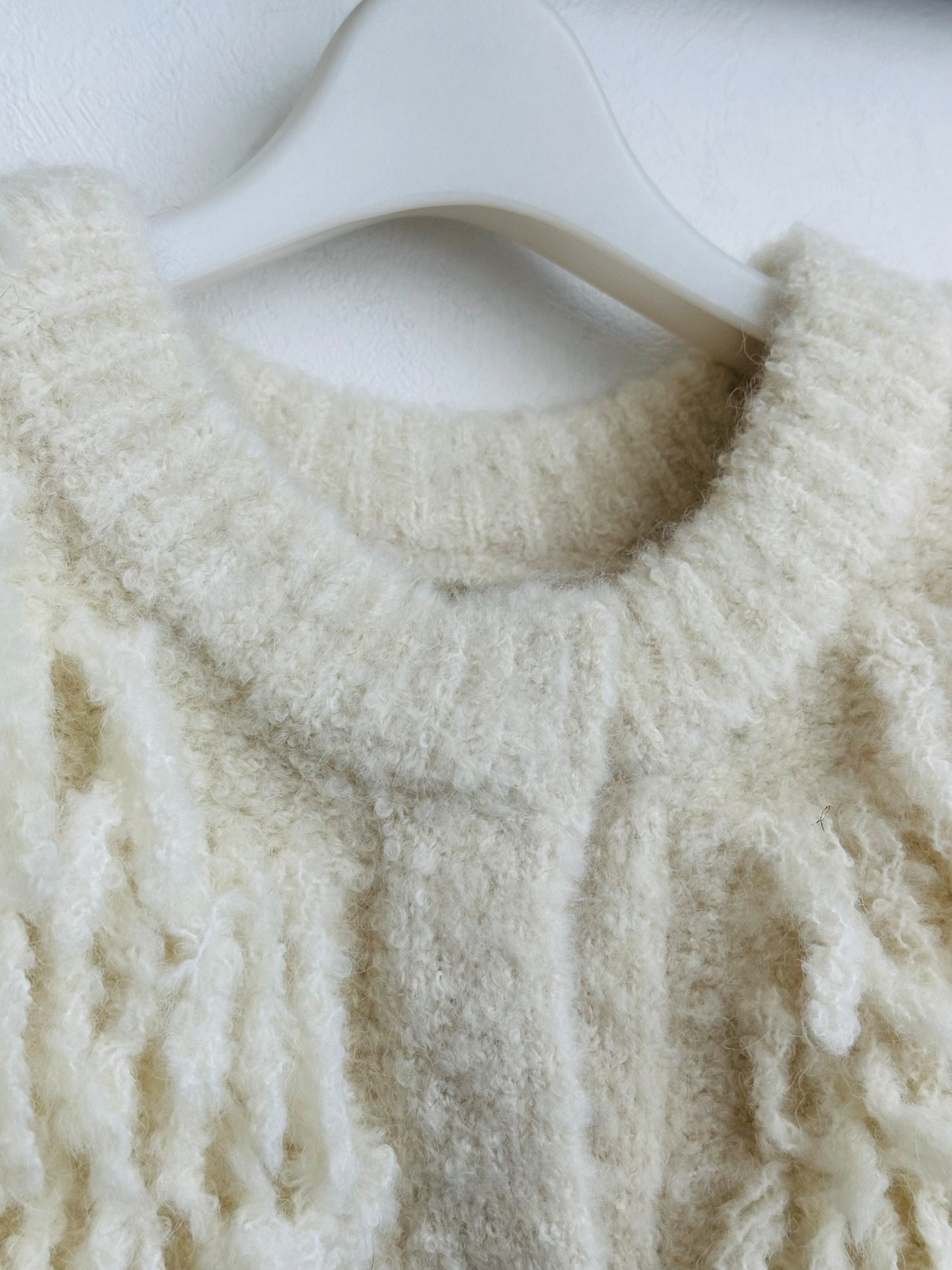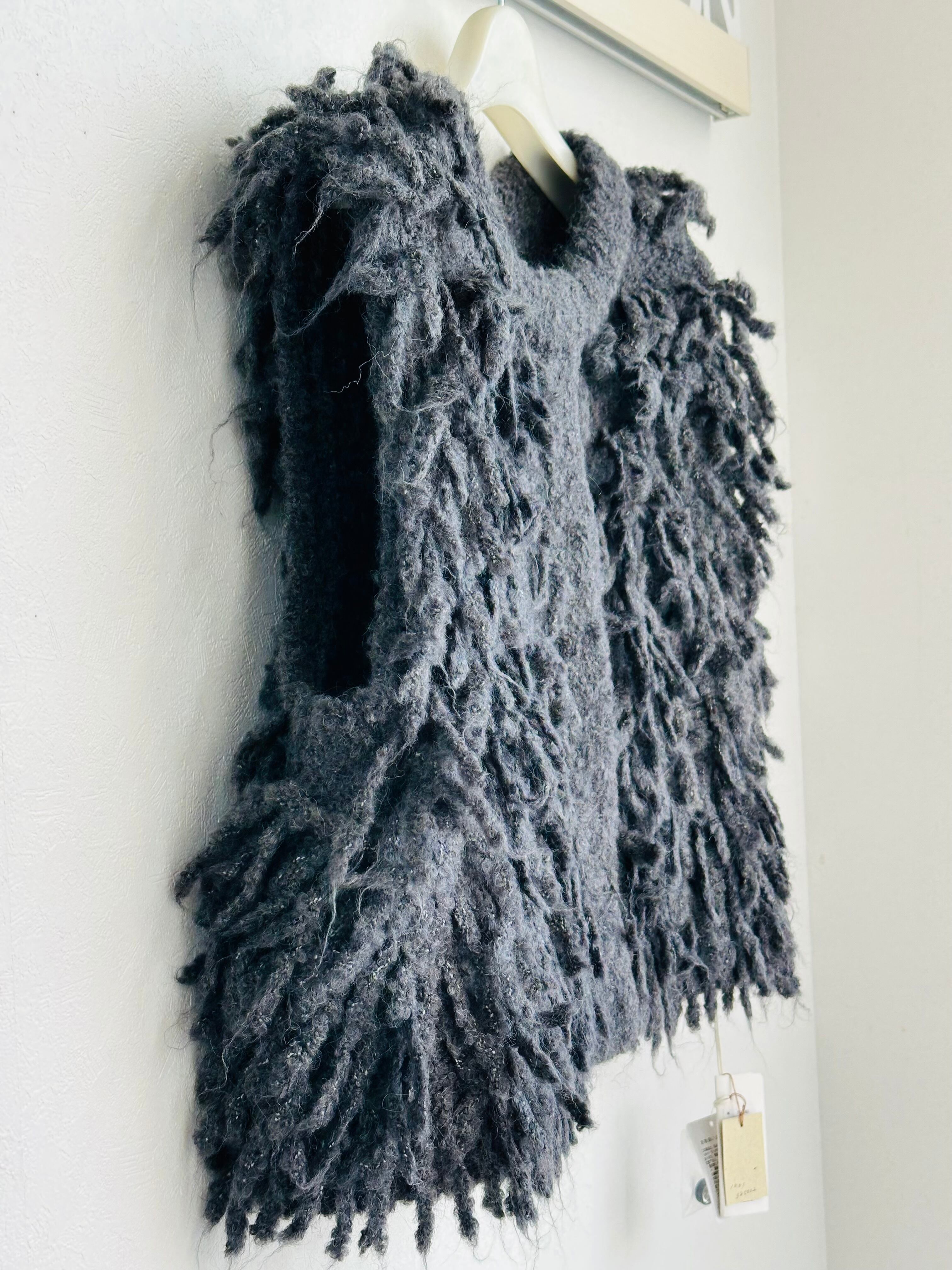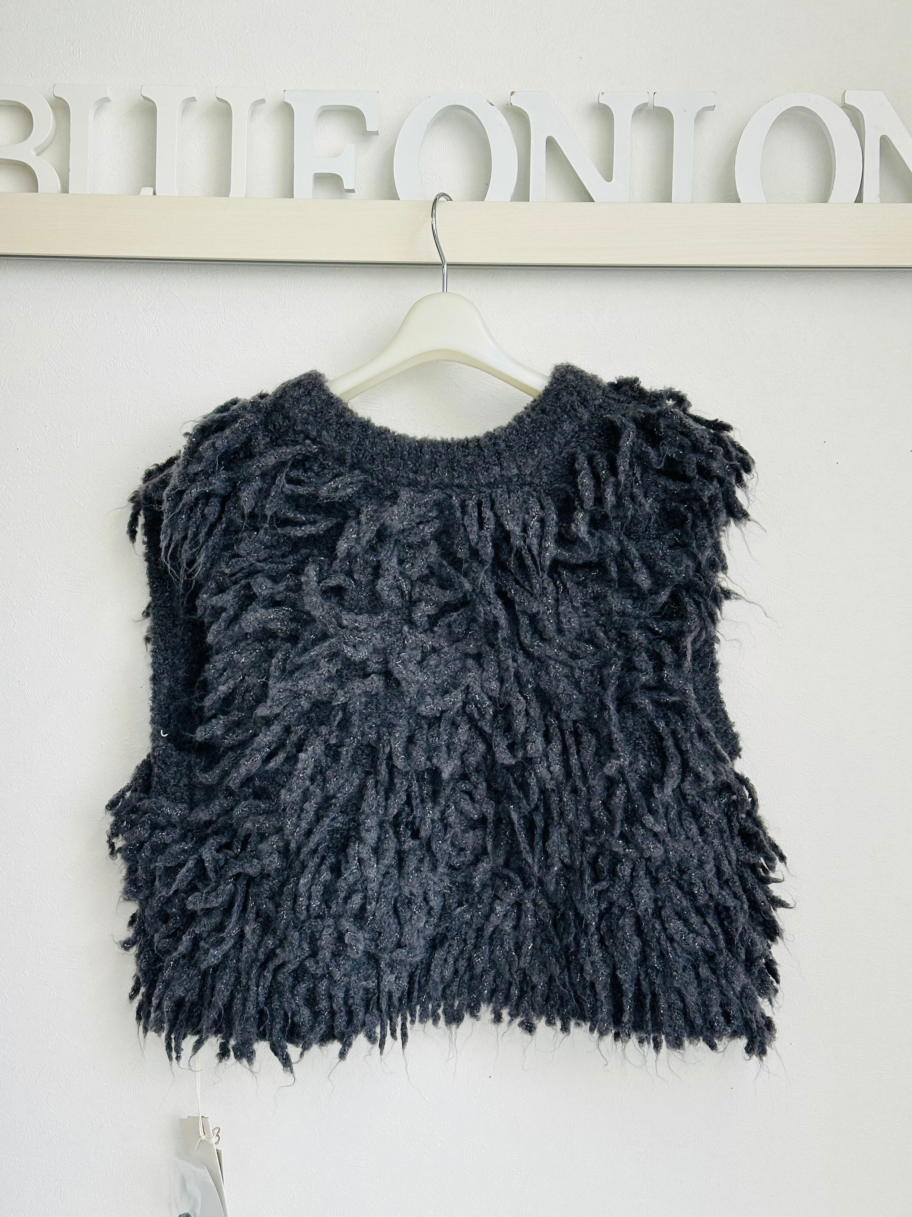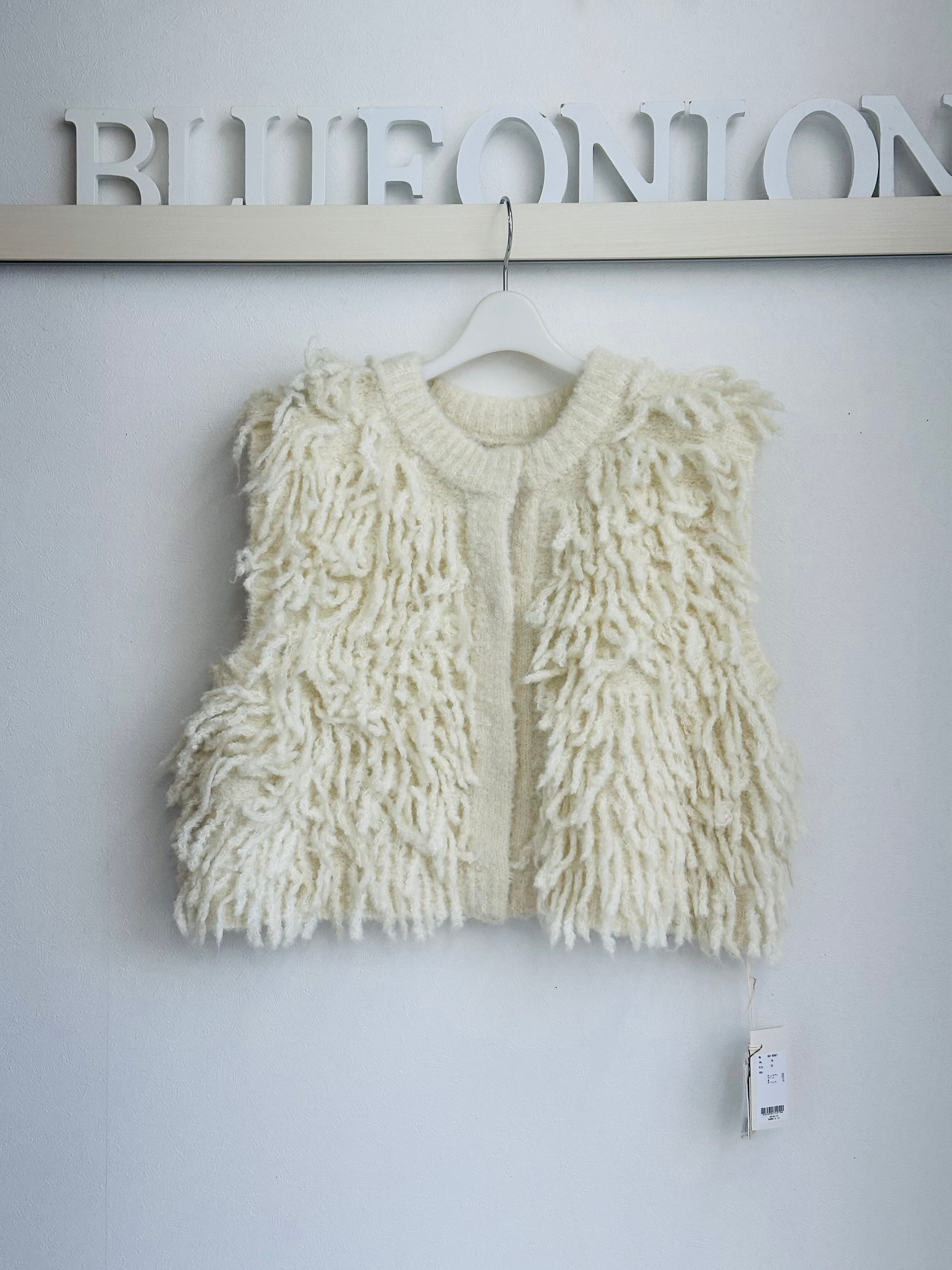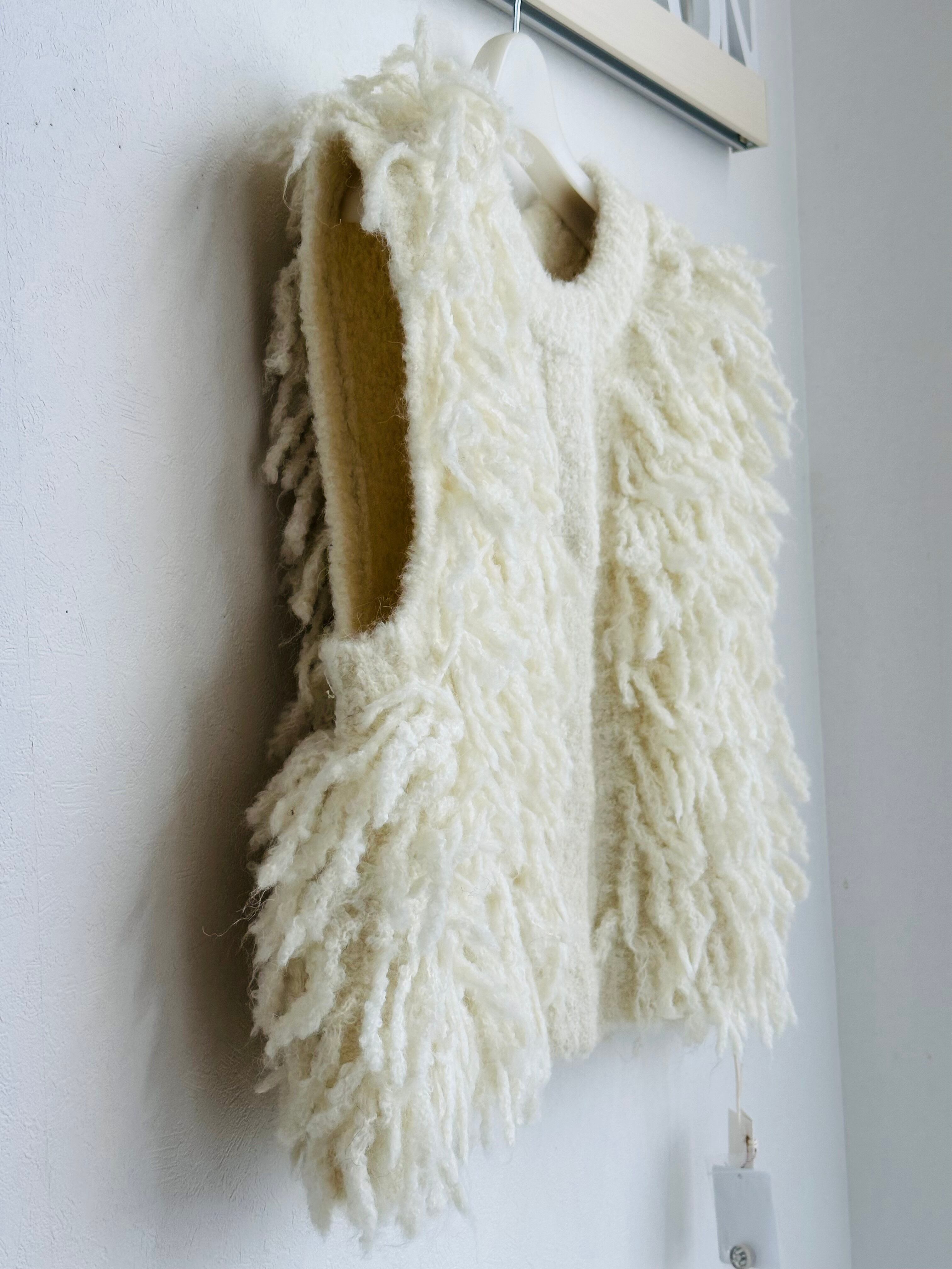 立体感のある、もじゃもじゃフリンジの編み地が目を惹くニットベスト。