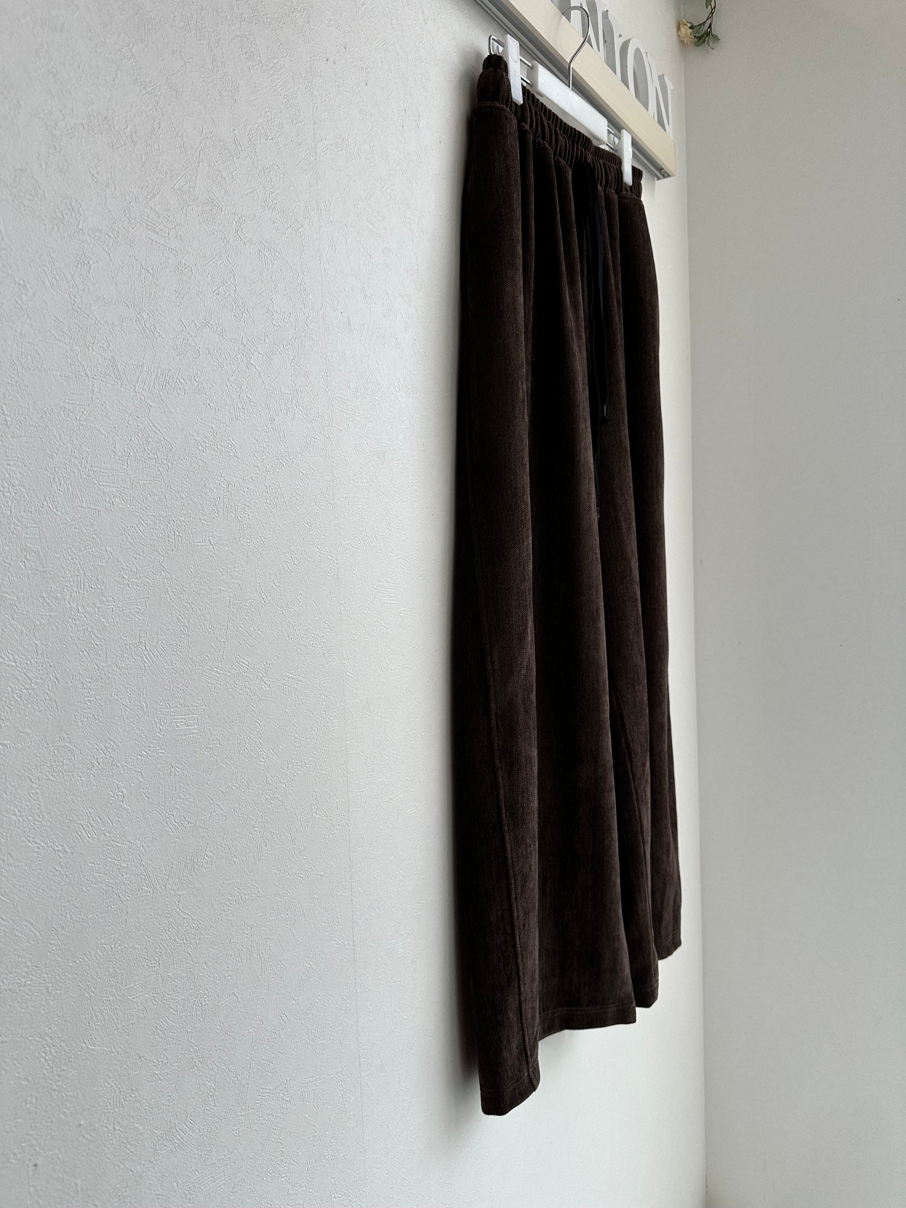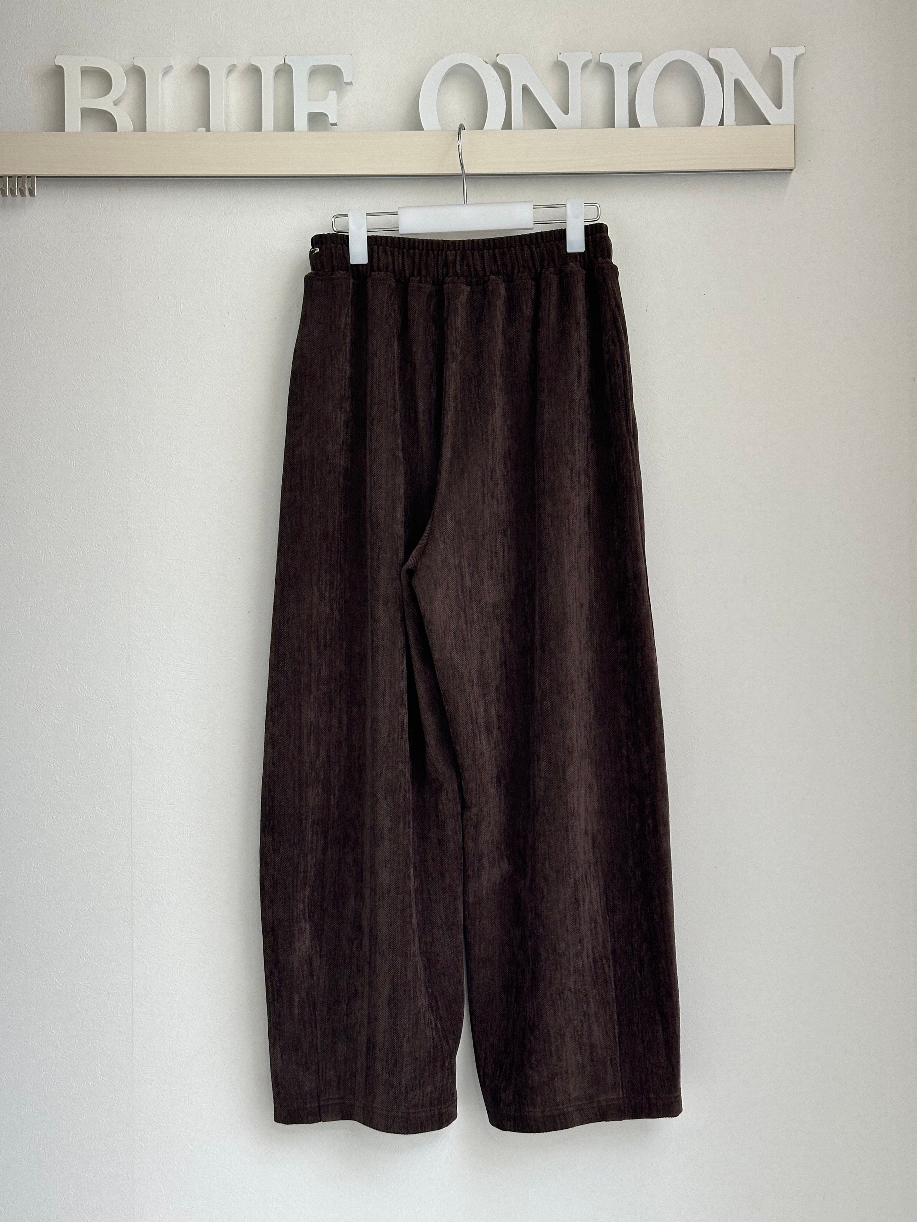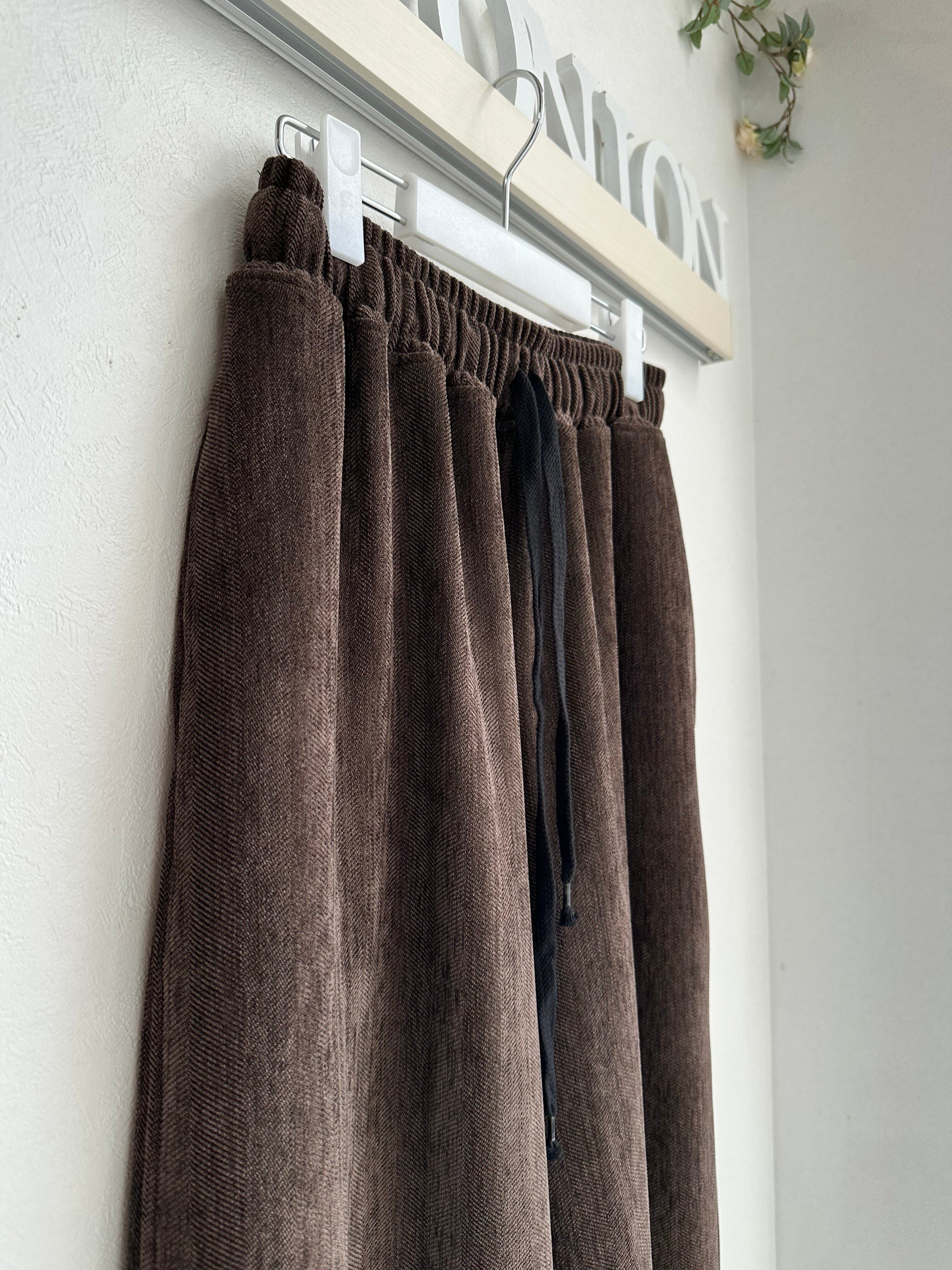 秋冬らしい暖かみのあるイージーコクーンパンツです。コーデュロイに見える起毛の素材はヘリンボーン柄になっていて今年らしい雰囲気。