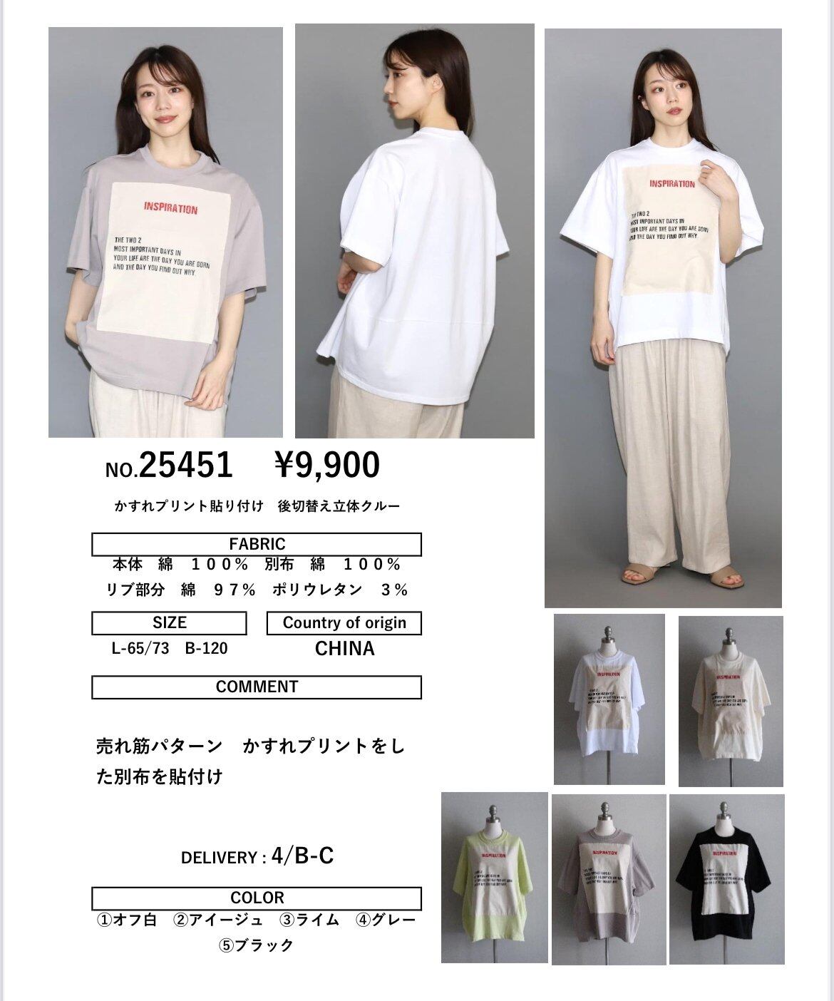 かすれプリント貼り付け 後切替え立体クルー 25451