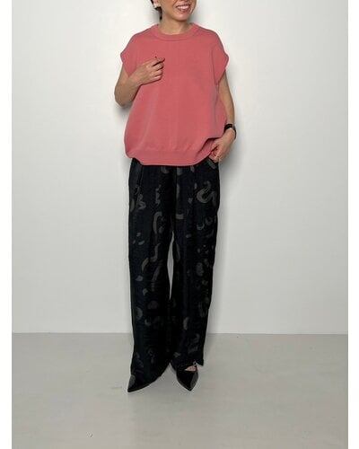 前のアームホールにスリット明きを施しているので、そこから腕を出し、肩がけ風やビスチェ風にアレンジして着用もおすすめです。温度調整や、暖かい時期にも活躍できそうな1枚です。