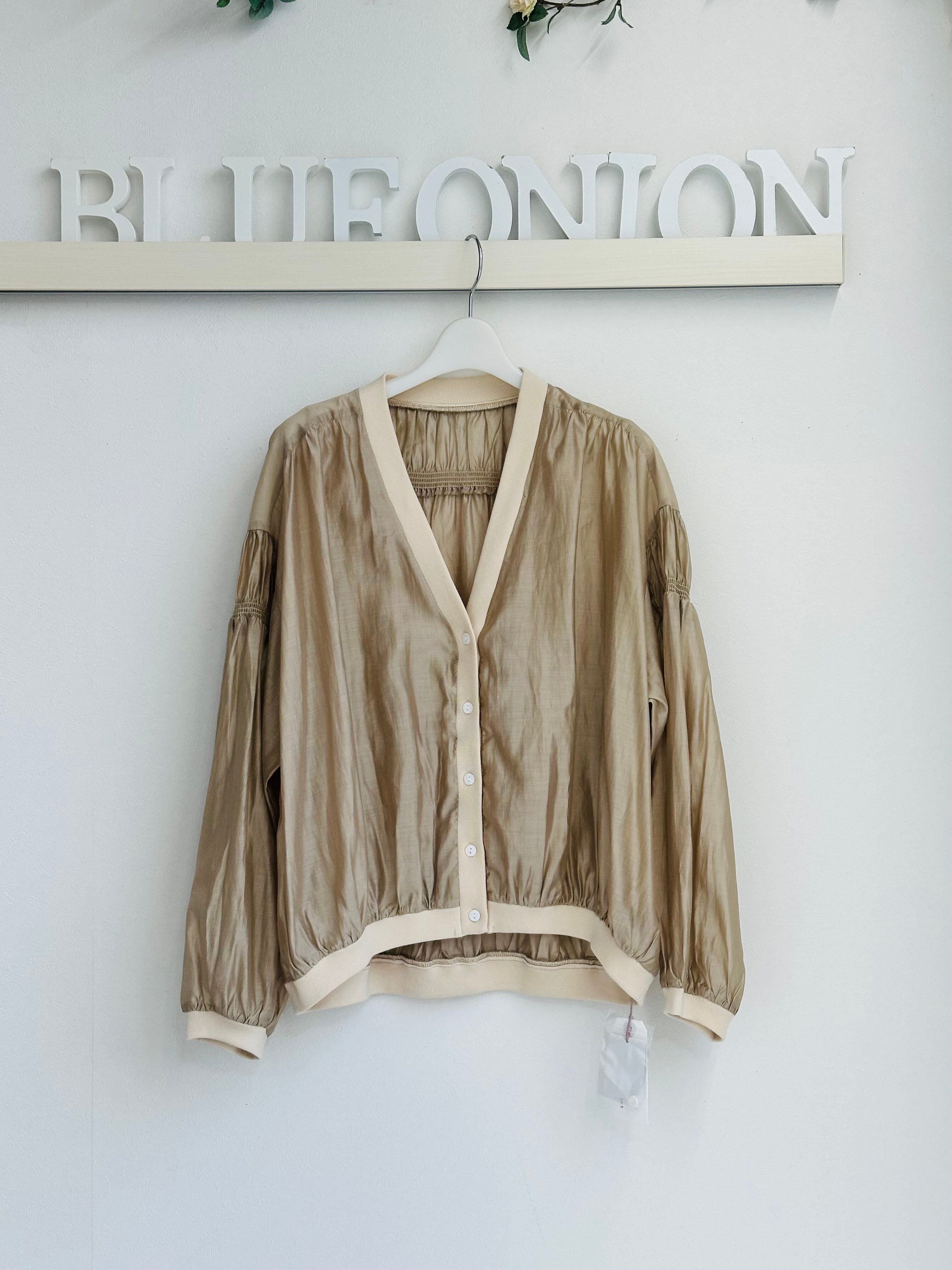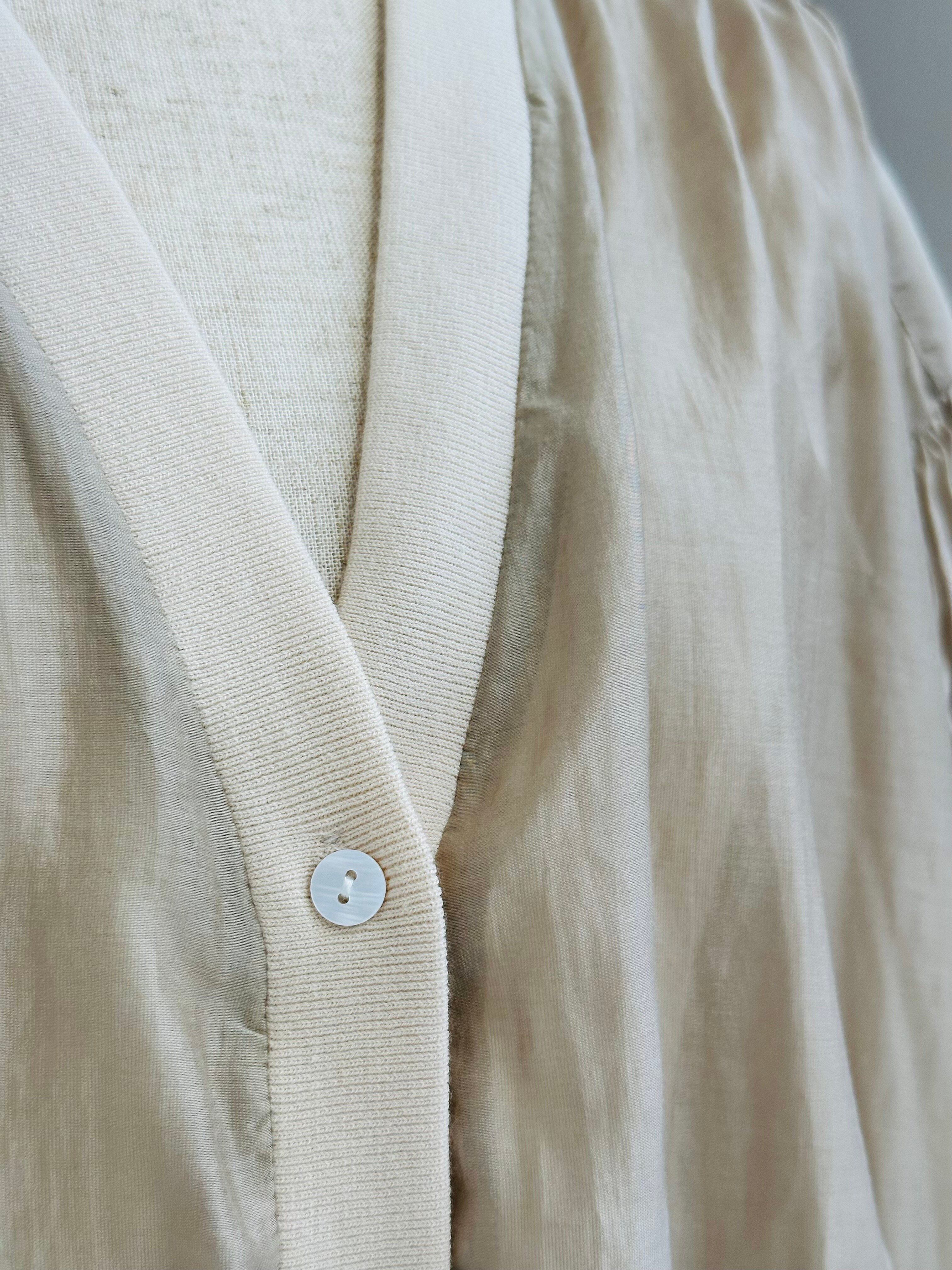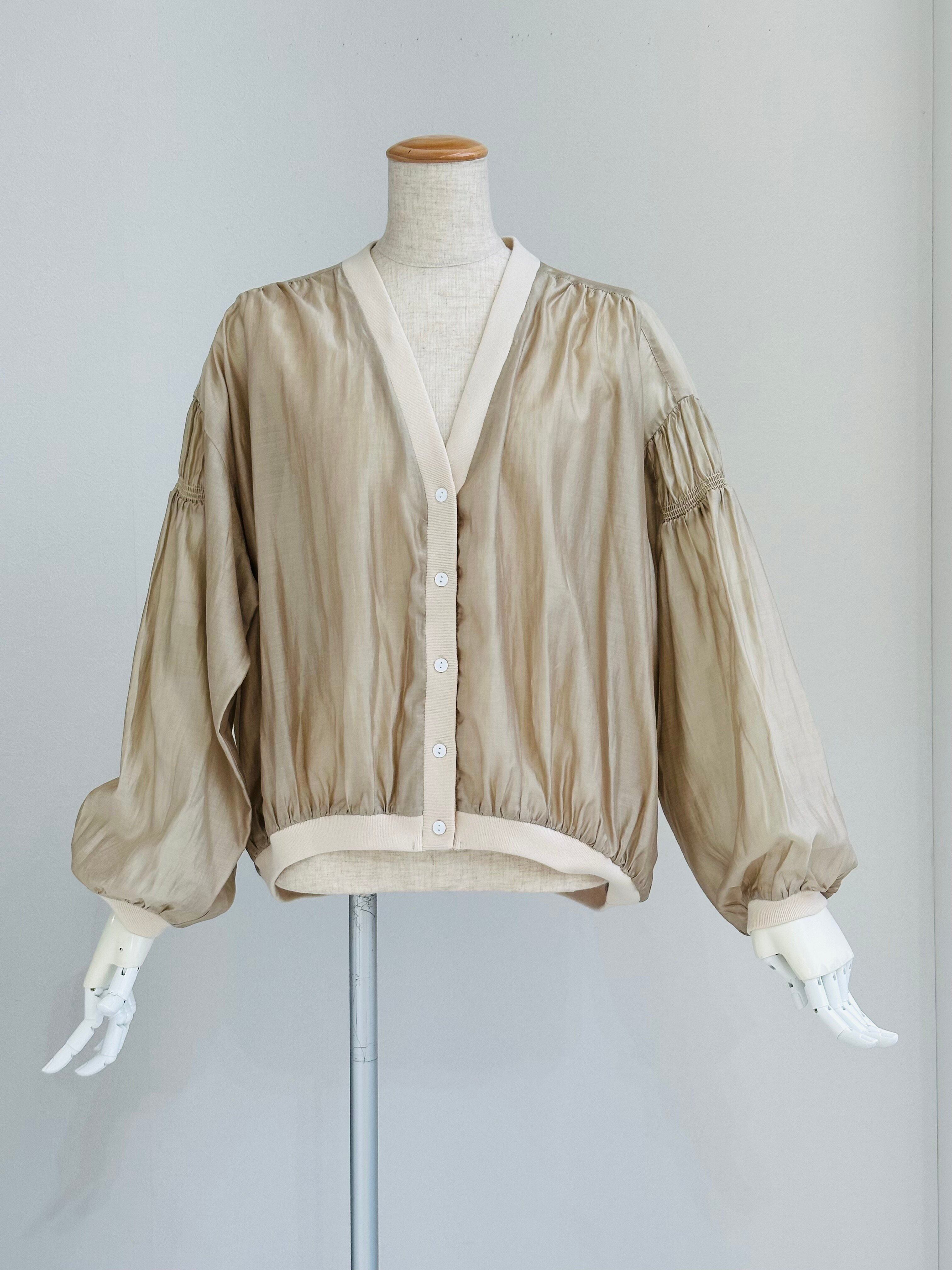 リブでメリハリつけたカーディガンtypeのVネックブラウス