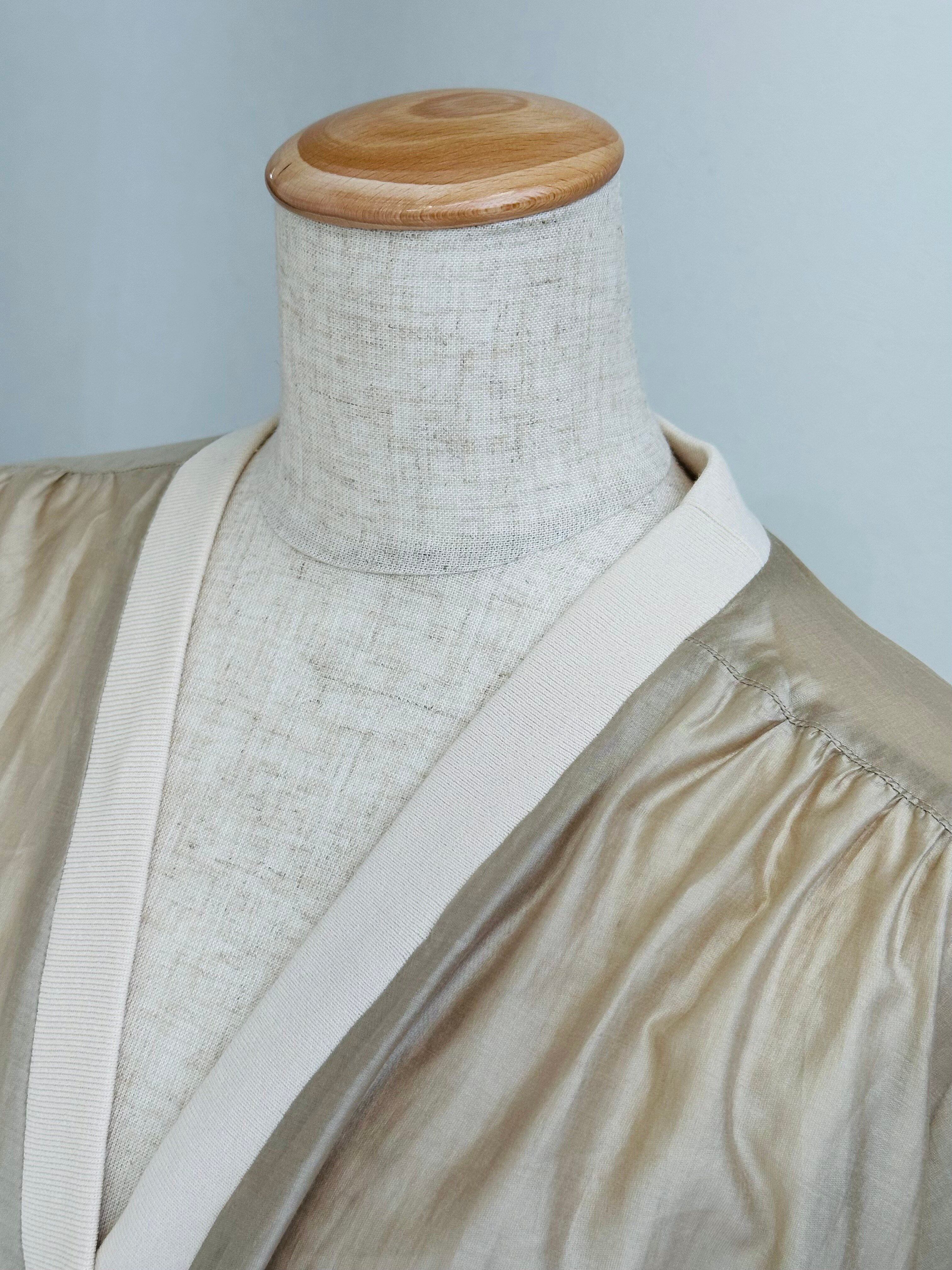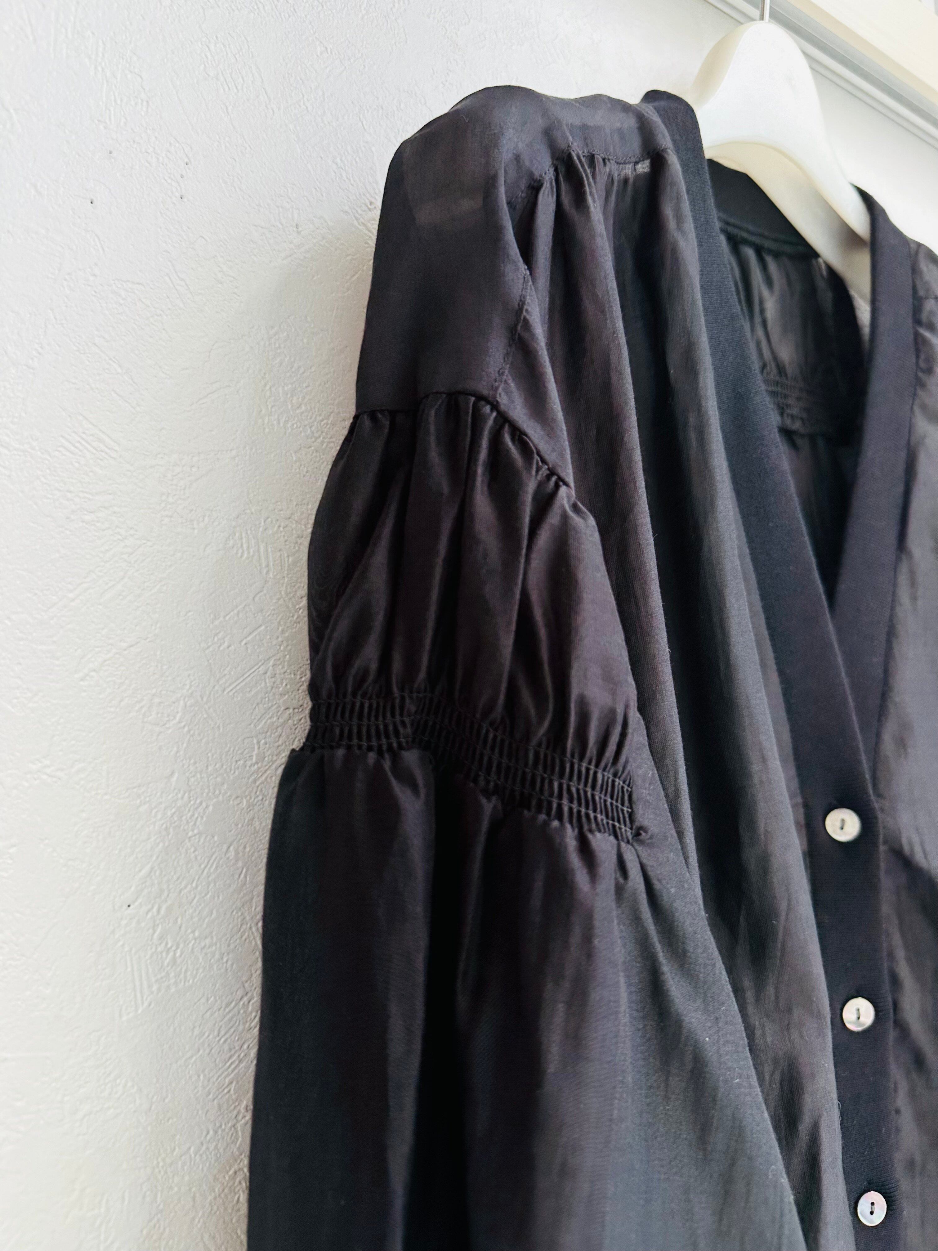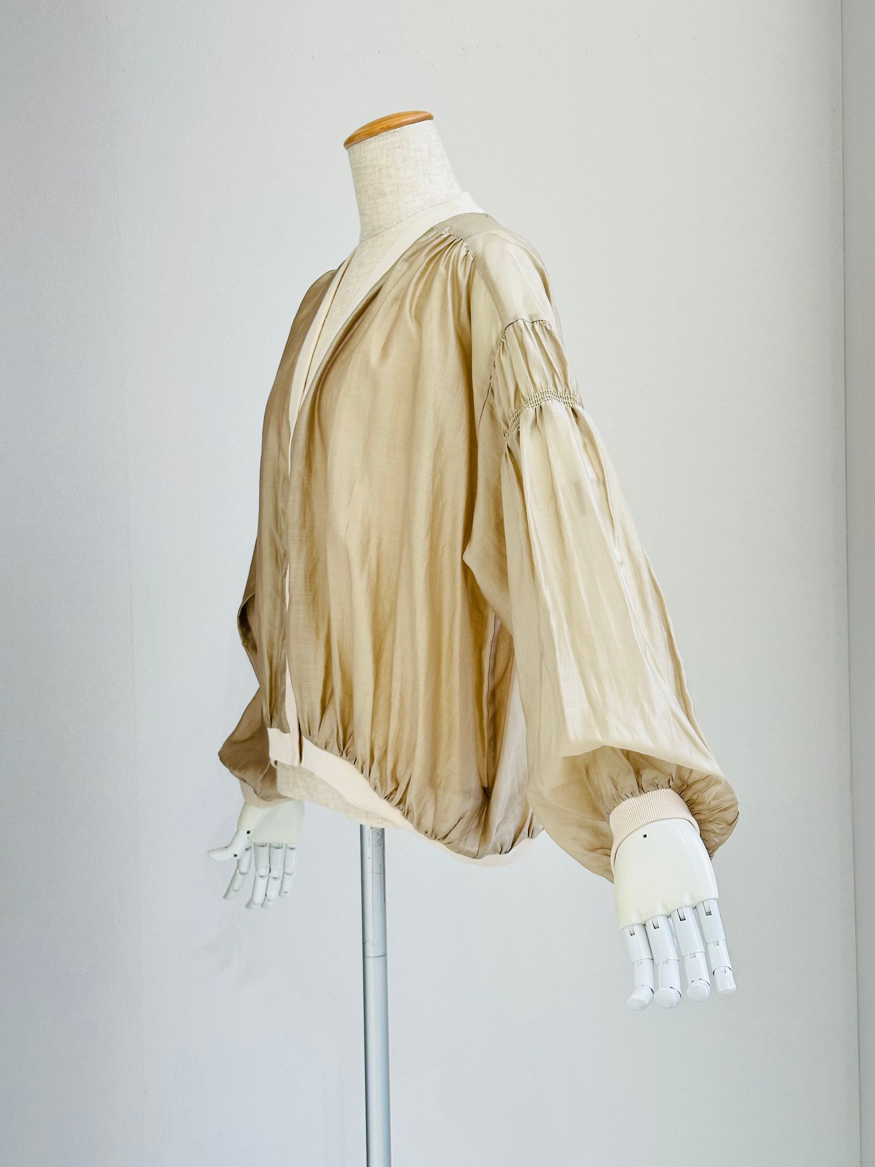 リブでメリハリつけたカーディガンtypeのVネックブラウス