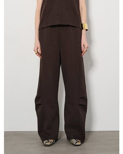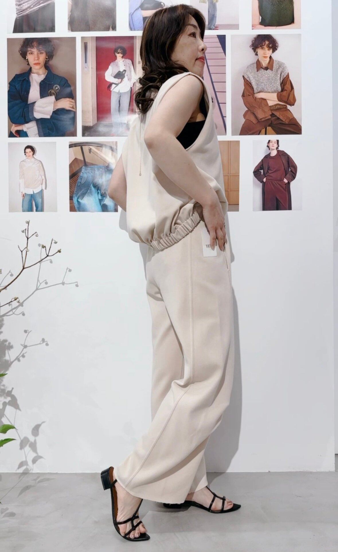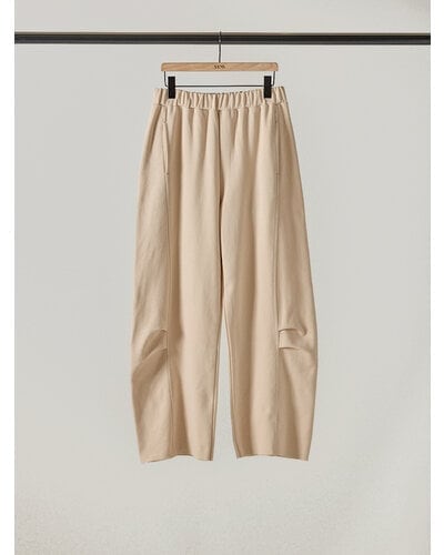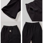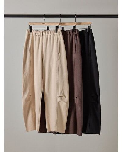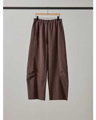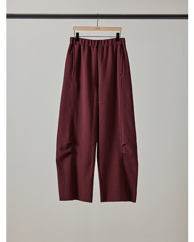 綿ポリエステルのほどよいカジュアル感のあるダブルジャージー素材は、裏毛ほどカジュアルすぎない、裏側もスムースな肌あたりでパジャマっぽくならない大人におすすめのスウェットパンツです。膝に入れたタックで作るカーブシルエットがモードな雰囲気をプラス。同素材のトップスや、少しきれいめなシャツと合わせてもこなれた印象を与えてくれます。秋を感じる落ち着いたカラー展開ですが、オールシーズン着用いただけるアイテムです。