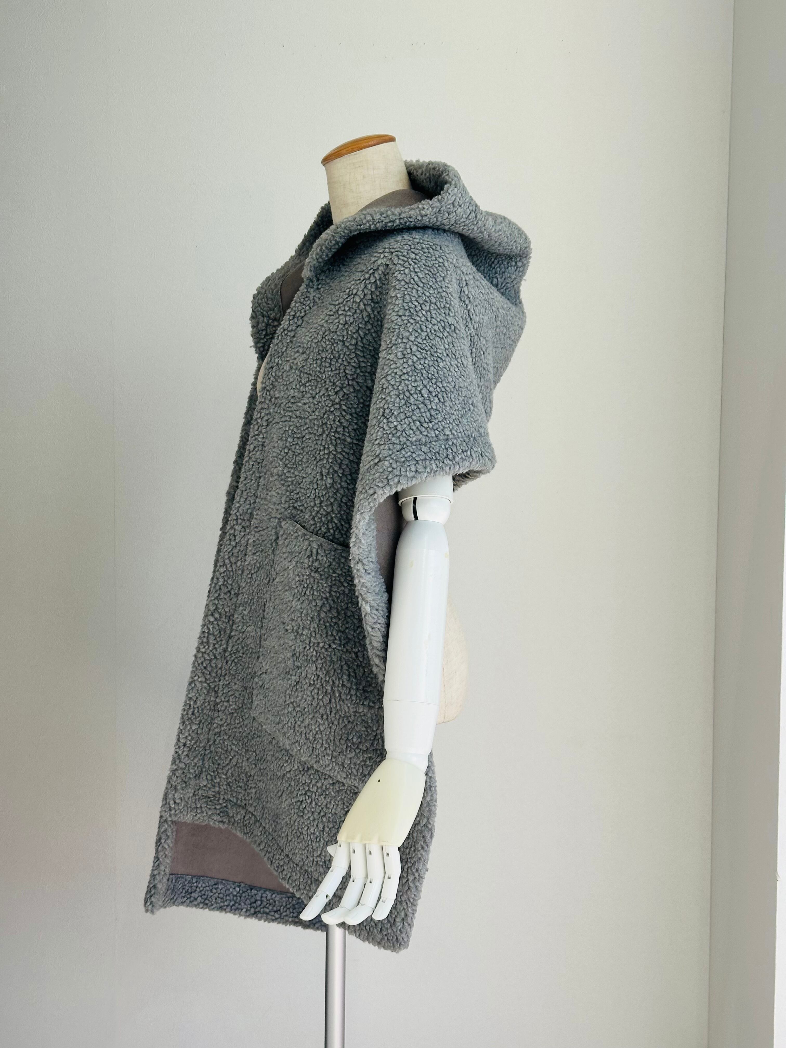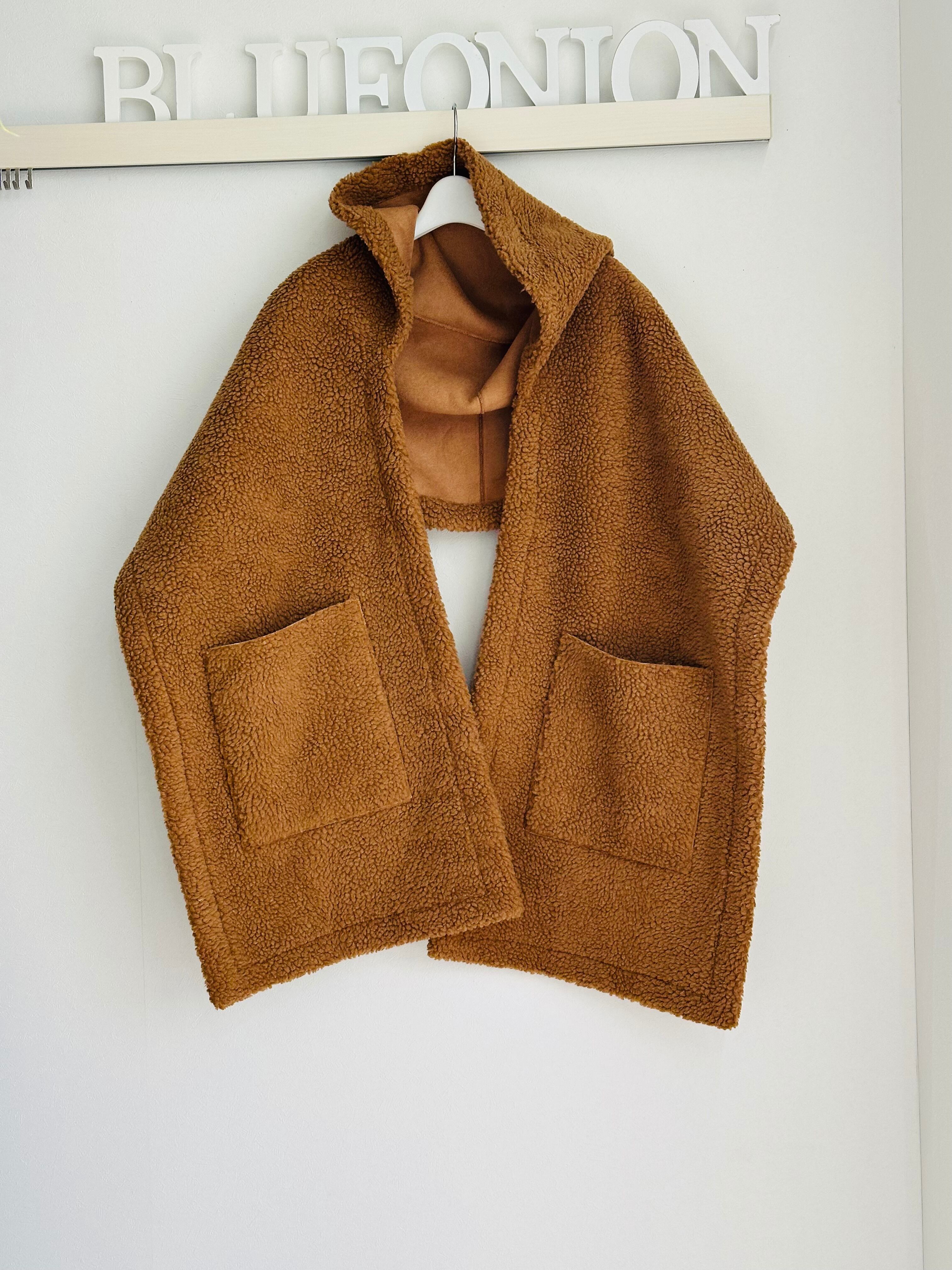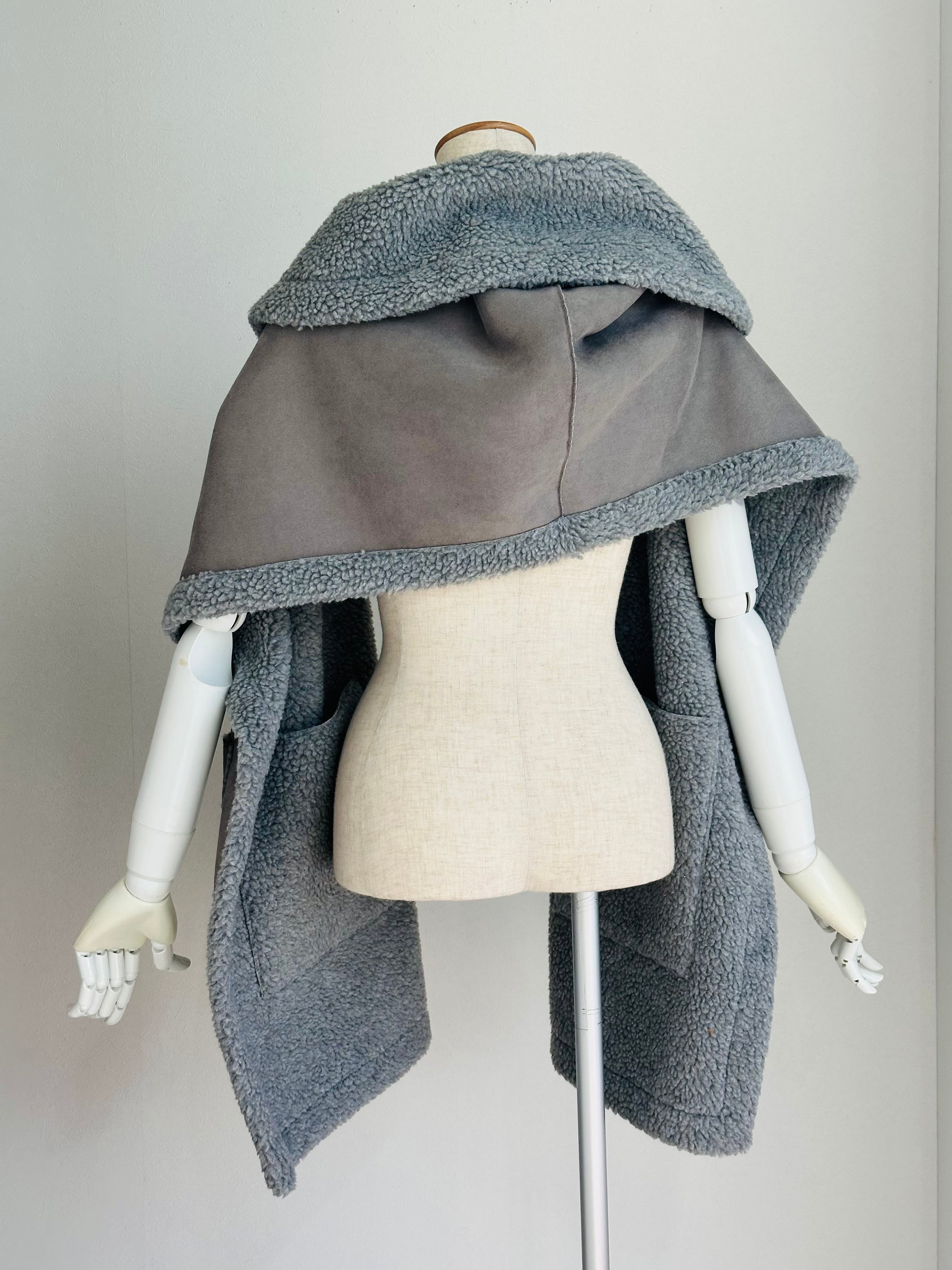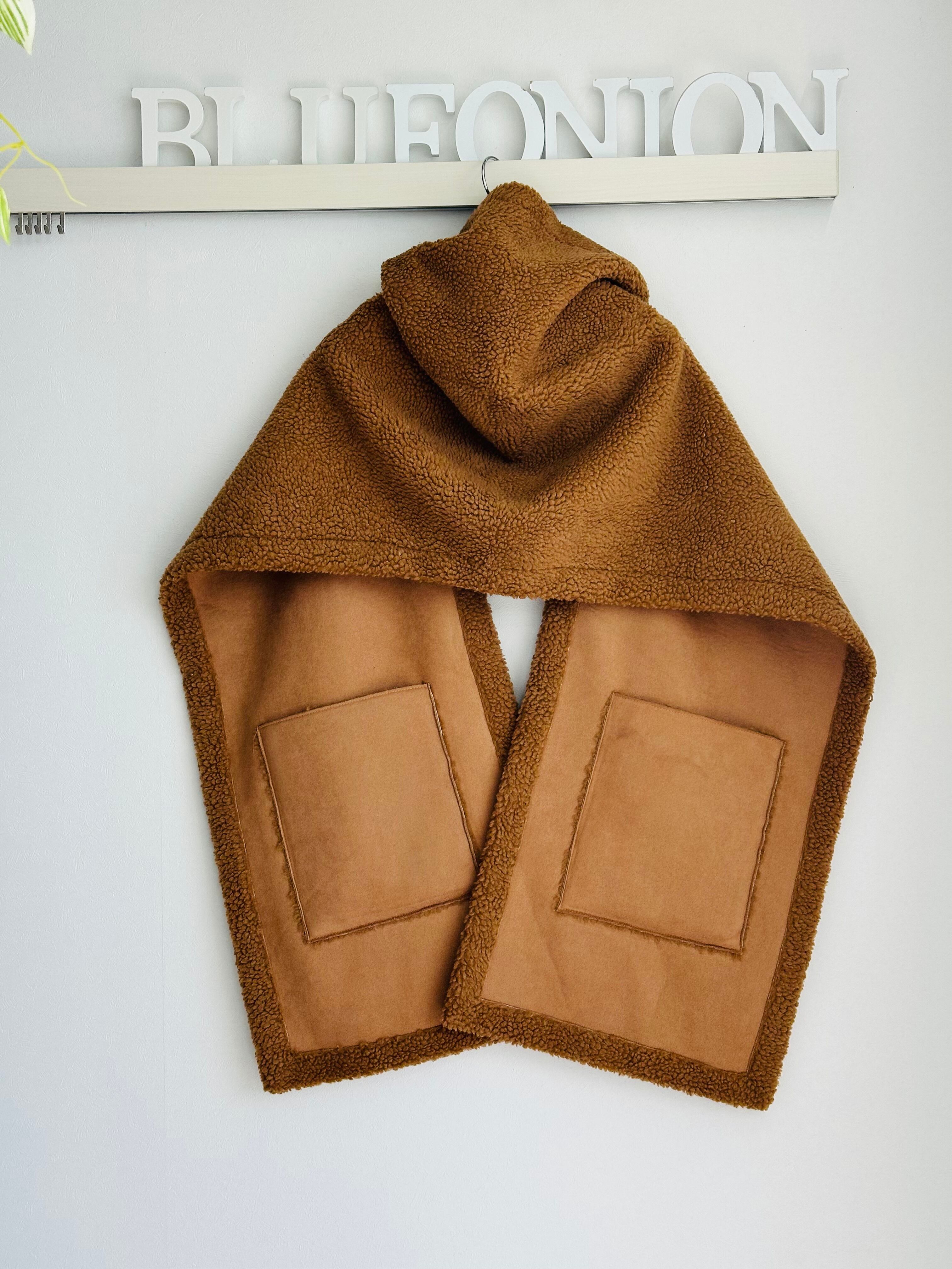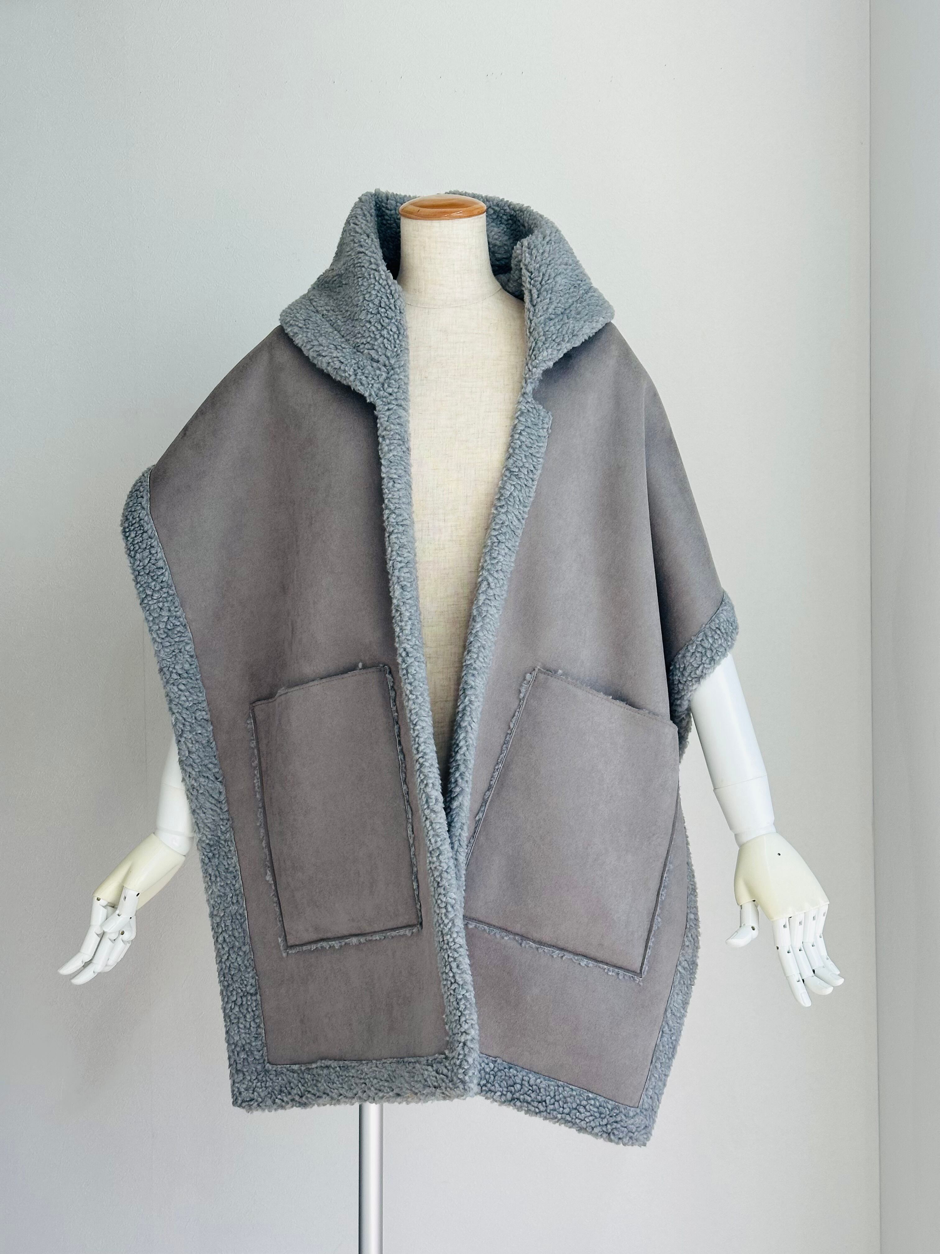 エコムートン素材を使用したこのスヌードは、柔らかなボアとスエードの二重構造で、心地よい肌触りを実現します。