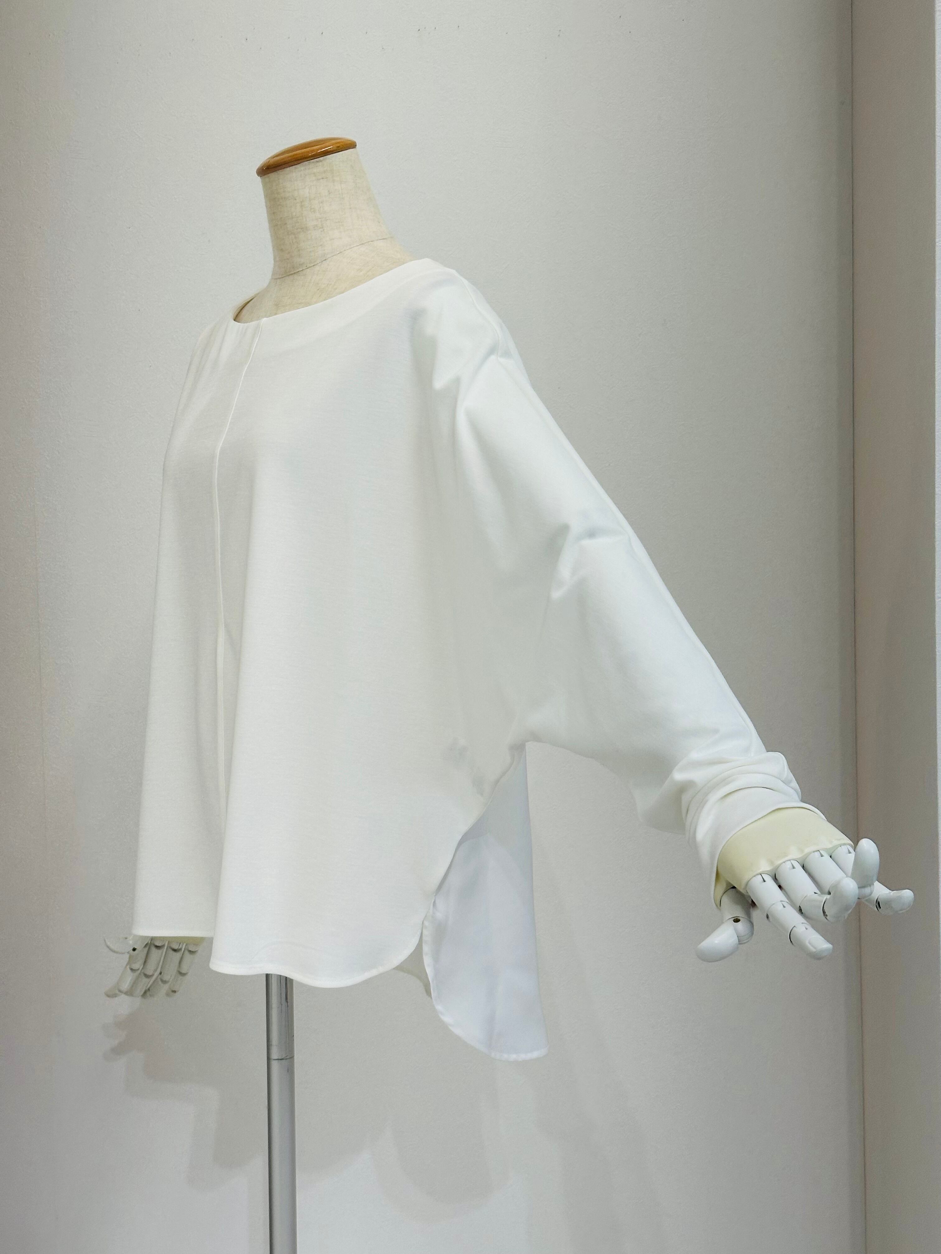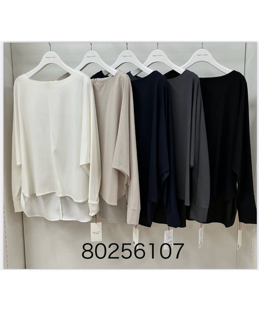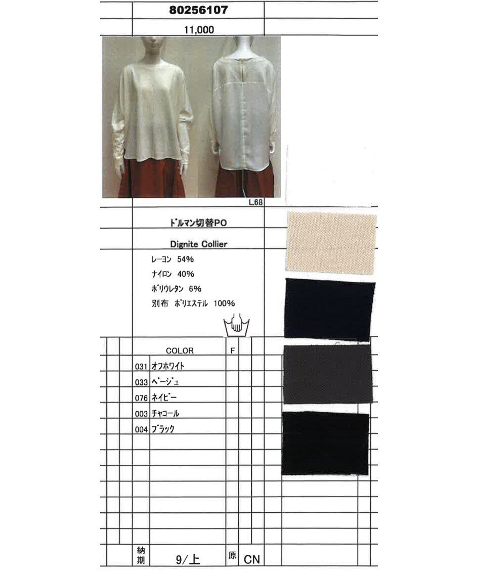 ドルマン切り替えデザインのプルオーバーです。柔らかな素材感が心地よく、カジュアルにもキレイめスタイルにもぴったりな一枚です。ドルマンシルエットは、リラックス感を演出しながらも、どこか洗練された印象を与えます。 前後で異なる生地感の切り替えが、さりげないアクセントとなり、シンプルながらもこだわりを感じさせるスタイルに仕上がっています。お手持ちのボトムスやアウターとも気軽に合わせられるデザインですので、様々なシーンでご活用いただけます。