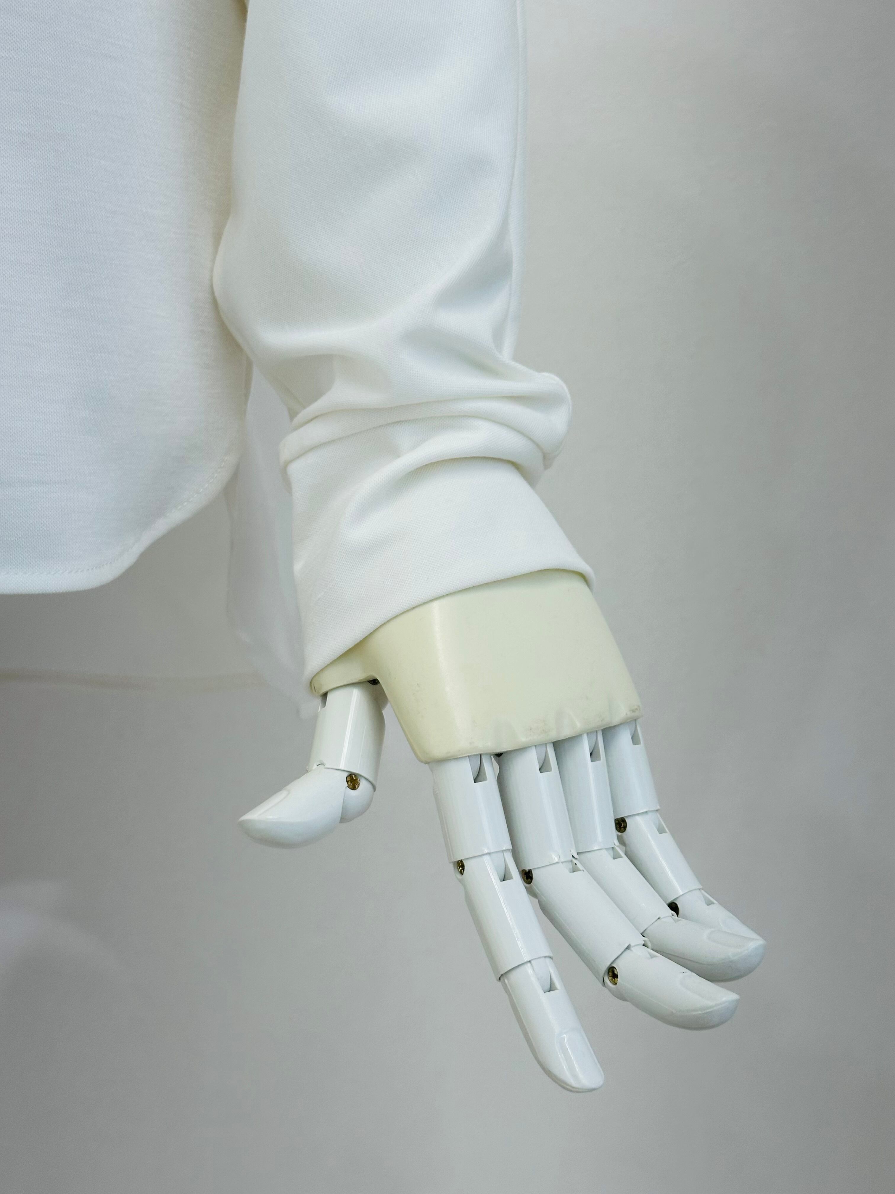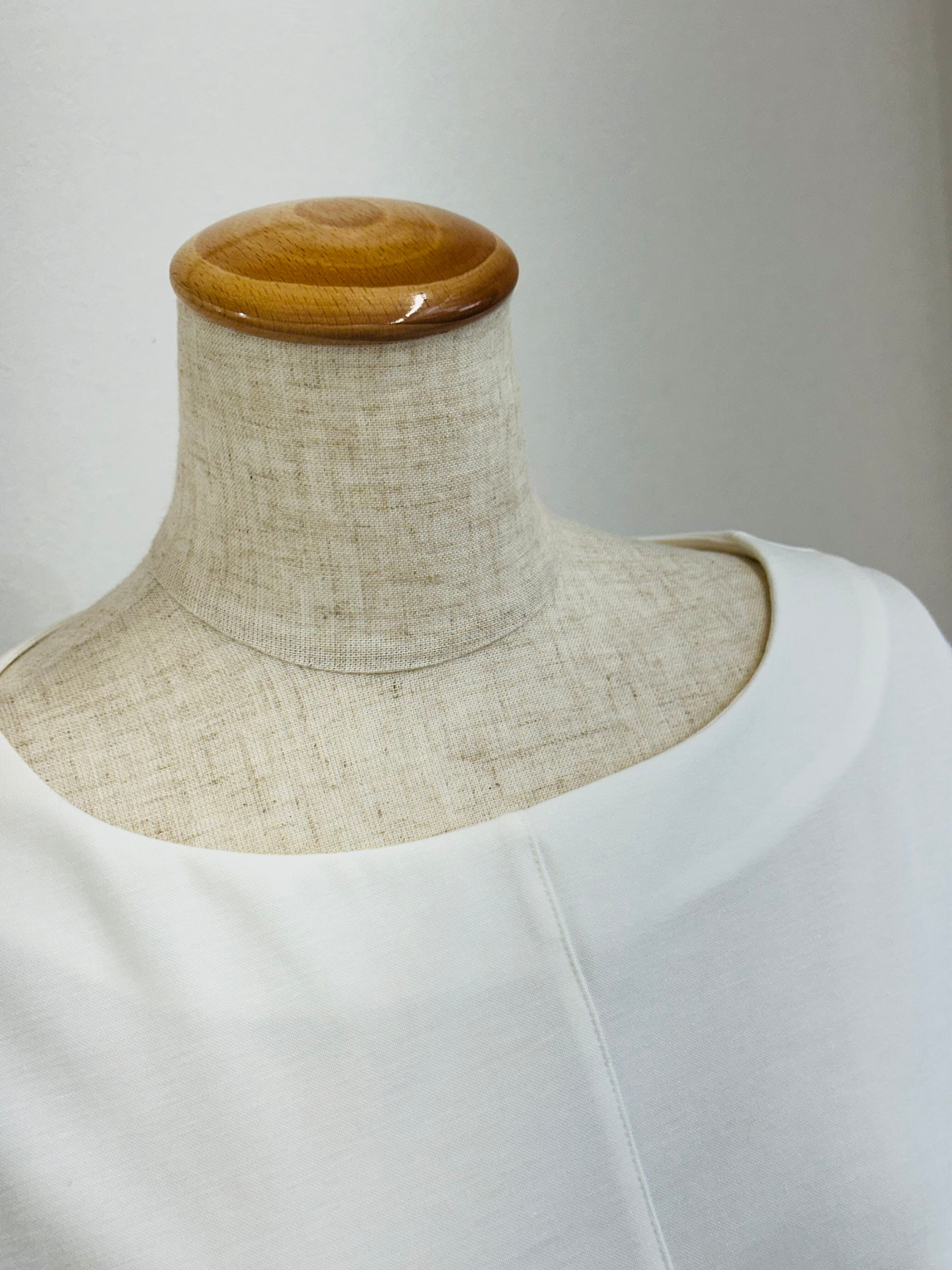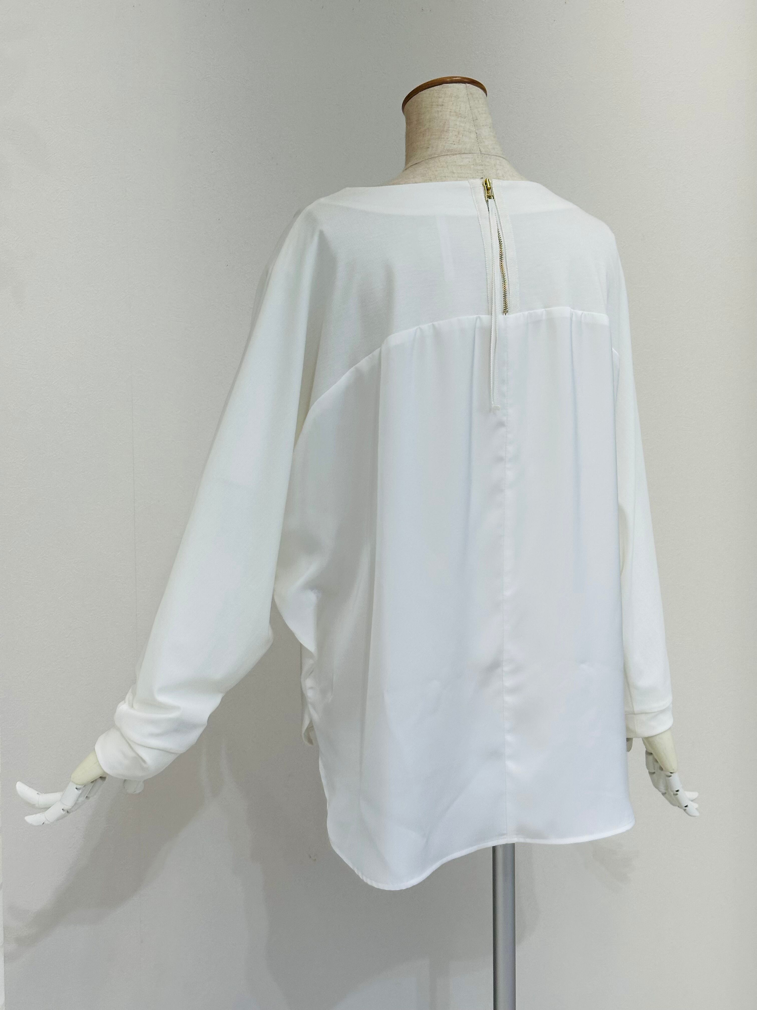 ドルマン切り替えデザインのプルオーバーです。柔らかな素材感が心地よく、カジュアルにもキレイめスタイルにもぴったりな一枚です。ドルマンシルエットは、リラックス感を演出しながらも、どこか洗練された印象を与えます。 前後で異なる生地感の切り替えが、さりげないアクセントとなり、シンプルながらもこだわりを感じさせるスタイルに仕上がっています。お手持ちのボトムスやアウターとも気軽に合わせられるデザインですので、様々なシーンでご活用いただけます。