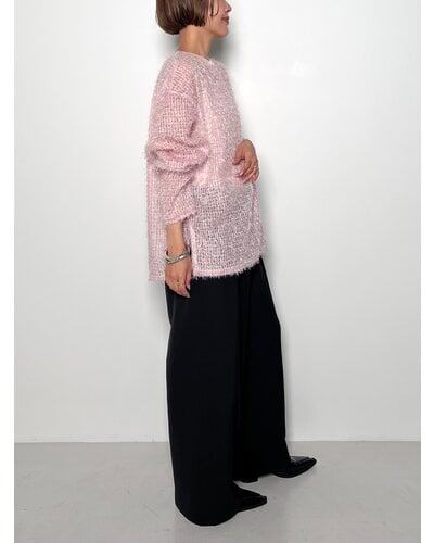 チュール素材にフェザーライクが編みこまれた素材が特徴的なオーバーカットソーになります。