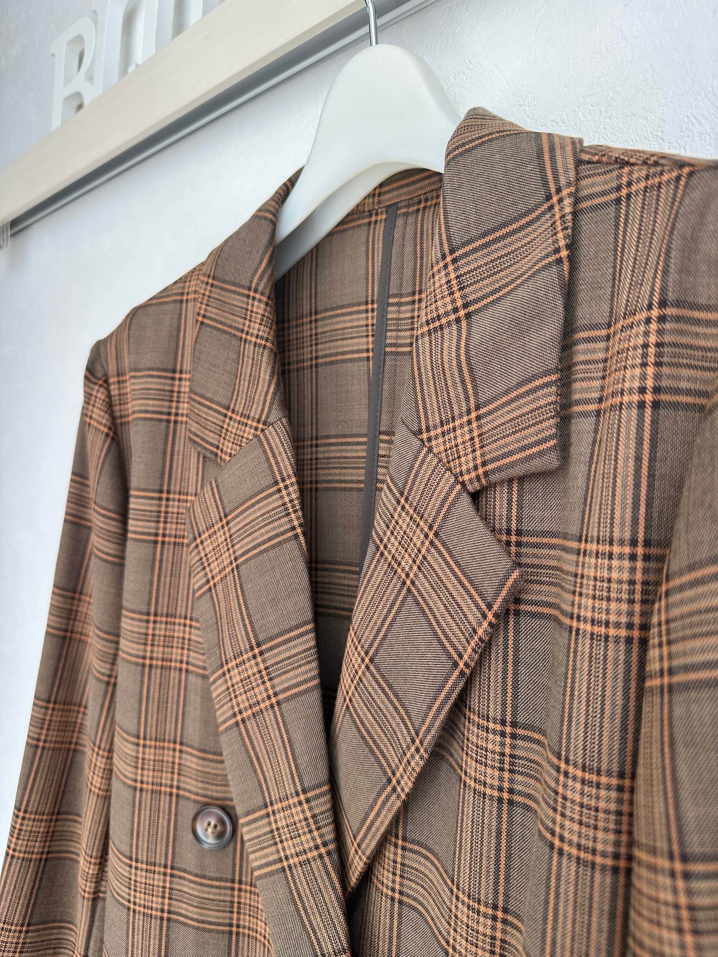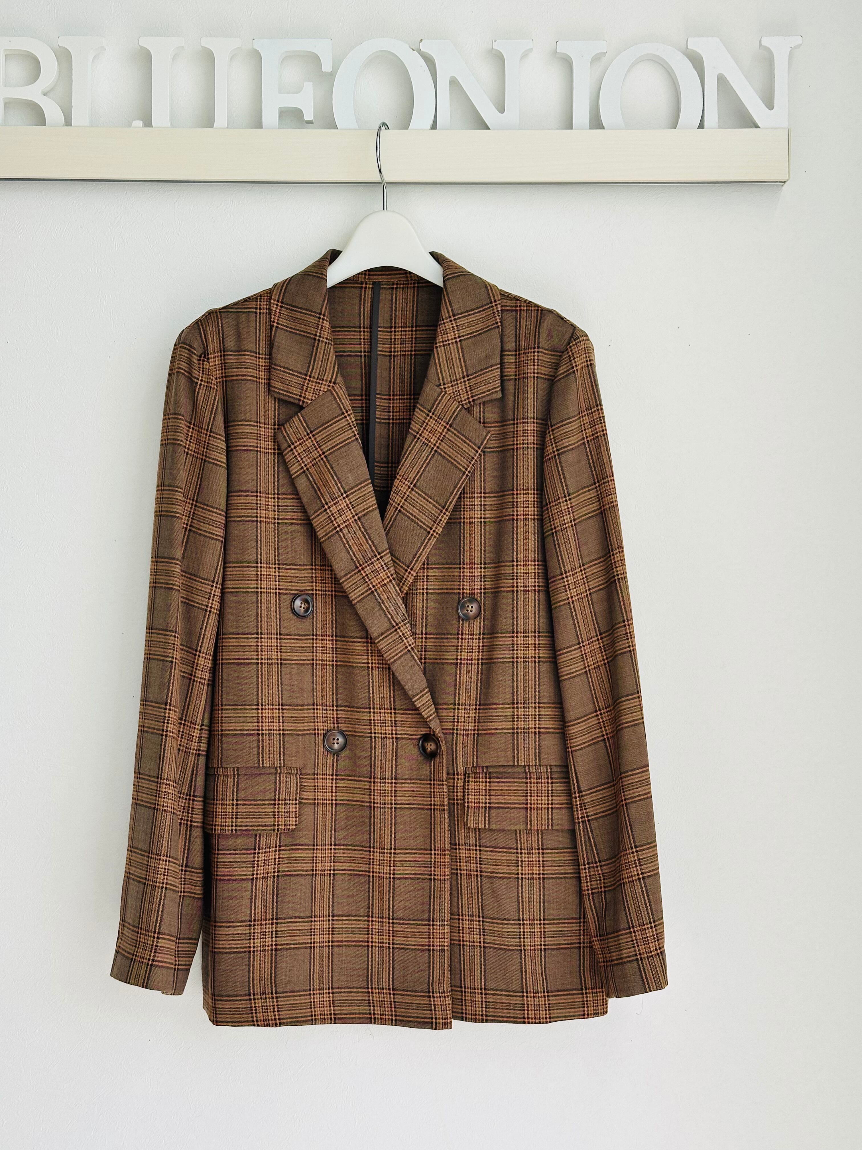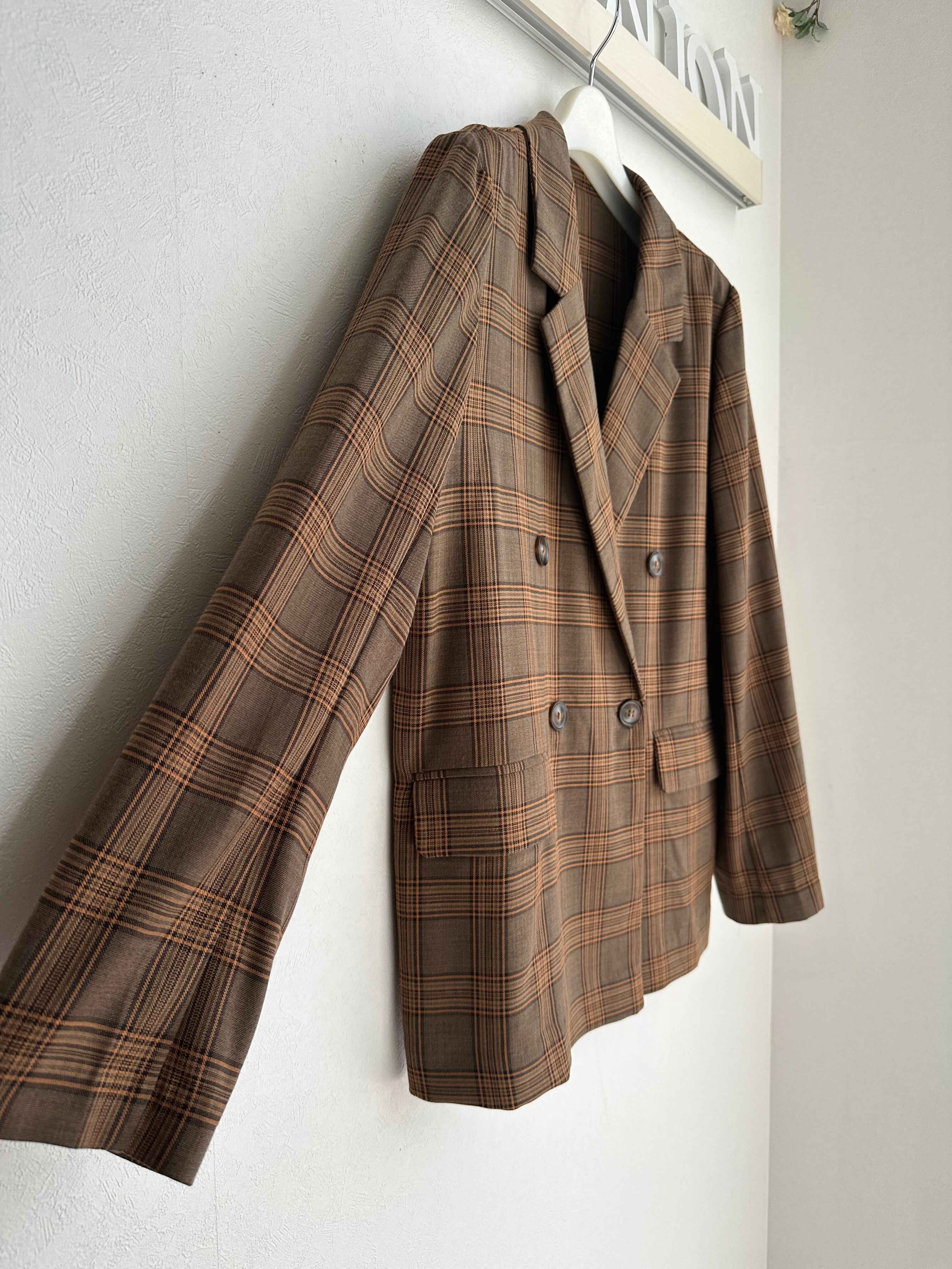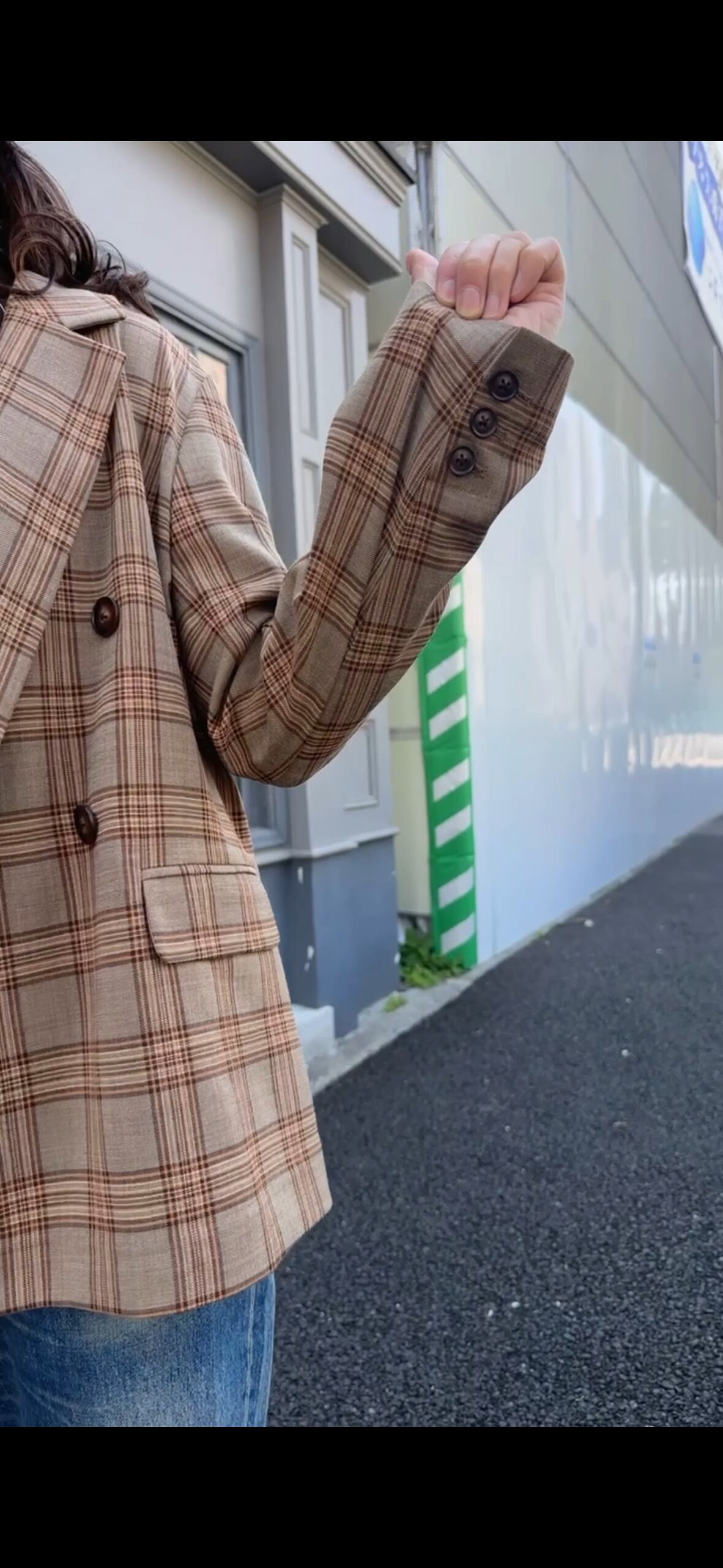 ◼️ スタイリッシュなコレクション◼️ 洗練されたデザインのテーラードジャケットは、ファッションの必需品です。ダブルボタンのスタイルで、クラシックさとモダンさを兼ね備えています。上品なチェック柄が特徴で、どんなシーンにもマッチします。 ポリエステルとレーヨンをブレンドした素材は、着心地が良く、シワになりにくいのでストレスフリーな着用感を提供します。オフィススタイルからカジュアルコーデまで、幅広く活躍する一着です。 ぜひこのジャケットをお試しいただき、そのスタイルの魅力を実感してください。おしゃれなディテールや仕立てを感じていただけること間違いなしです!
