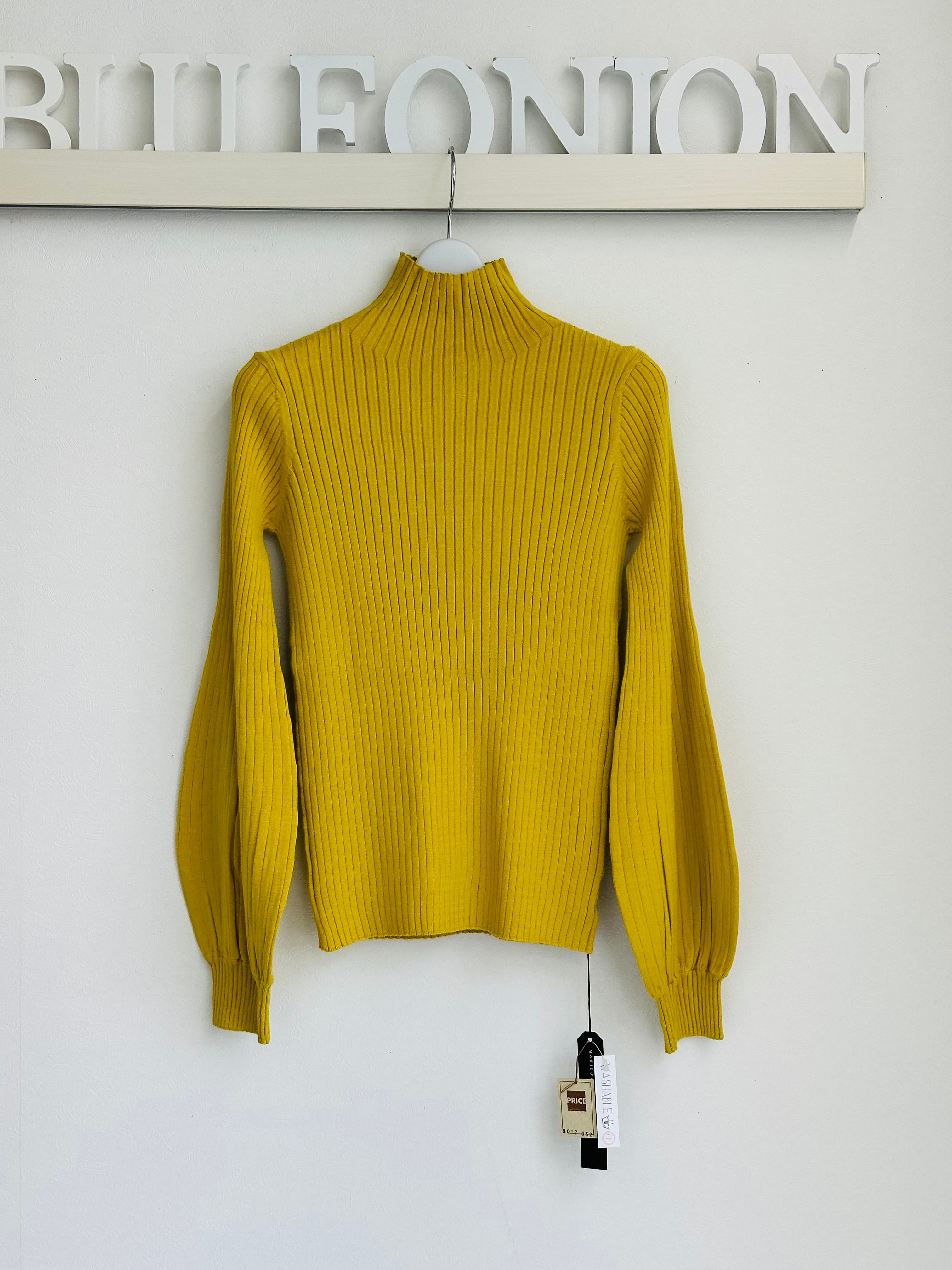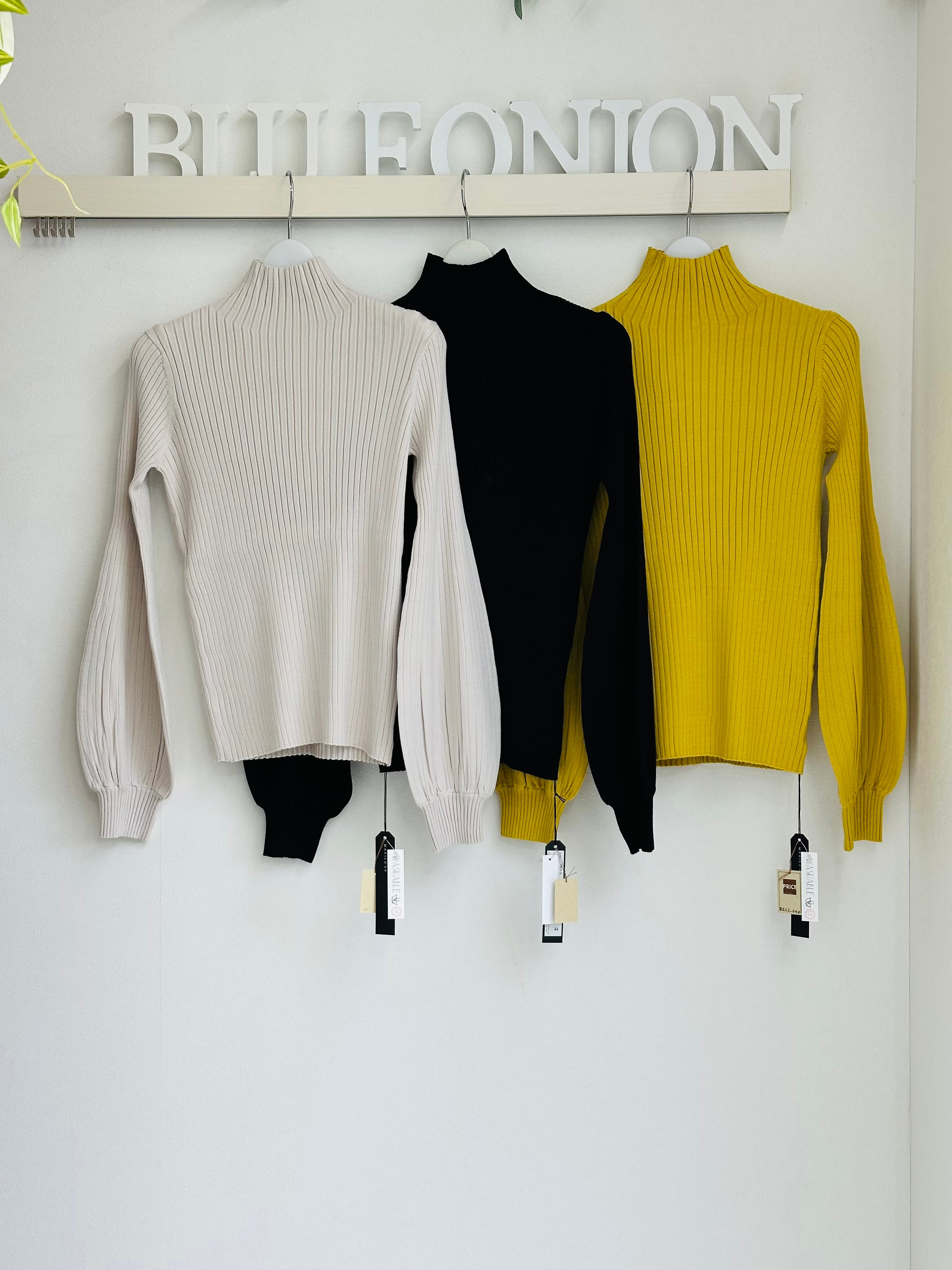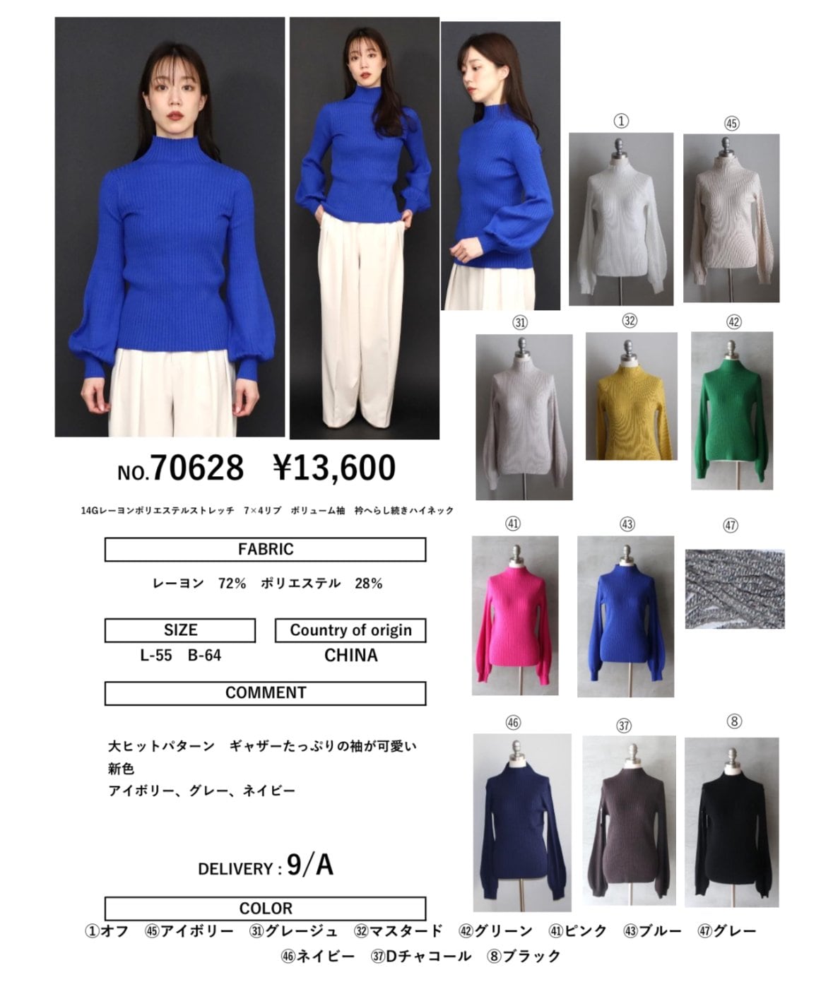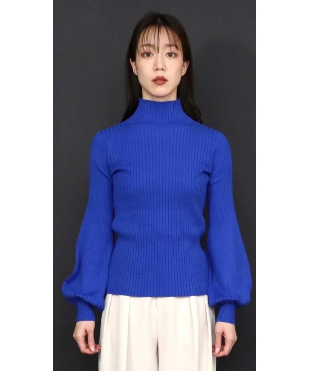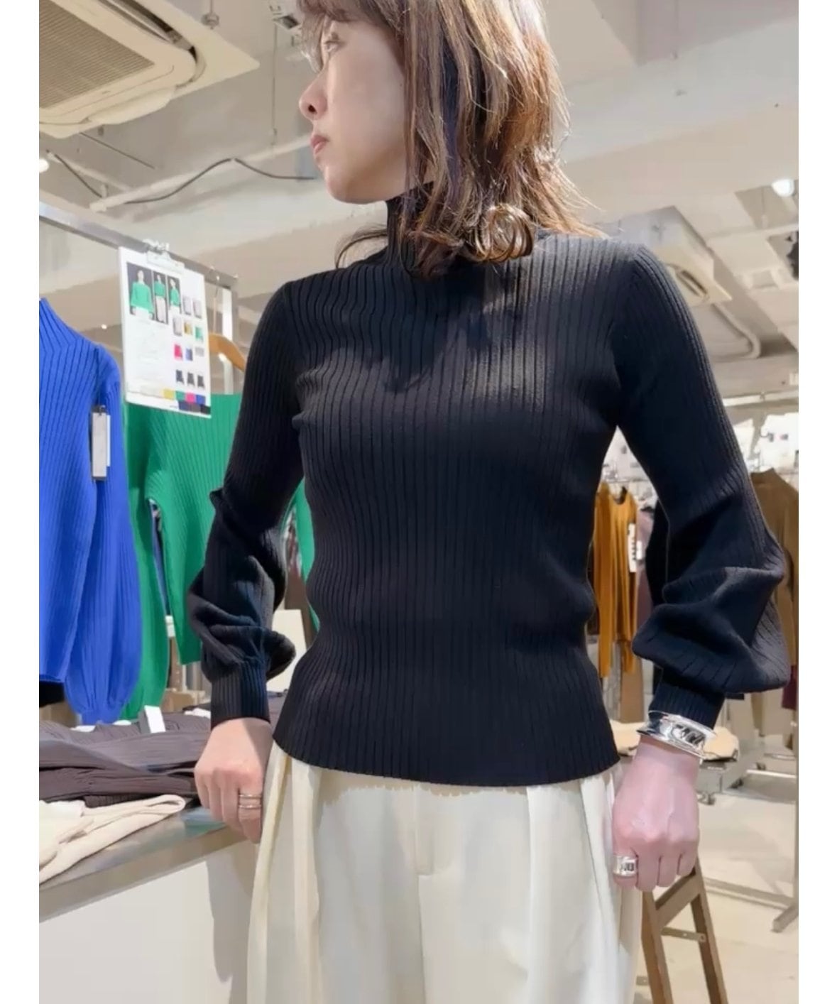 ポワン袖衿へらし続きハイネックリブニット 70628