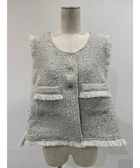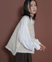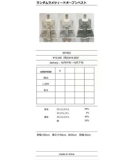 【CYAN tokyo25秋冬ご予約】 ランダムラメツイードオープンベスト 507403 2510 c