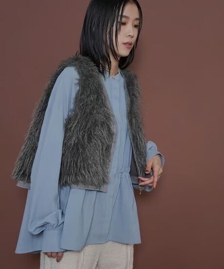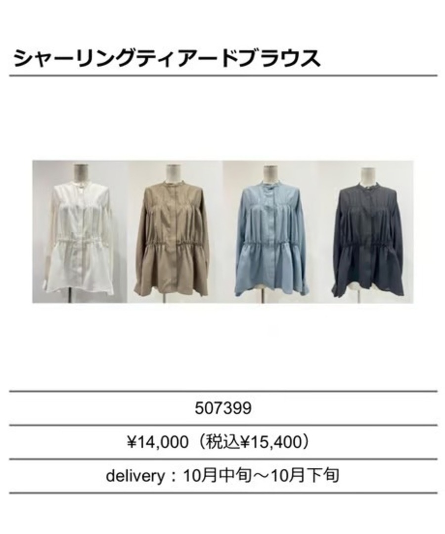 シャーリングティアードブラウス 507399 CYAN tokyo 2510 c