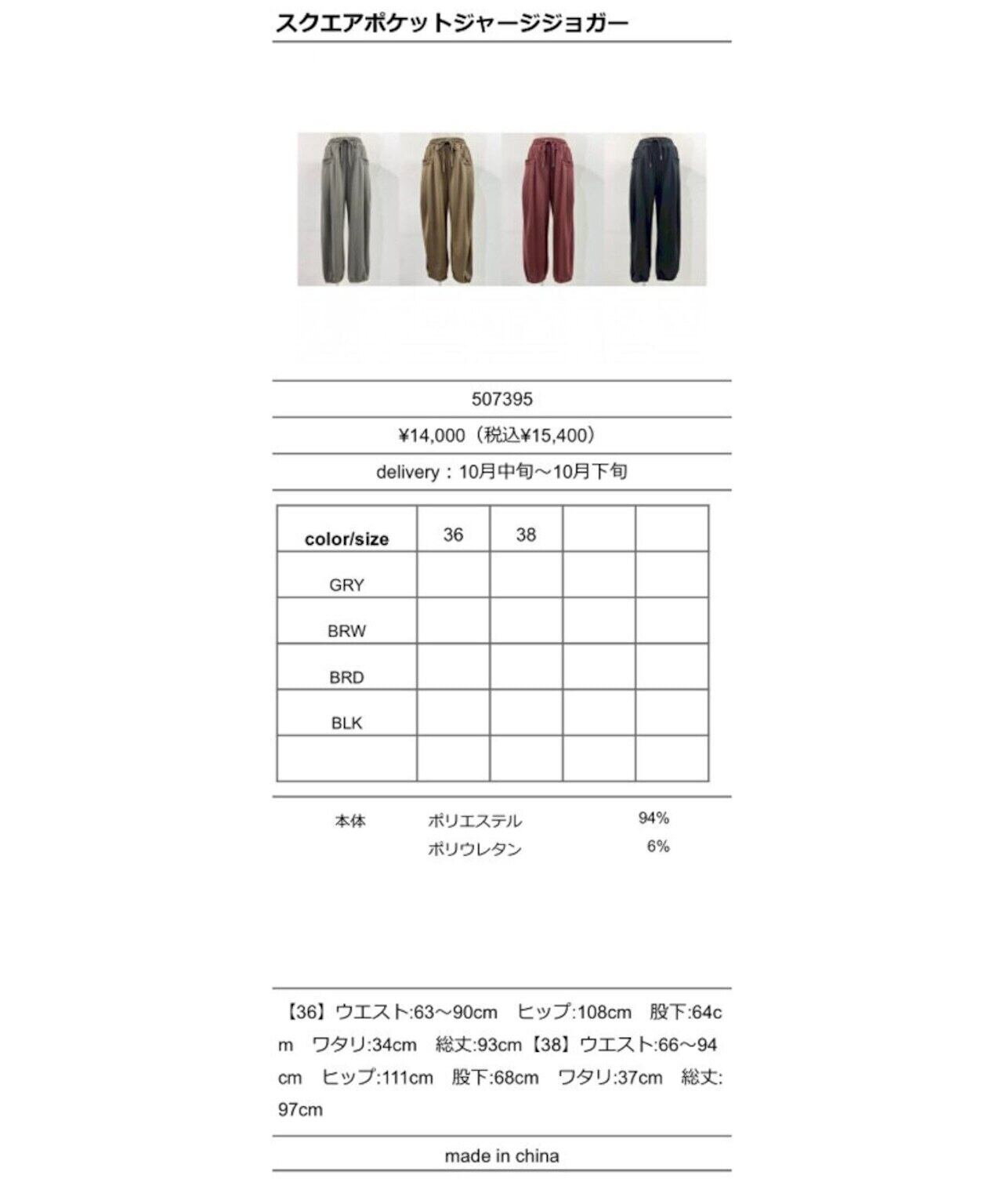 スクエアポケットジャージジョガー 507395 CYAN tokyo 2510 c