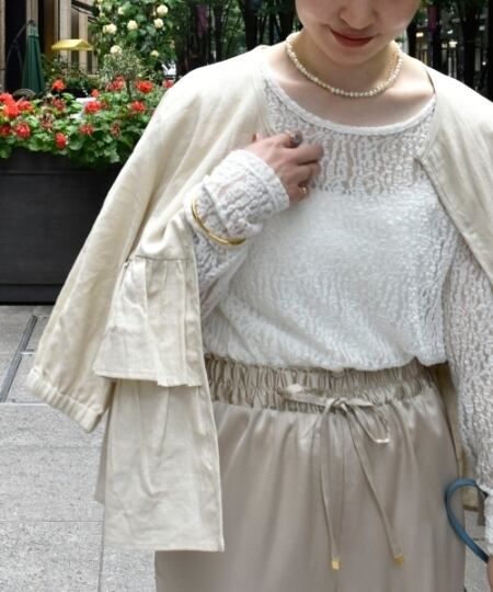 一枚着としてはもちろん、シャツやニットとレイヤードして袖からレースを覗かせたり、サロペットやキャミワンピのインナーとしての着こなしがおすすめです。ジャケット合わせも着映えします!ロングシーズン活躍し、ワードローブに加えたい一着です。