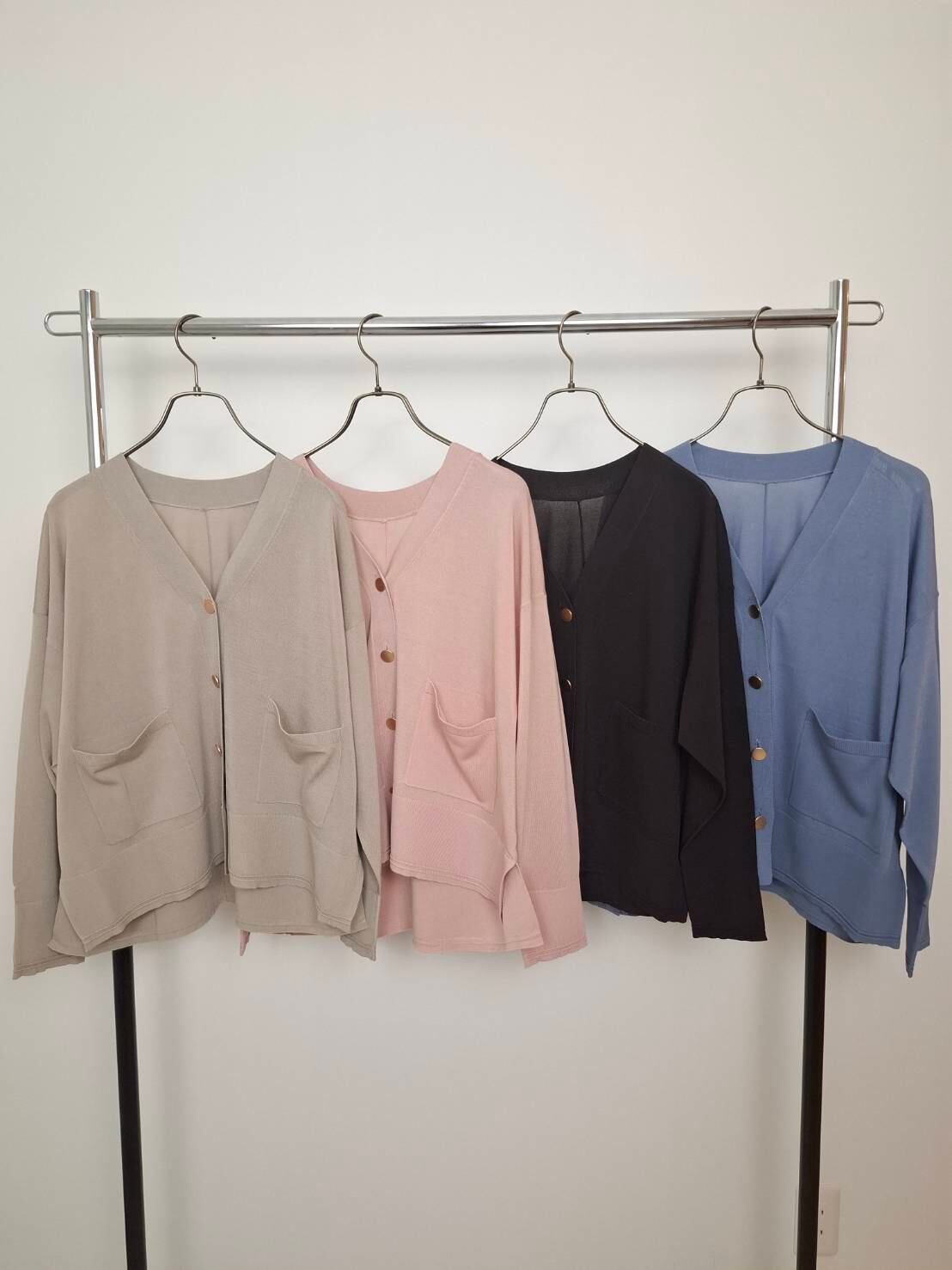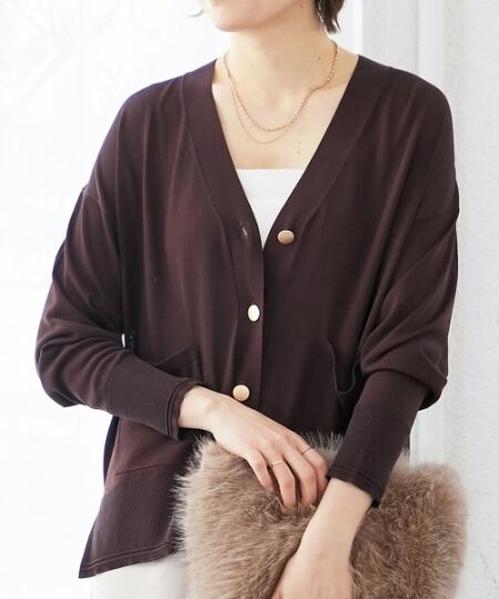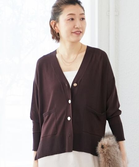ご好評を頂いた程よい光沢と落ち感のある編み地が上品なハイゲージニットカーディガンが登場!
