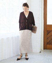 柔らかいカラーなのでスカートでレディライクに合わせるのもおすすめです。