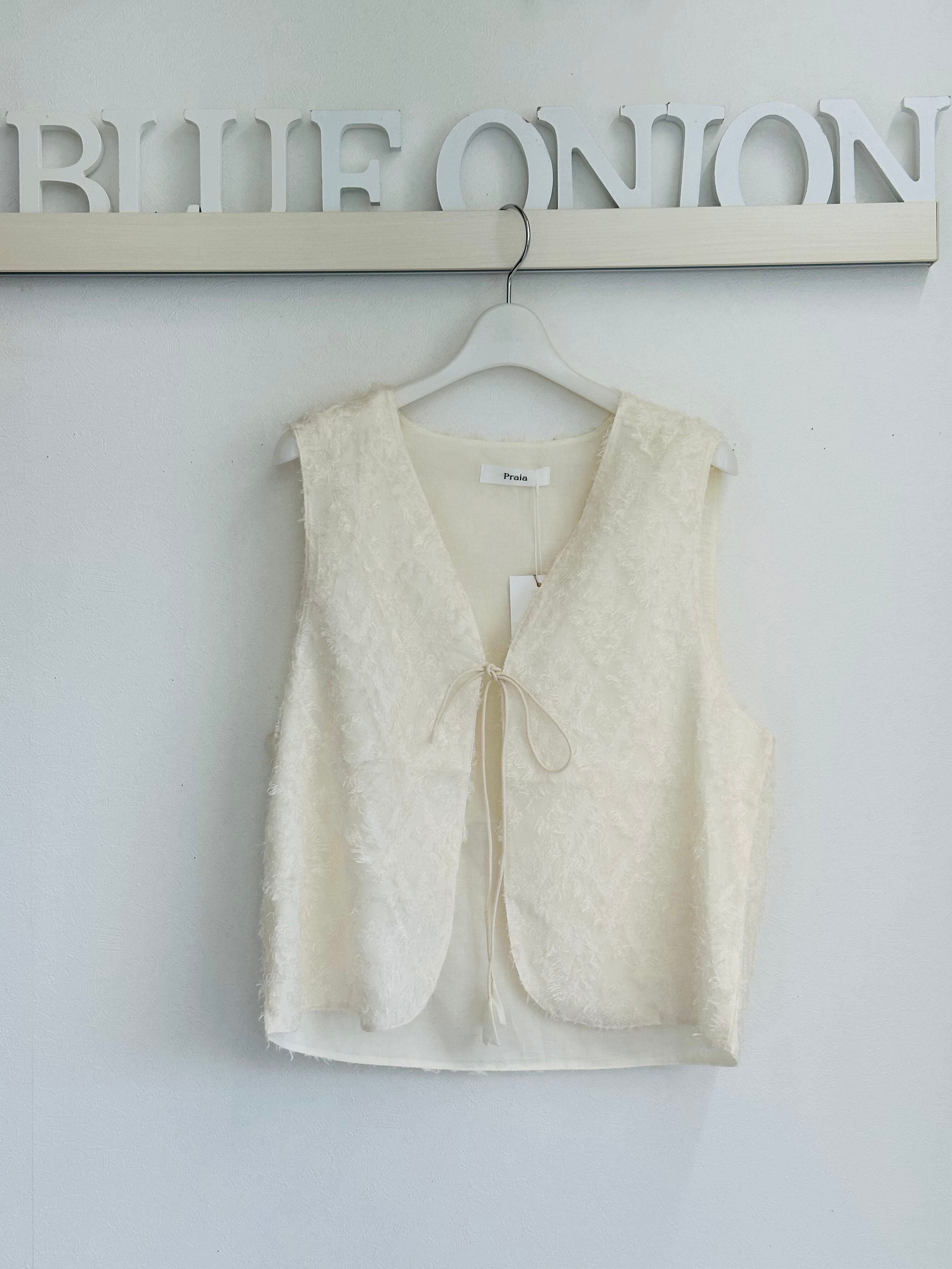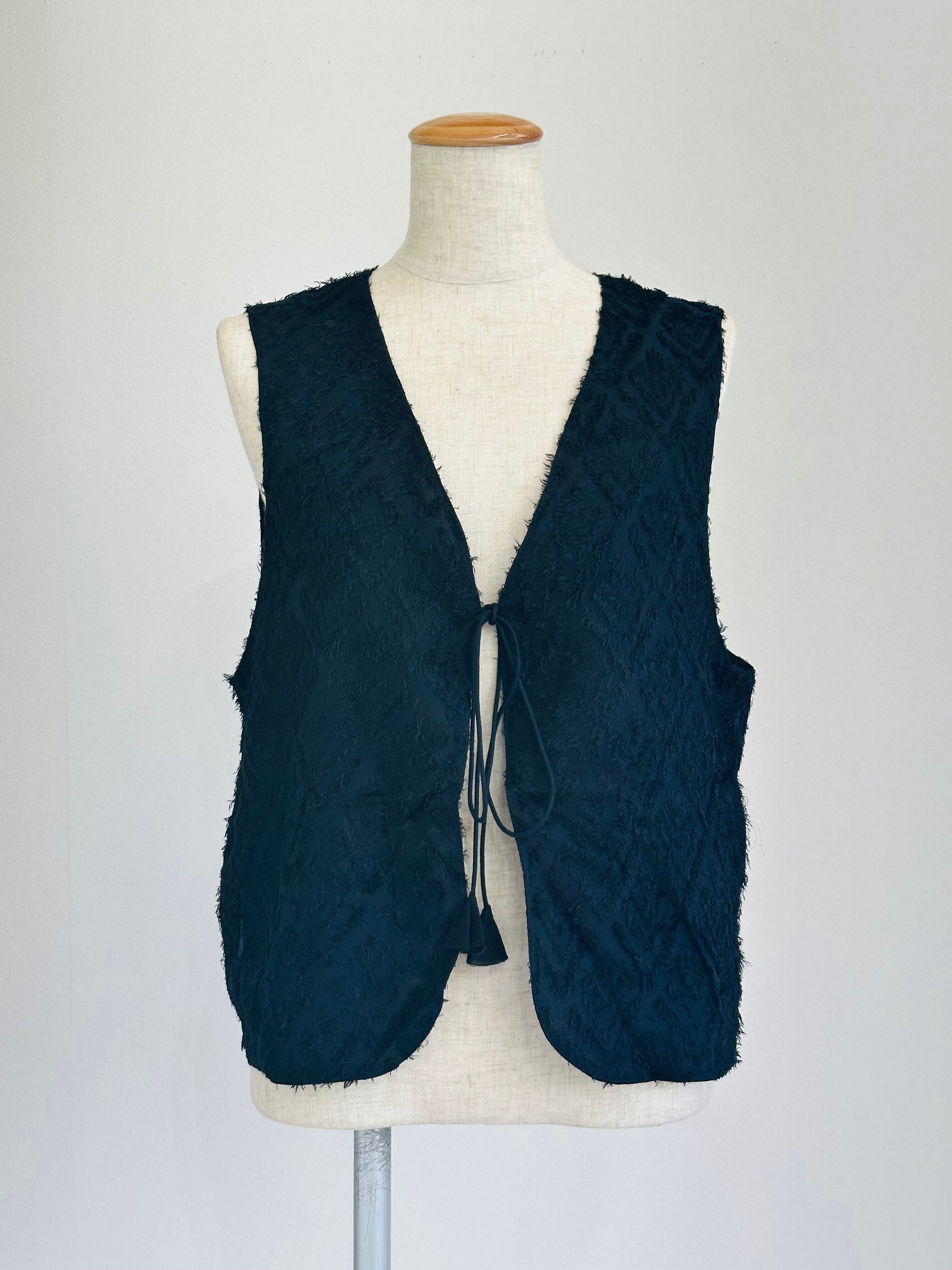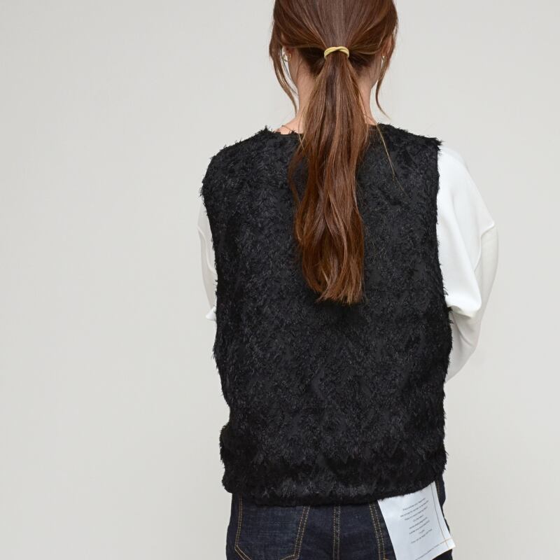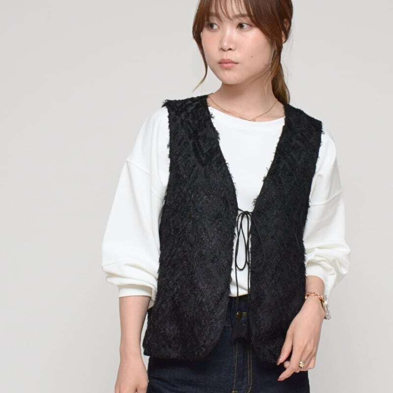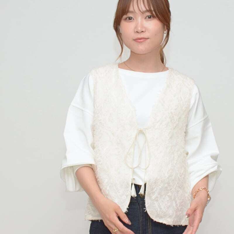シャギーレース素材の前開きベストが登場!