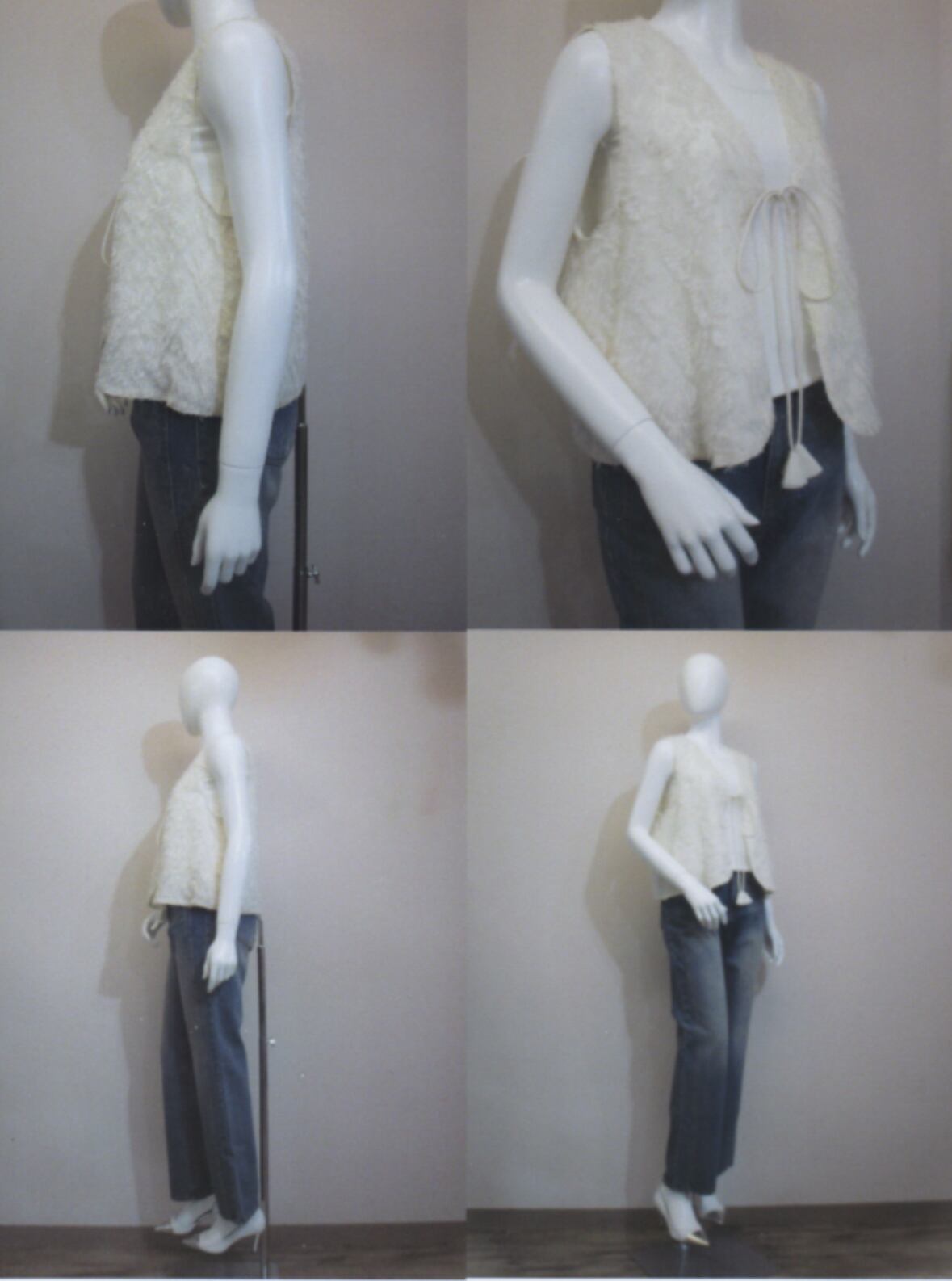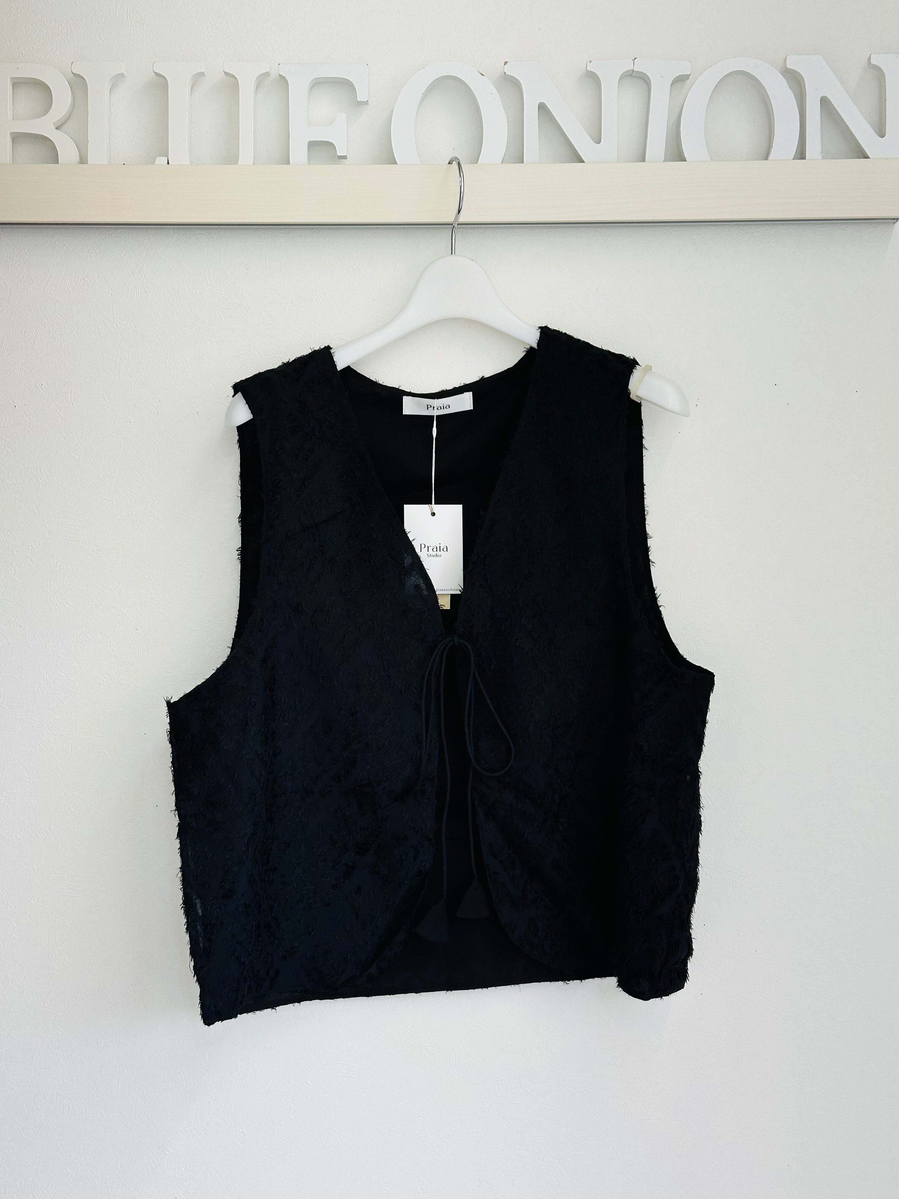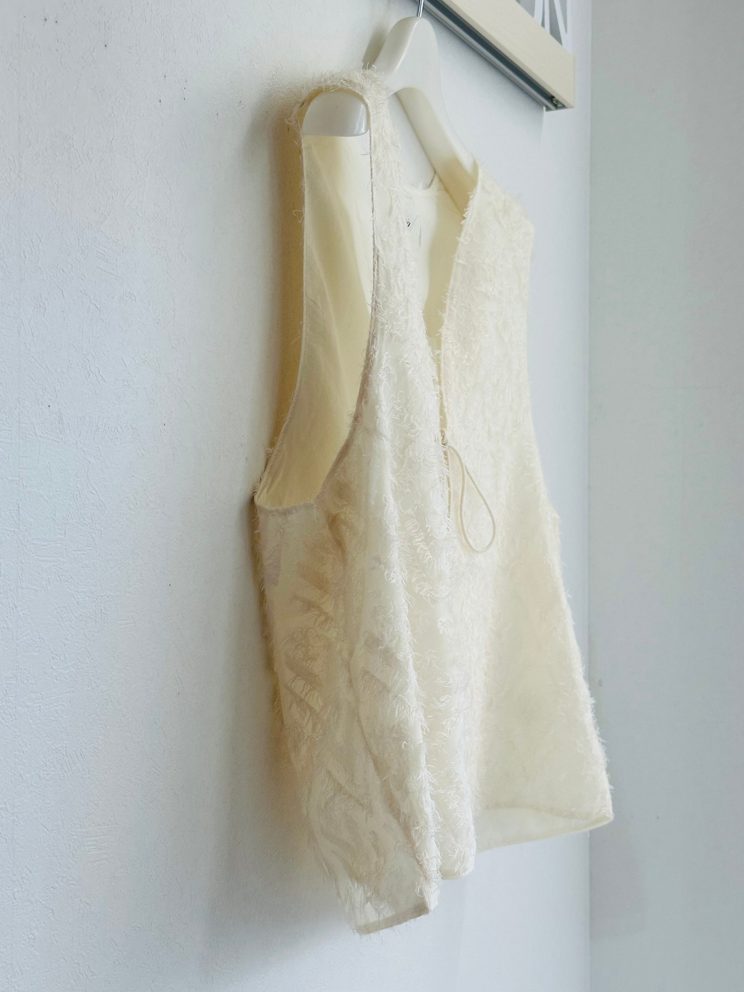 シャギーレース素材の前開きベストが登場!