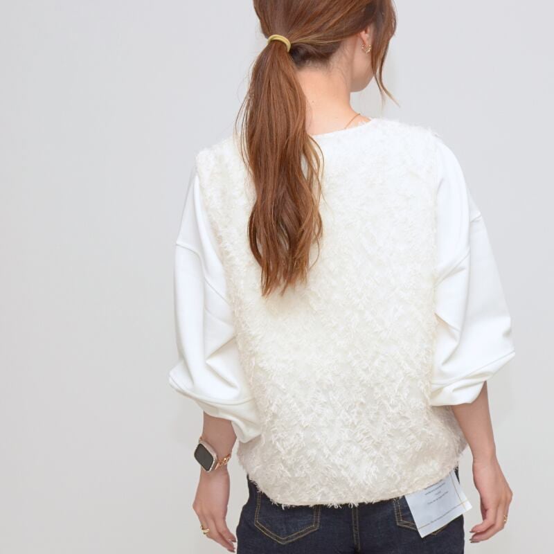 軽やかで表情豊かなシャギー素材が、トレンド感と柔らかな雰囲気を演出。