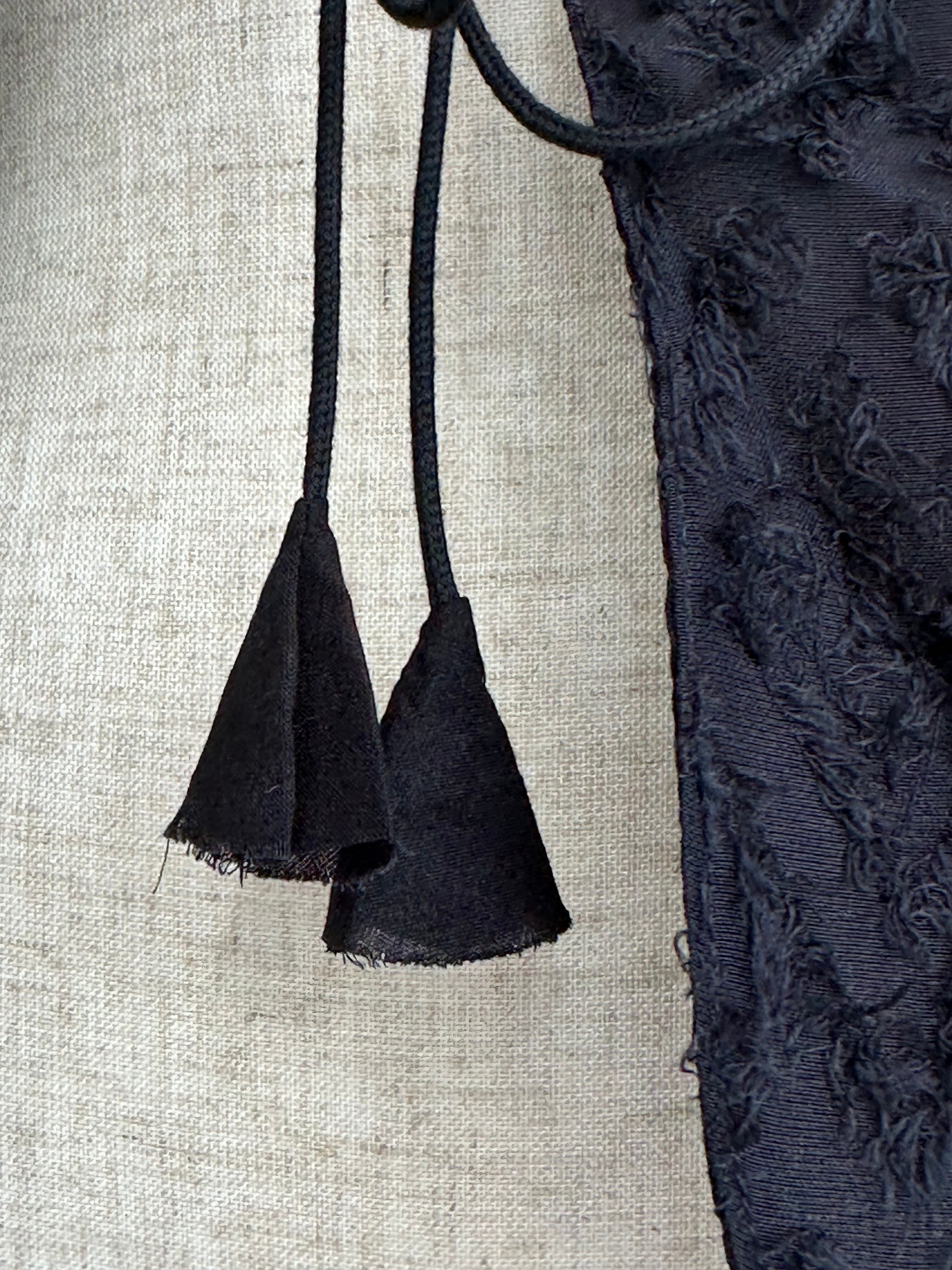 フロントの紐先に施されたフリンジが、さりげないおしゃれなアクセントに。