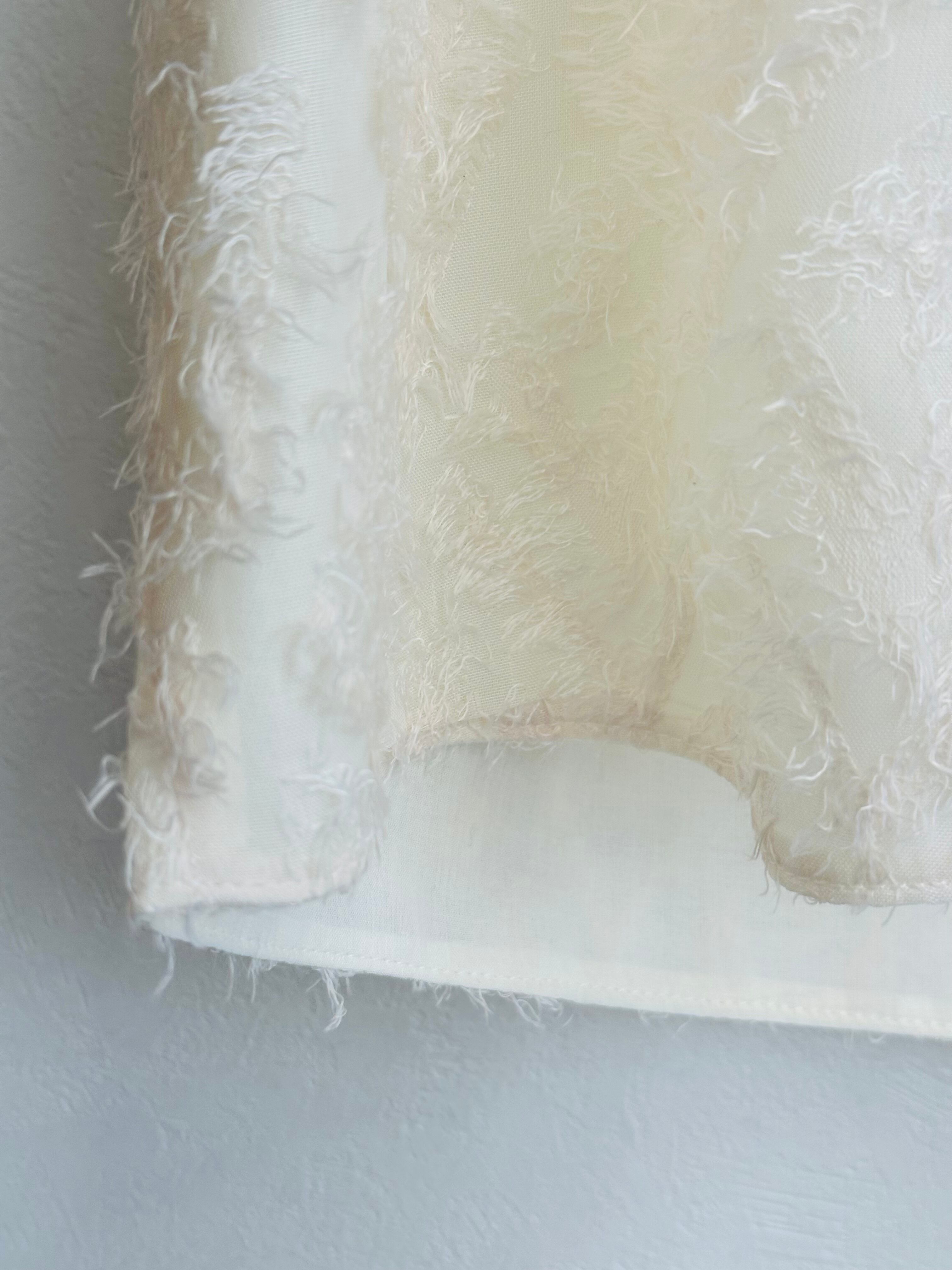 ふわふわとした柔らかなシャギーレース素材が、