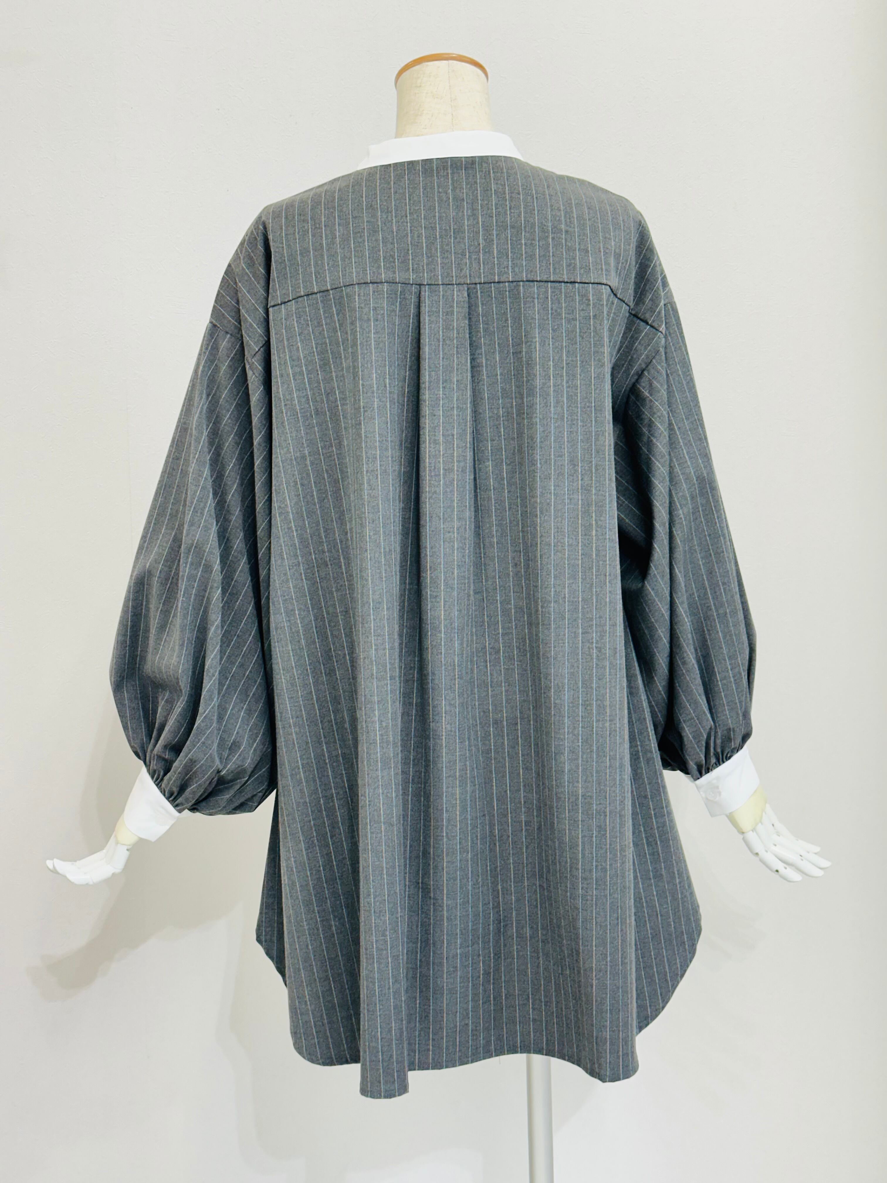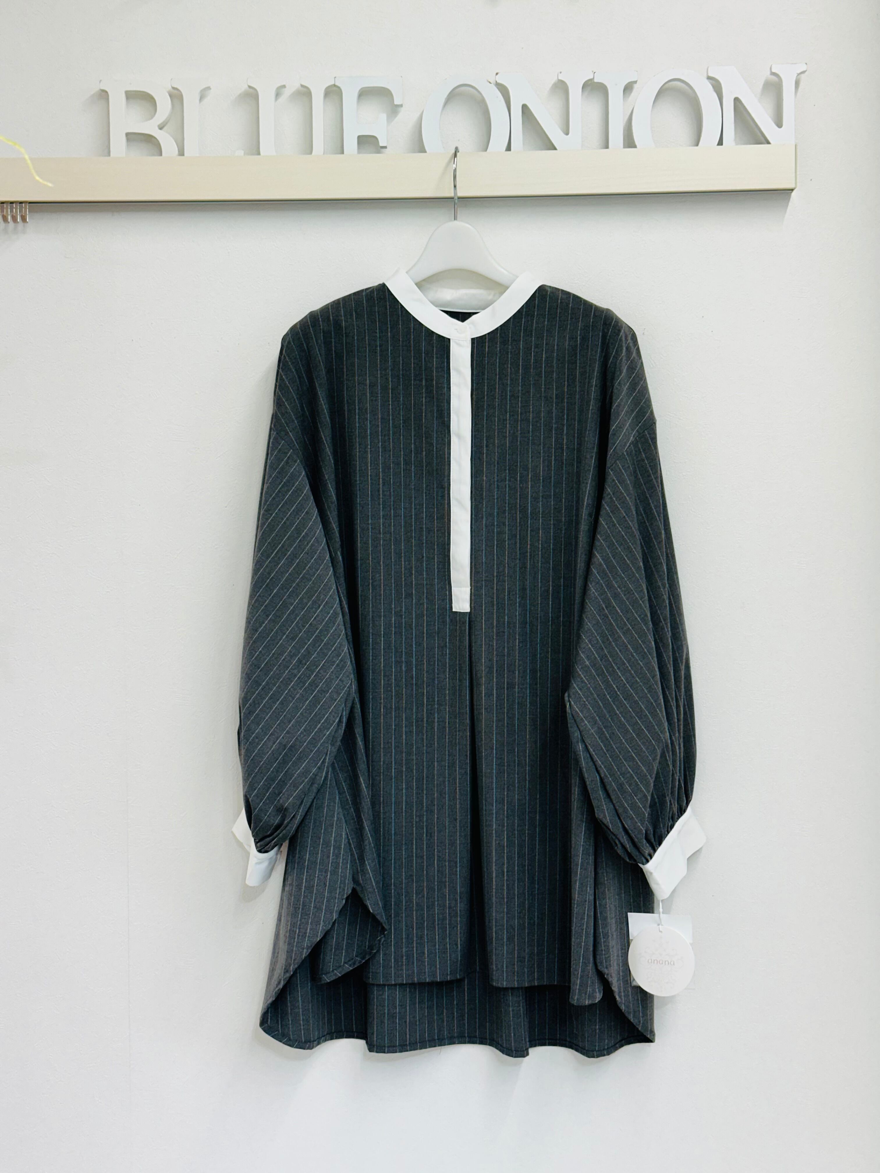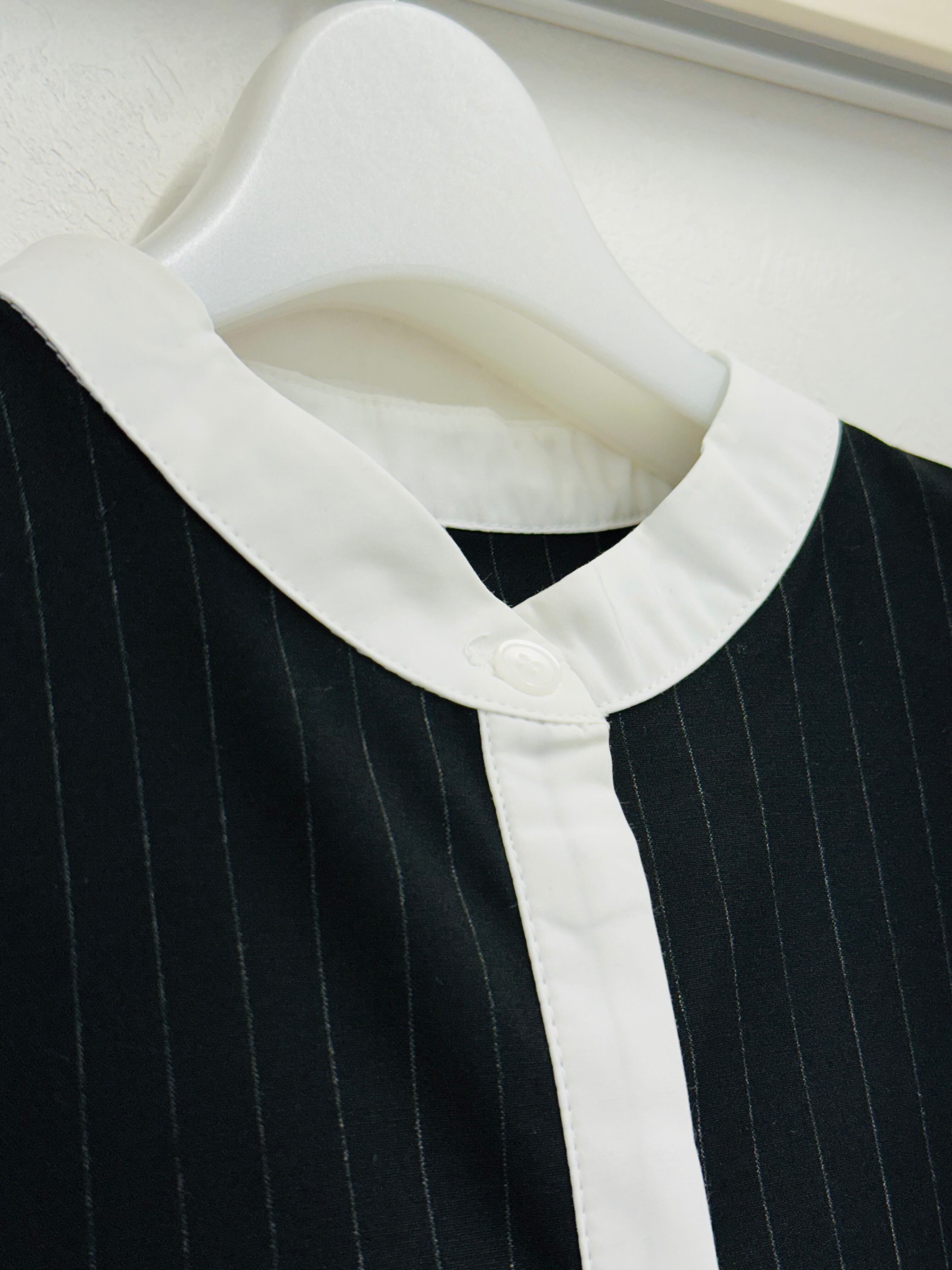 このシャツチュニックは、バンドカラーのデザインが特徴で、上品さとトレンド感を演出。ピンストライプのストライプ柄が目を引き、洗練された印象を与えます。共のパンツとセットアップ対応で、スカートやパンツと合わせて、スタイリングの幅を広げてくれます。 シンプルでありながら、個性的なデザインが魅力で、様々なシーンでの着用を楽しんでいただけるアイテムです。一枚ではもちろん、重ね着としても活躍し、秋冬のコーディネートに彩りを添えます。