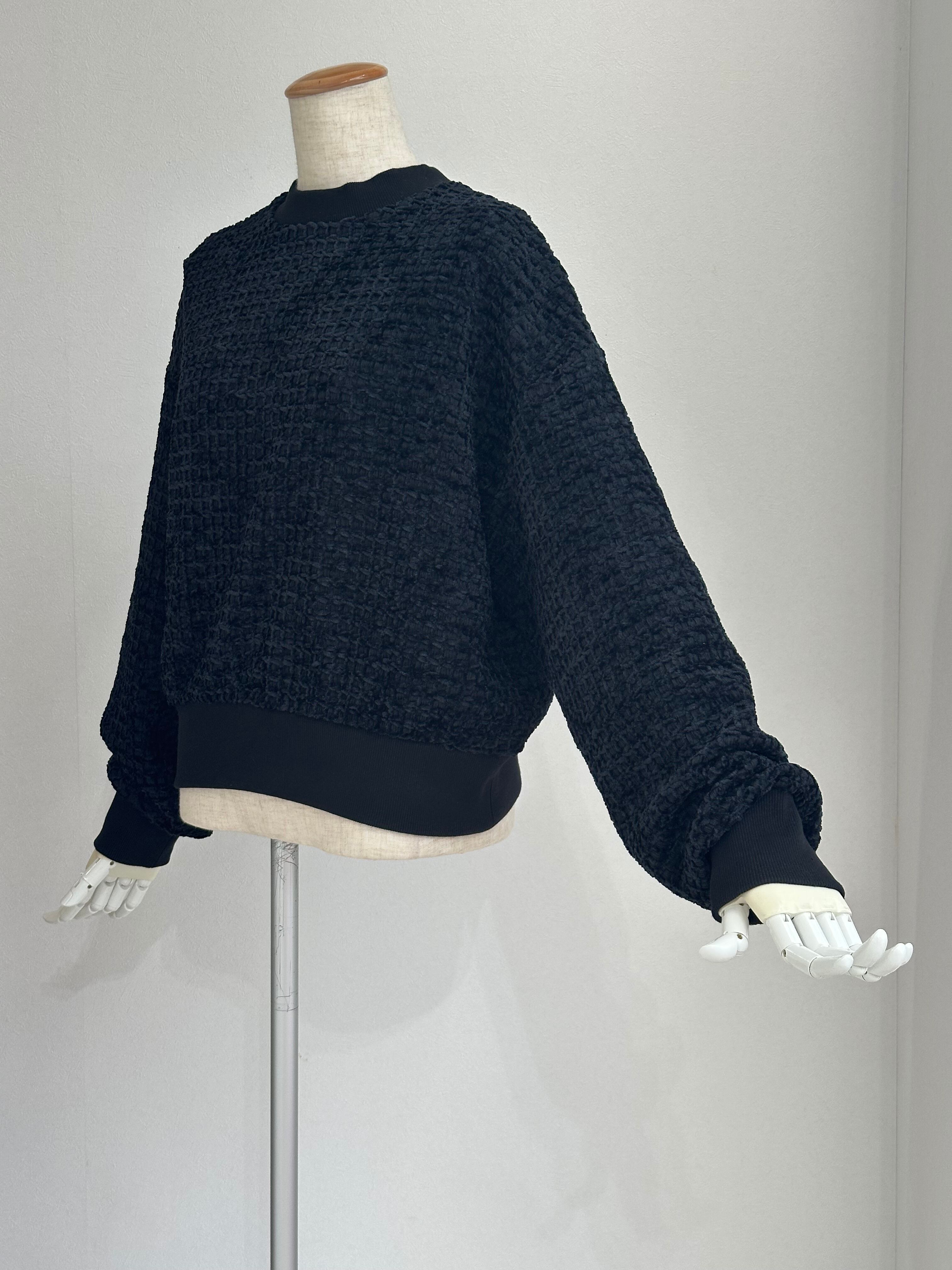 コンパクトなサイズ感なのでボリュームのあるボトムスと相性良く着て頂けます。