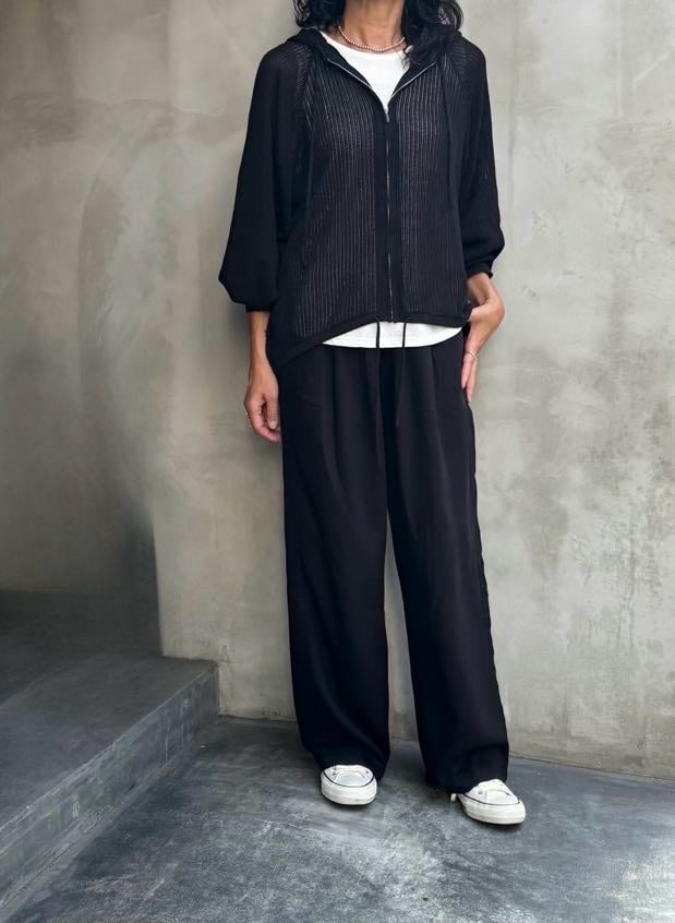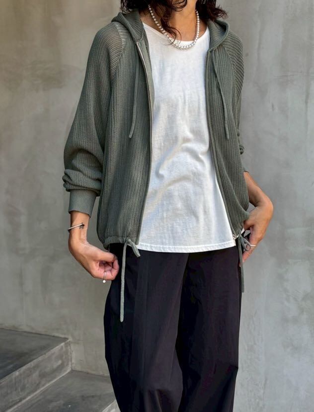 軽やかな透かし編みのデザインが魅力の「透かし編みジップパーカー」は、秋の装いにスタイリッシュさを加える一着です。綿100%の柔らかな素材を使用しているため、肌に優しく、快適な着心地を実現しています。ジップ仕様で脱ぎ着がしやすく、シンプルでありながらも個性的なスタイルを演出します。カジュアルな日常使いにはもちろん、ちょっとしたお出かけにも適したアイテムです。