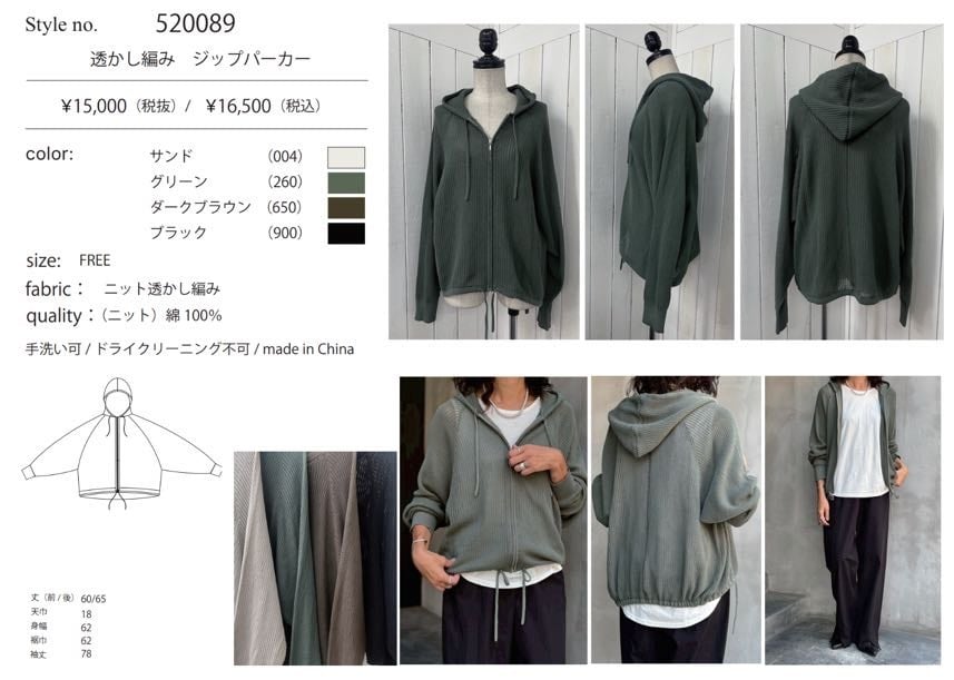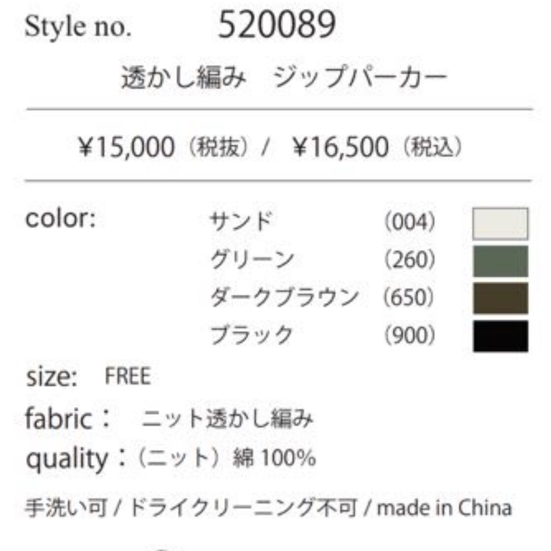 【flamingfirm25秋ご予約】 透かし編み ジップパーカー 520089 2509b-015