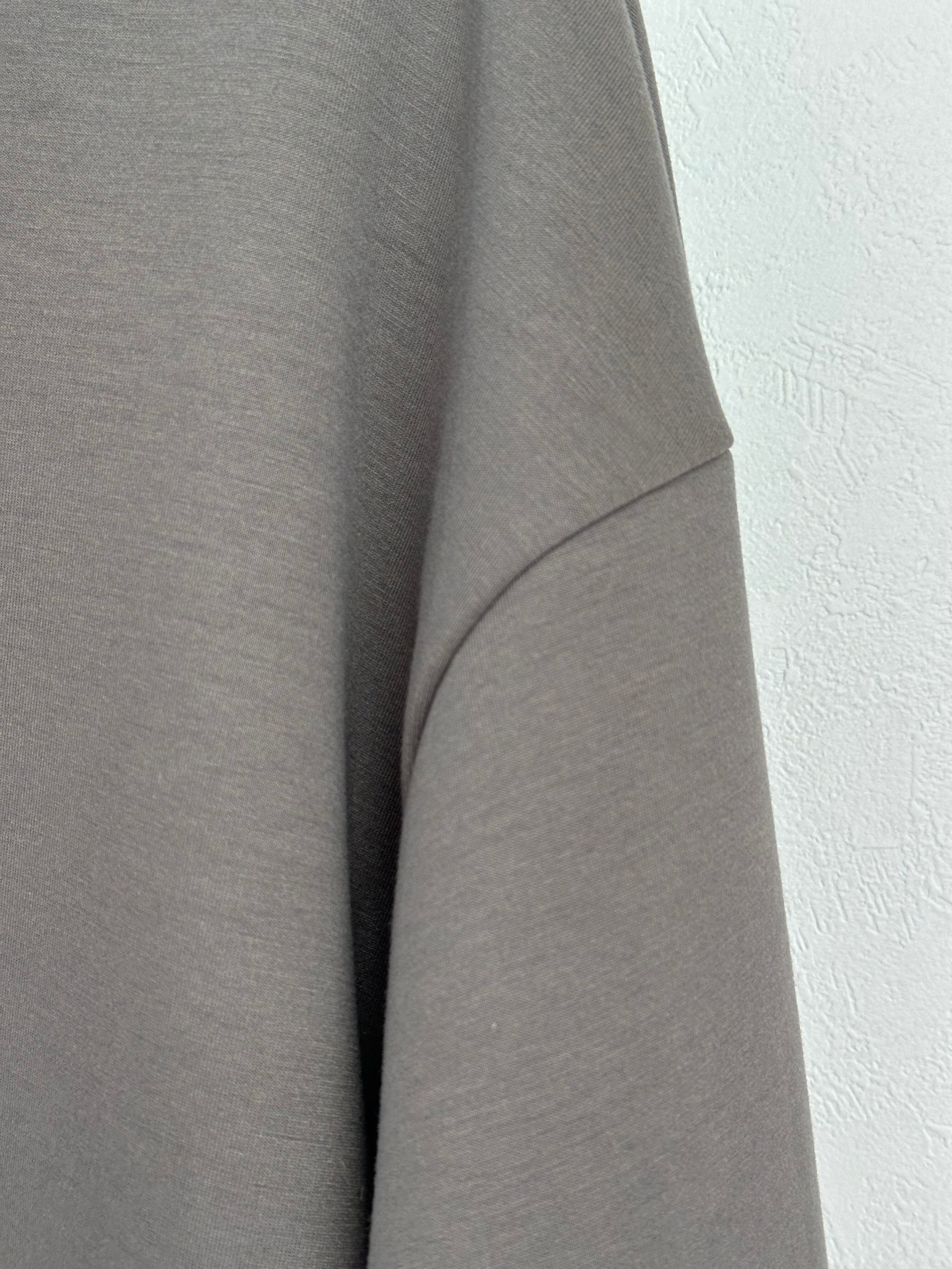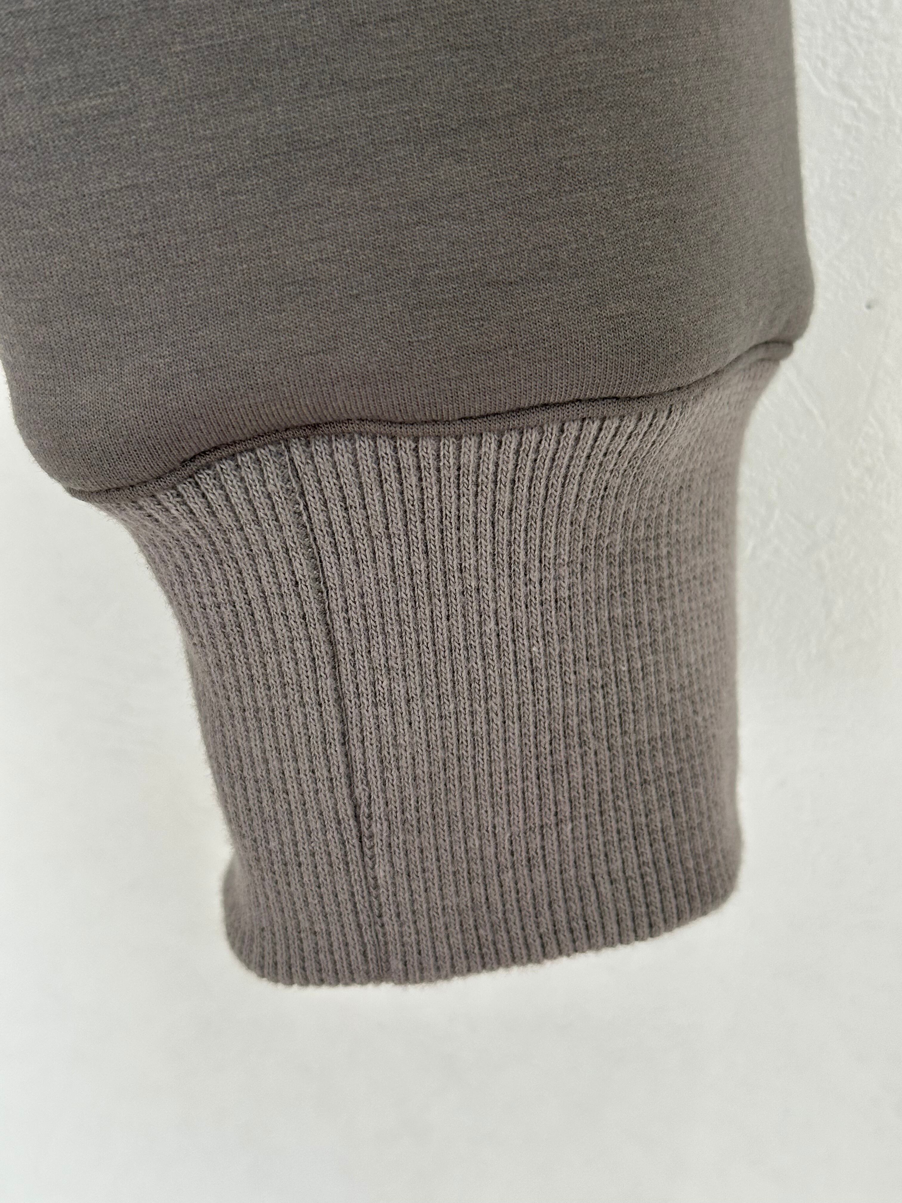 袖口にはリブ付き、裾にはあえてリブを使わずキレイめな印象に仕上げました。