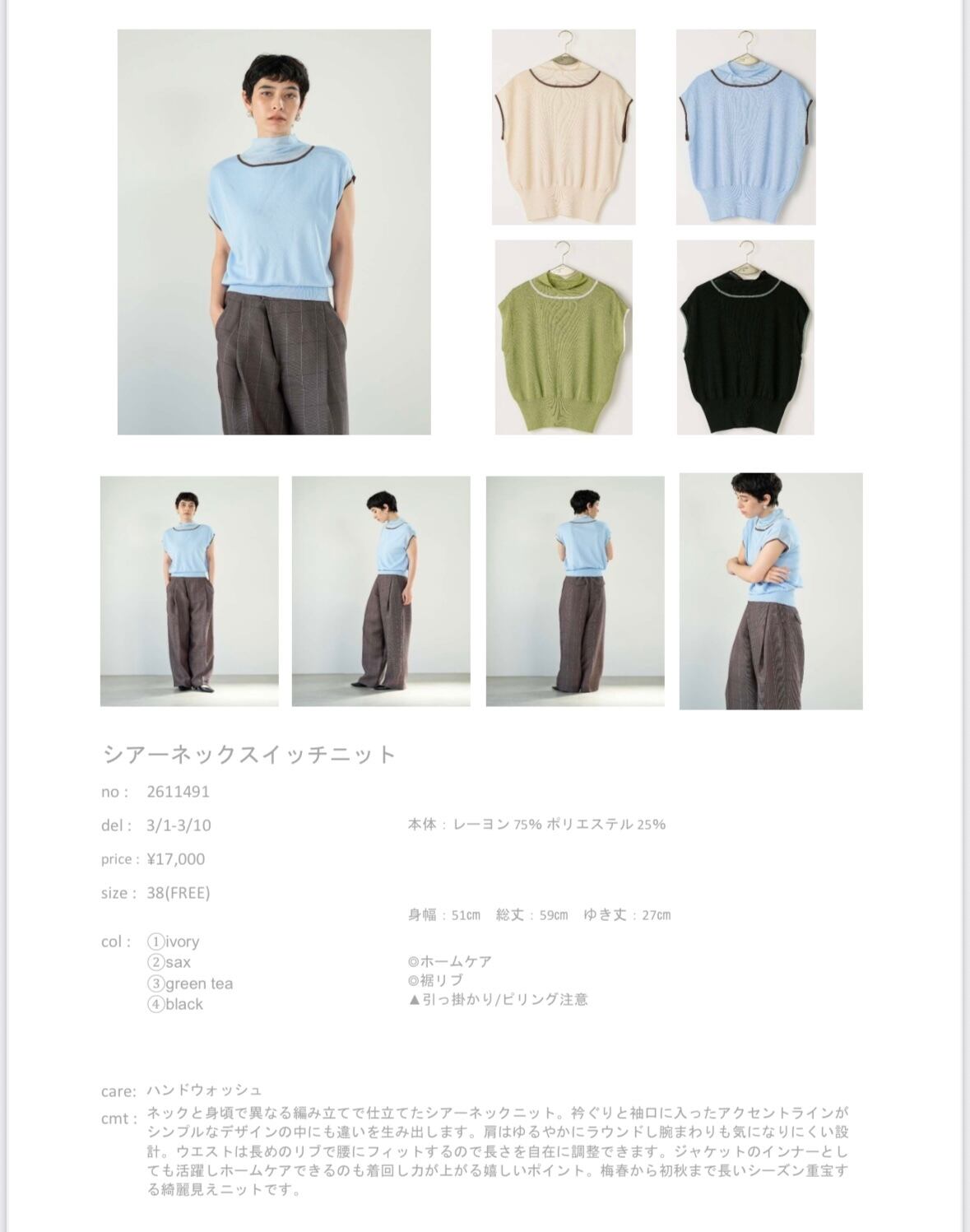 【Lallia Mù ラリア・ムー 26春ご予約】 シアーネックスイッチknit 2611491 2603b