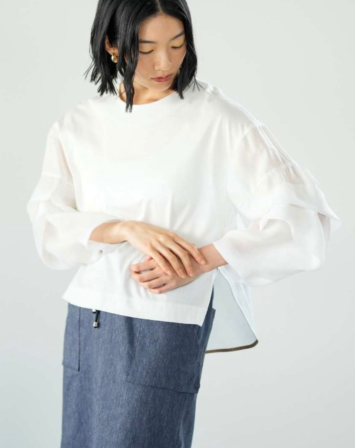 【Lallia Mù ラリア・ムー 26春ご予約】 シアーウェーブスリーブcut&sew 2612593 2603b