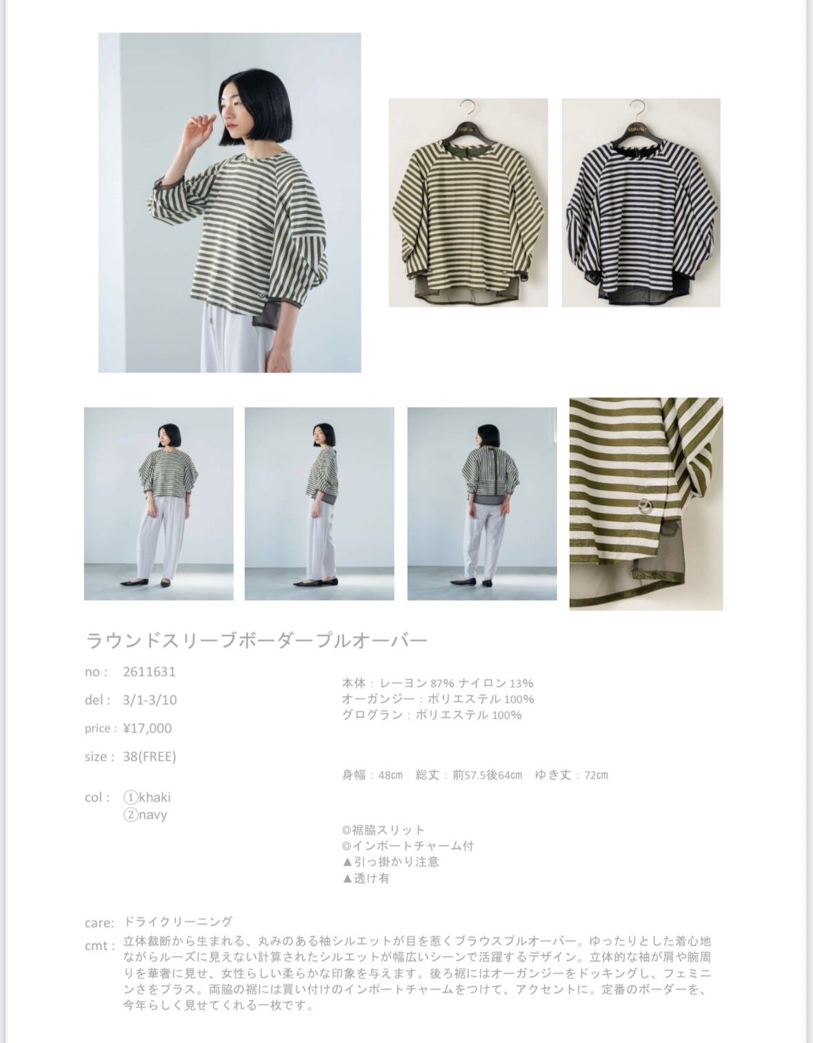【Lallia Mù ラリア・ムー 26春ご予約】 ラウンドスリーブボーダーpullover 2611631 2602b