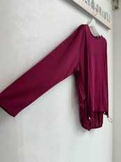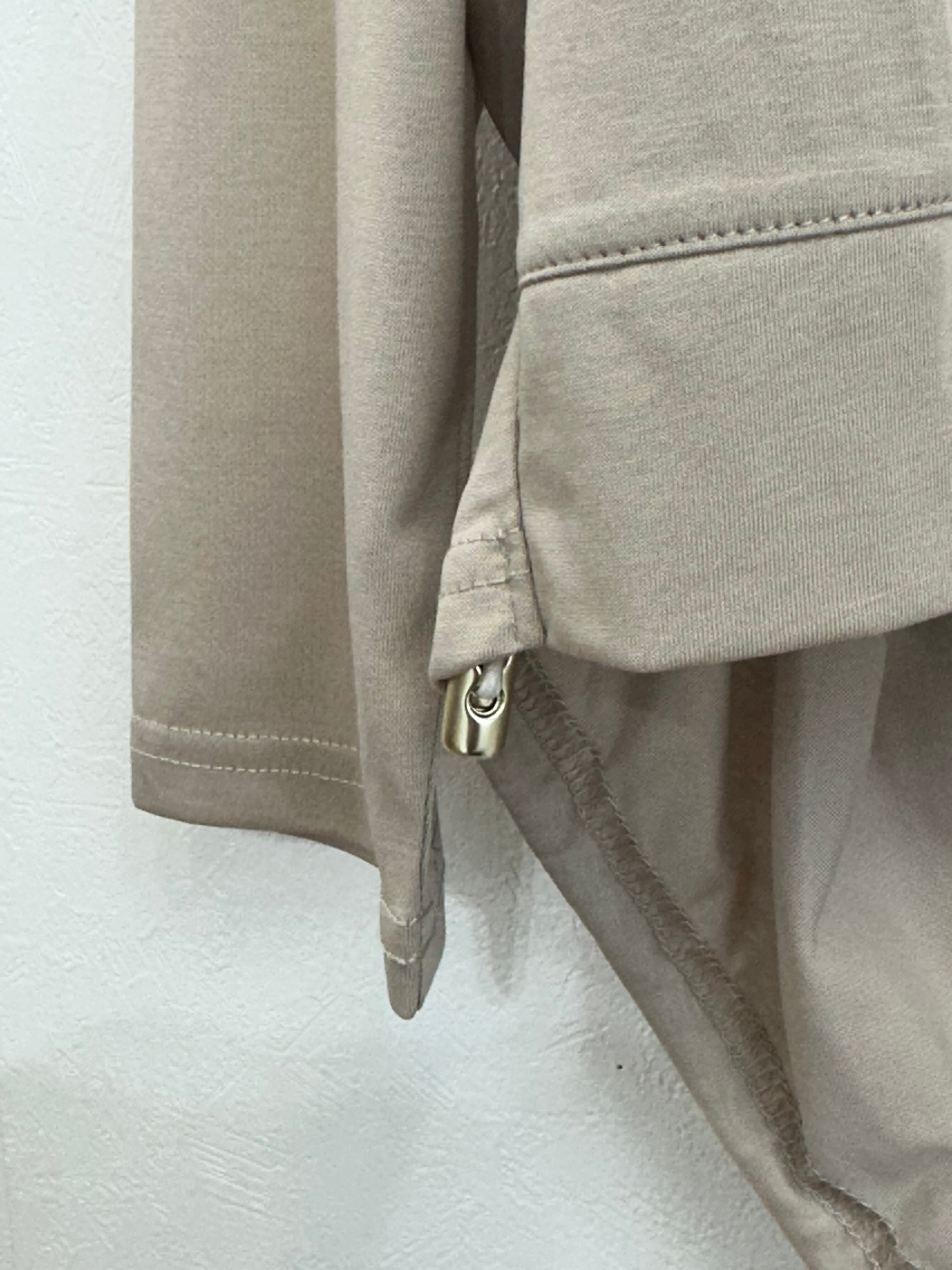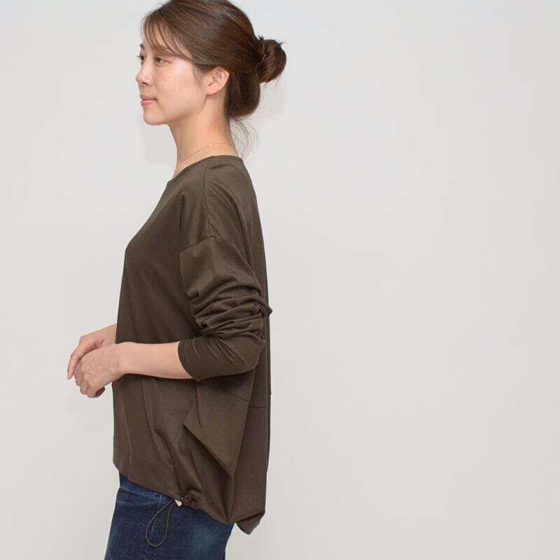 裾の紐を絞ることで、好みのシルエットにアレンジ可能。