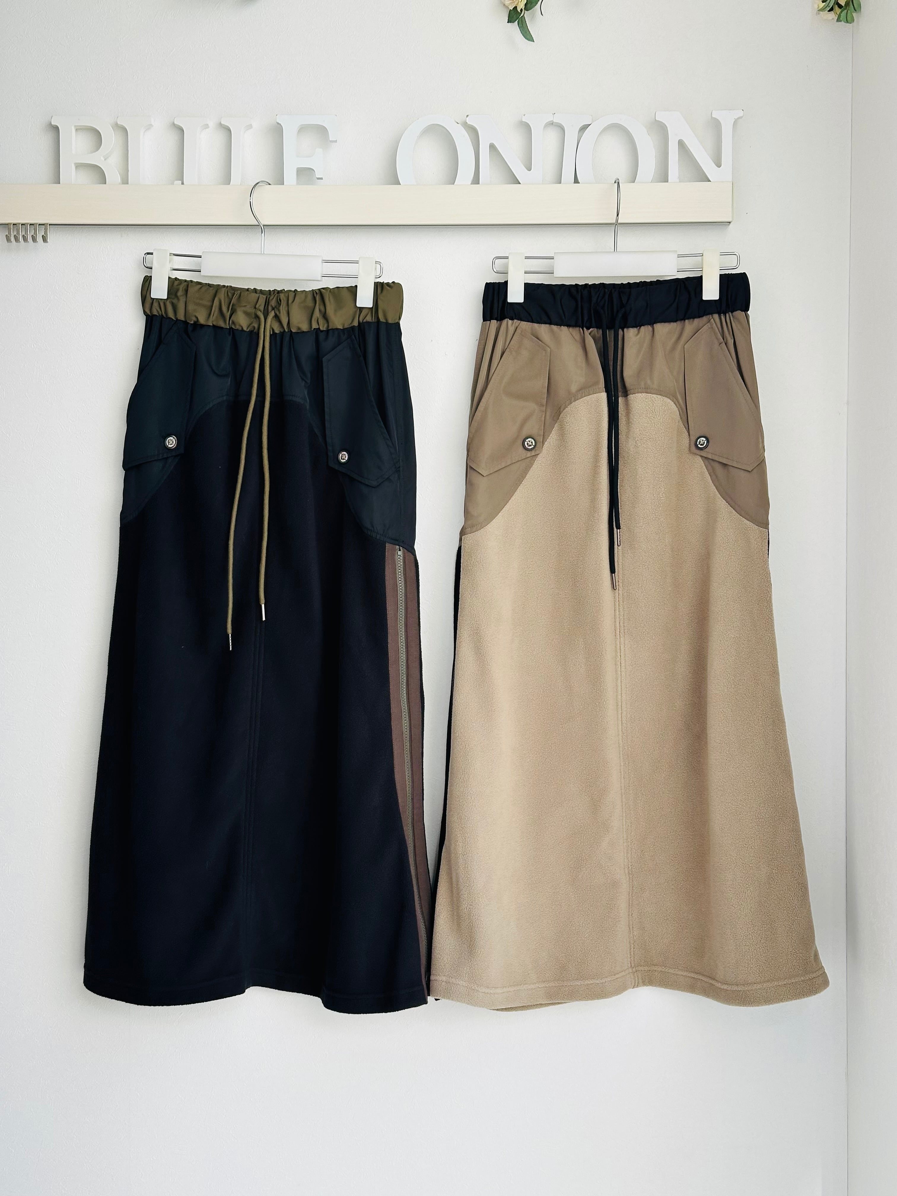 フリース切替サイドファスナーフレアskirt (set up対応)