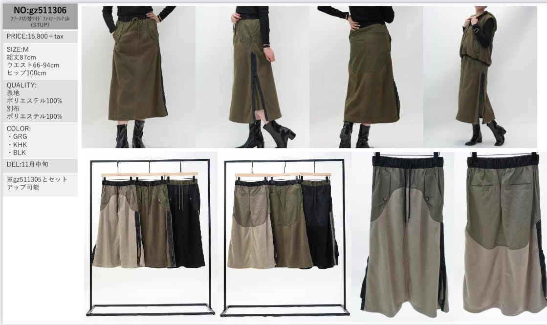 フリース切替サイドファスナーフレアskirt (set up対応) 33℃ thirty-three degrees gz 511306 2511c