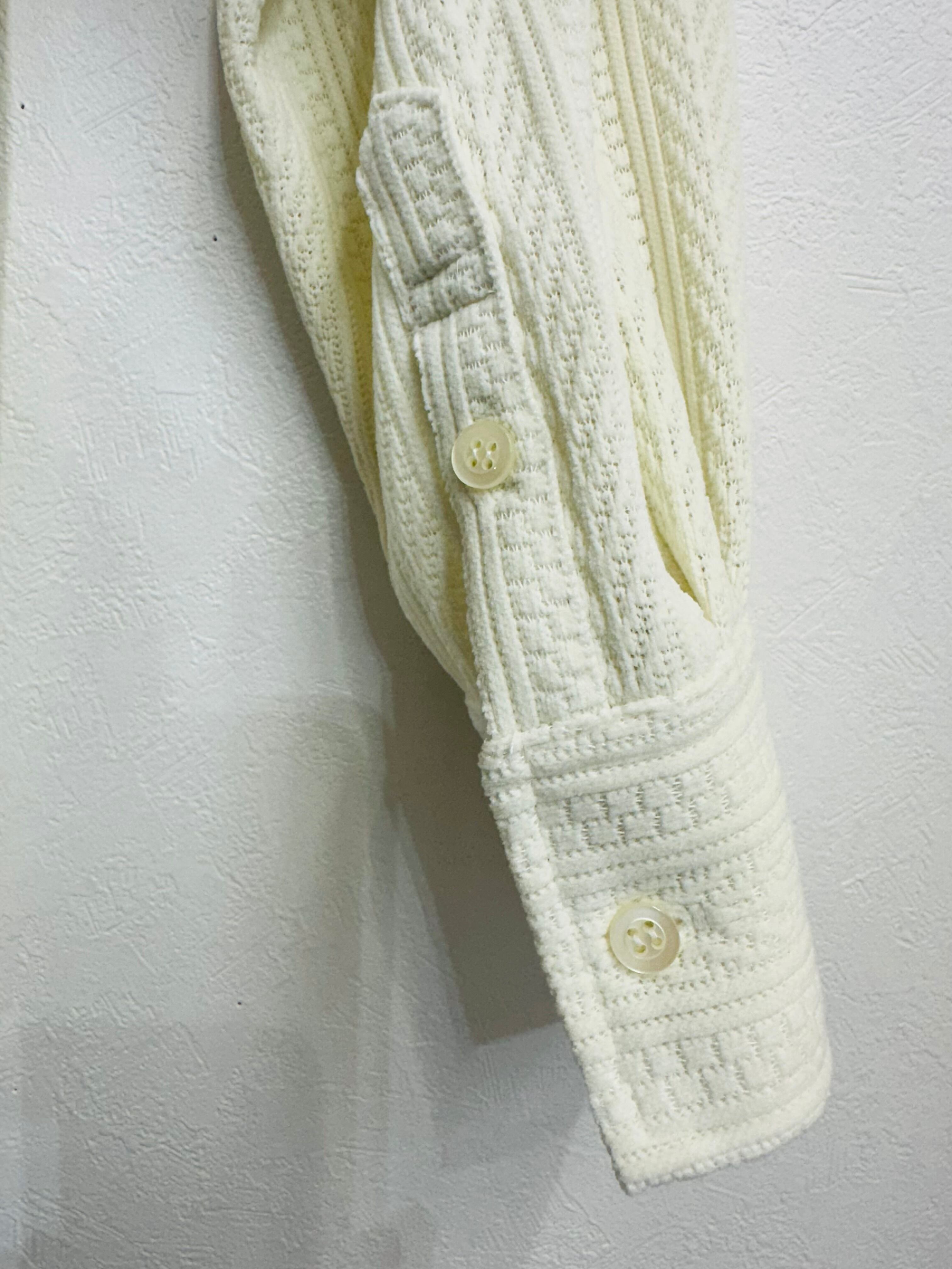 モールジャガードシャツは、魅力的な飾り織りで仕立てられたアイテムです。上質なモール素材を使用し、ハイゲージの織り柄がさりげないアクセントとなっています。柔らかな肌触りと洗練されたデザインは、大人のカジュアルスタイルにぴったりです。 デザインの特徴として、シンプルながらも独自の織り柄が印象的で、どんなボトムとも合わせやすい一着です。普段使いはもちろん、ちょっとしたお出かけにも最適。コーディネートの幅を広げてくれるアイテムです。季節を問わず活躍すること間違いなしです!