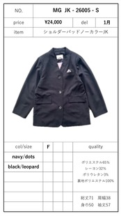 ショルダーパットノーカラーjacket 【MARGAUX 25梅春ご予約】MG JK 26005 S 2601c