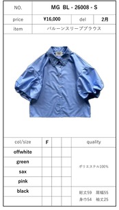 バルーンスリーブblouse 【MARGAUX 25梅春ご予約】 MG BL 26008 A 2602c