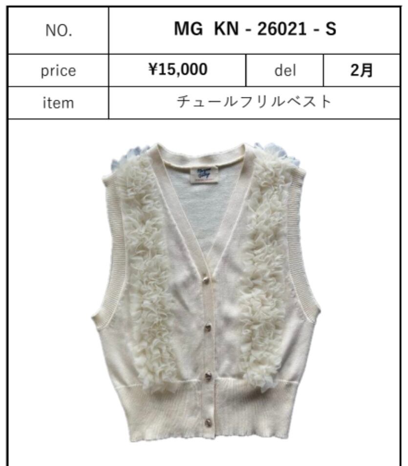チュールフリルベスト 【MARGAUX 25梅春ご予約】 マルゴー 26preS/S MG KN 26021 -S 2601c-008
