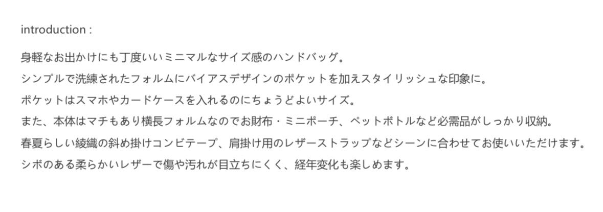 身軽なお出かけにも丁度いいミニマルなサイズ感のハンドバッグ。