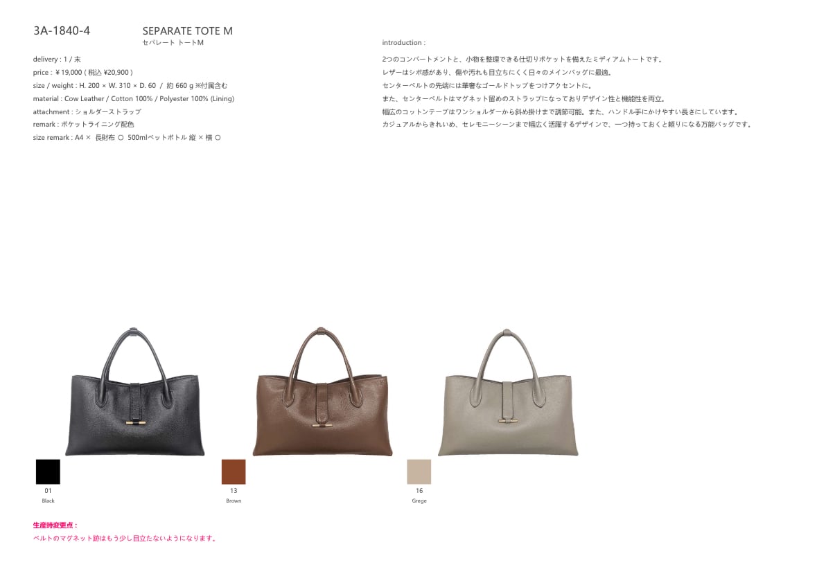 SEPARATE TOTE M セパレートトートM 【STORY ストーリー 26春バッグご予約】 3A- 1840 -4 2601c