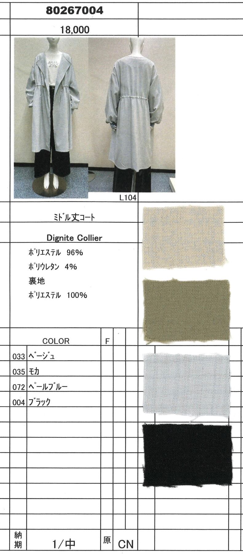 ミドル丈 coat 【Dignité collier ディニテコリエ 26春ご予約】 80267004 2601a b c -005