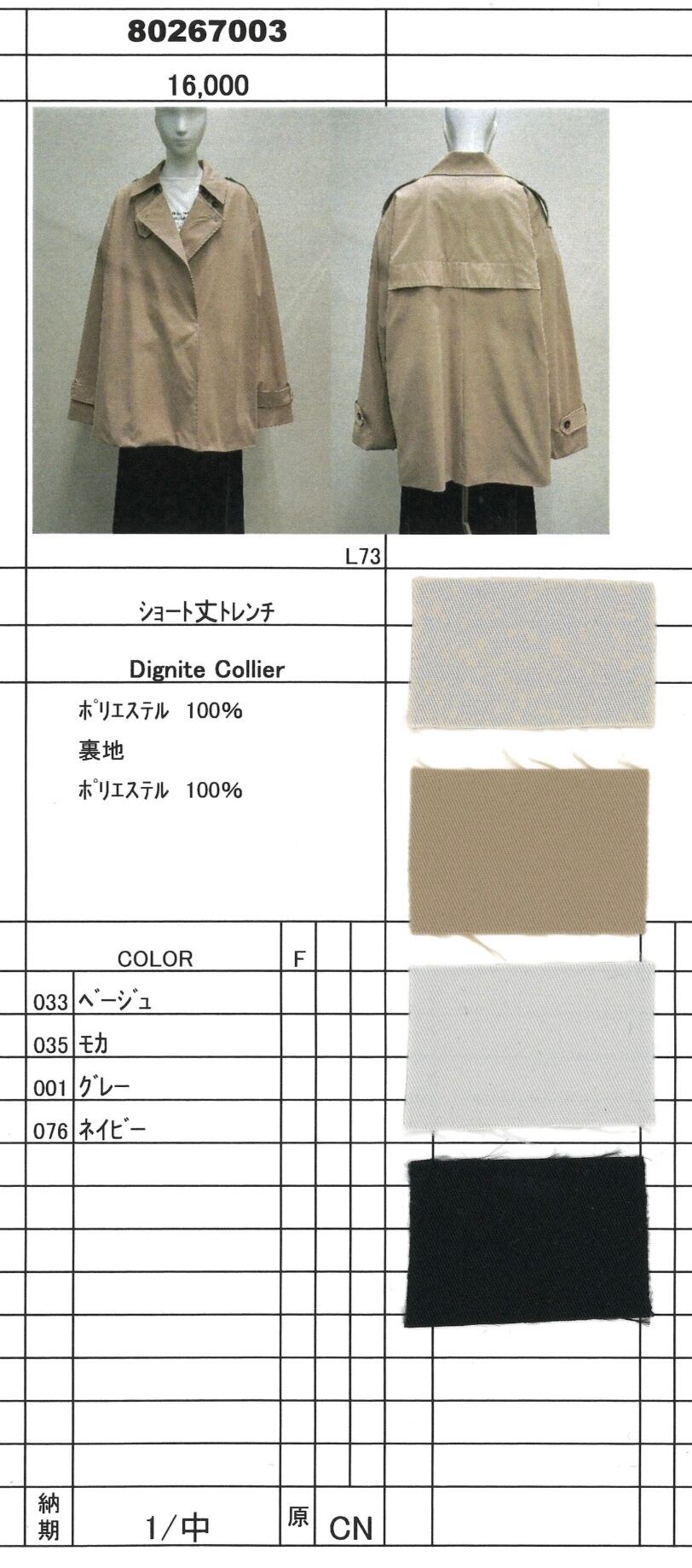 ショート丈トレンチ 【Dignité collier ディニテコリエ 26春ご予約】 80267003 2601a b c -005