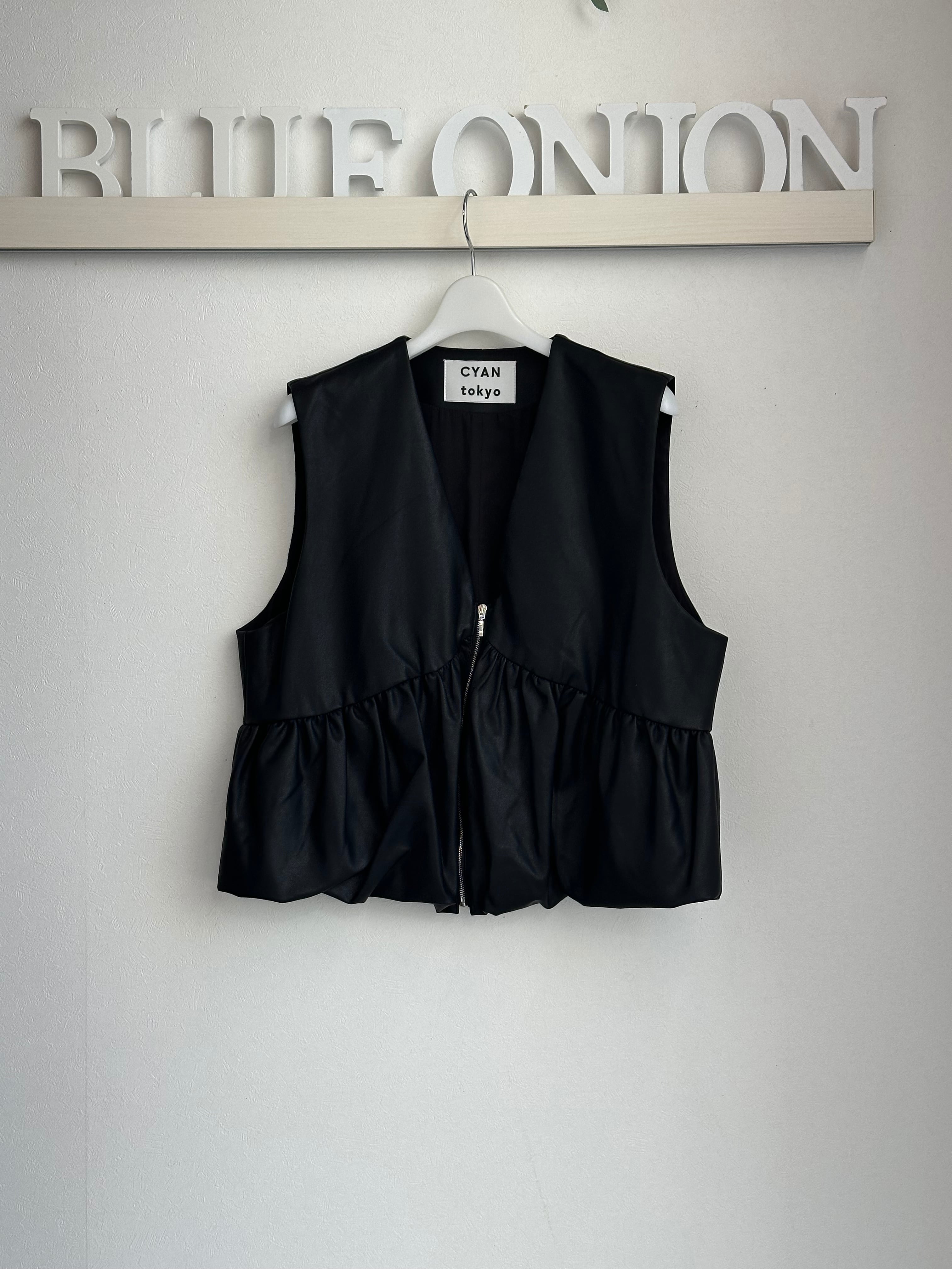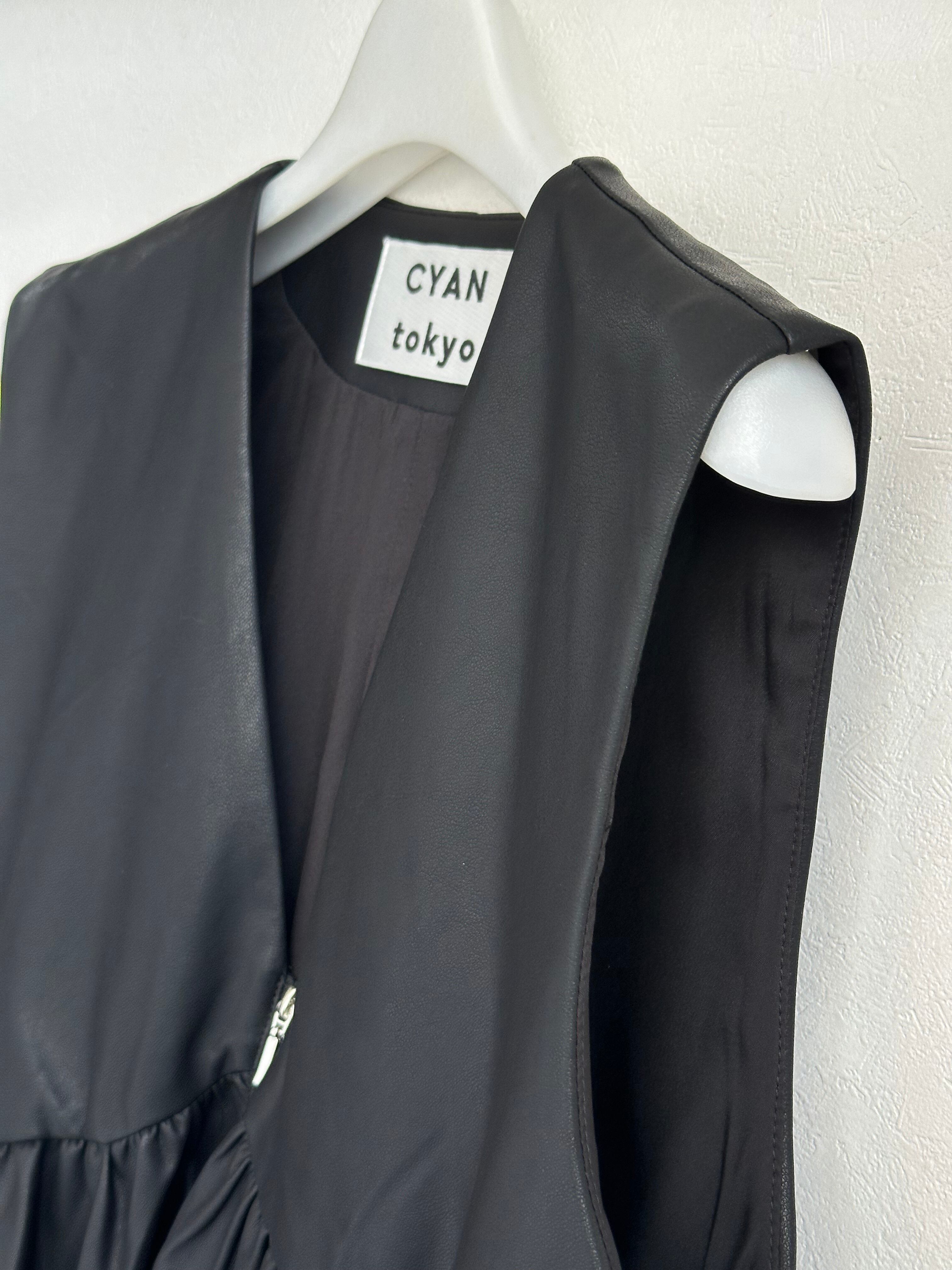 ヴィーガンレザーバルーンギャザーvest CYAN tokyo 610440 2602 b -003