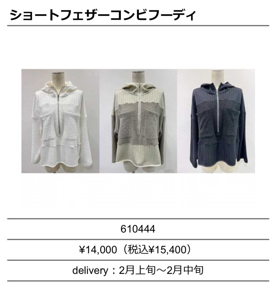 ショートフェザーコンビフーディ