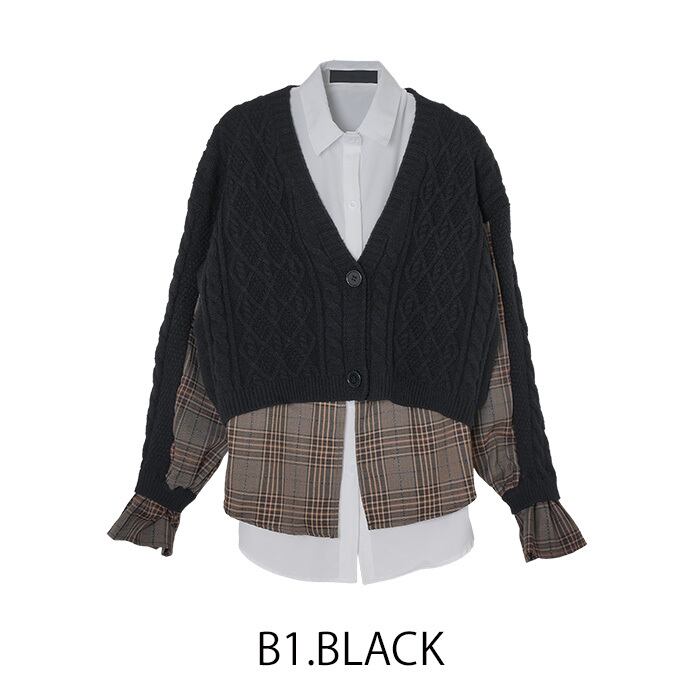 シャツレイヤードセットcardigan MMJ 129 XDD micalle micalle